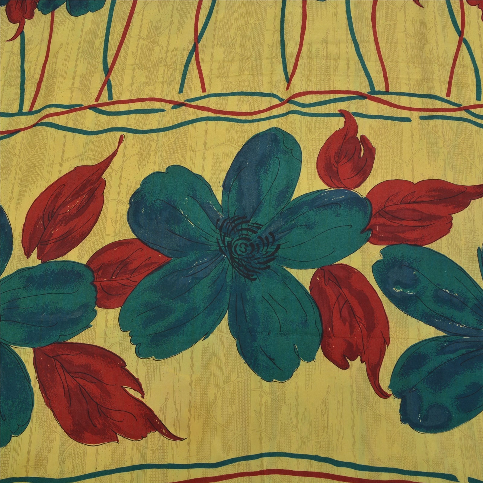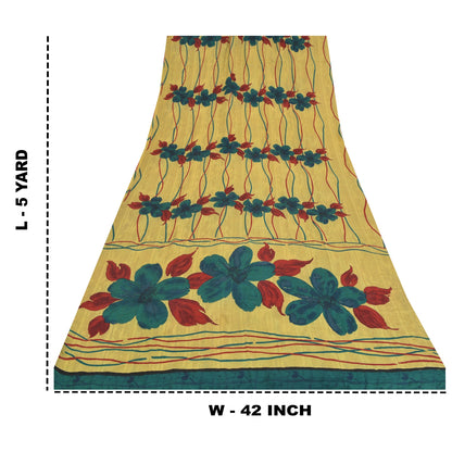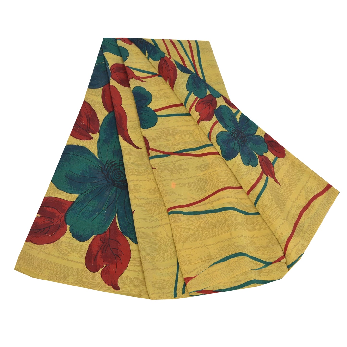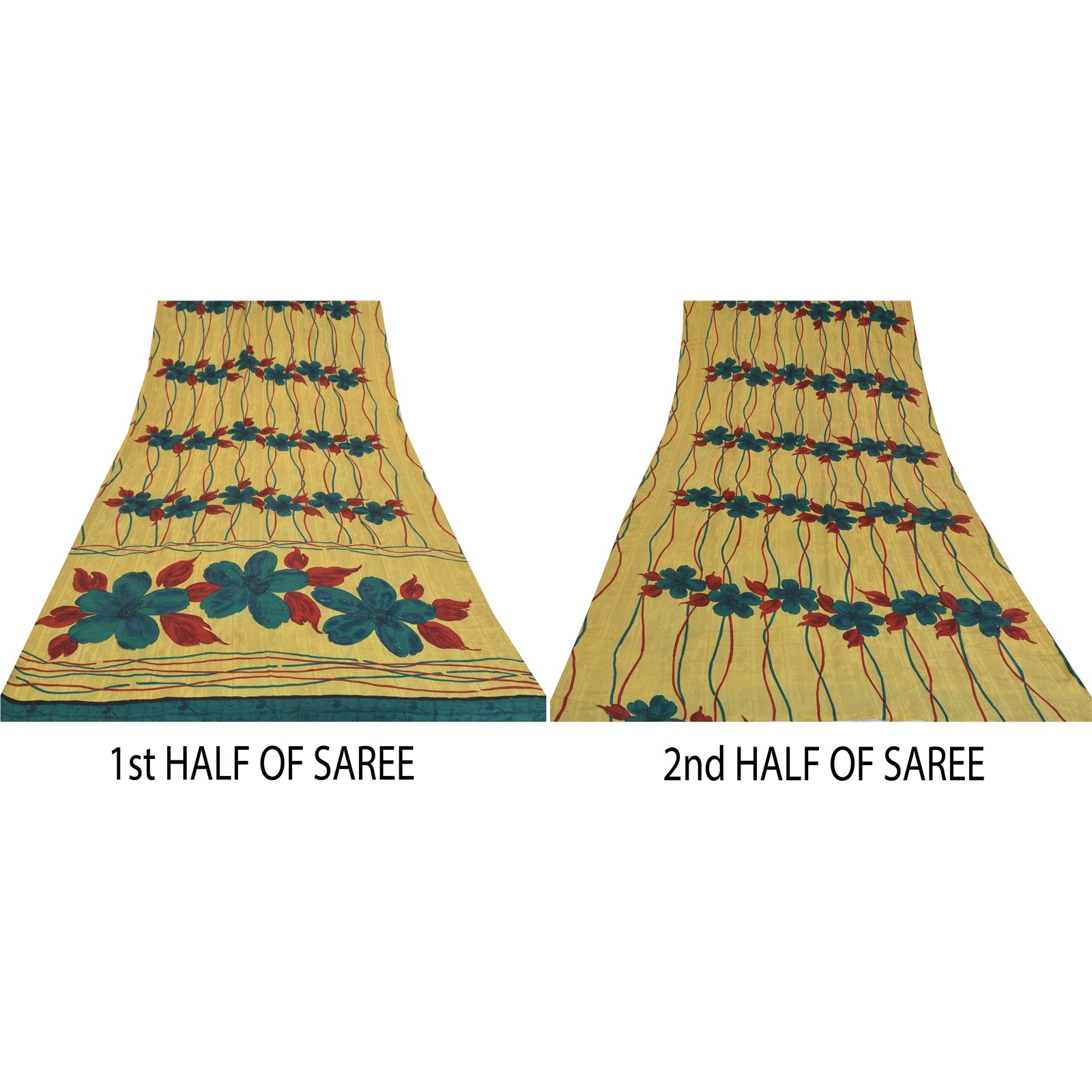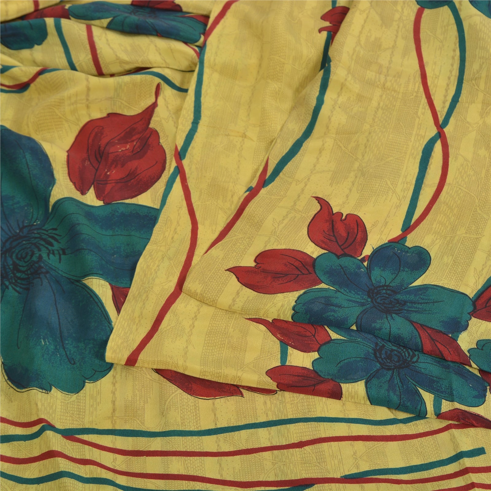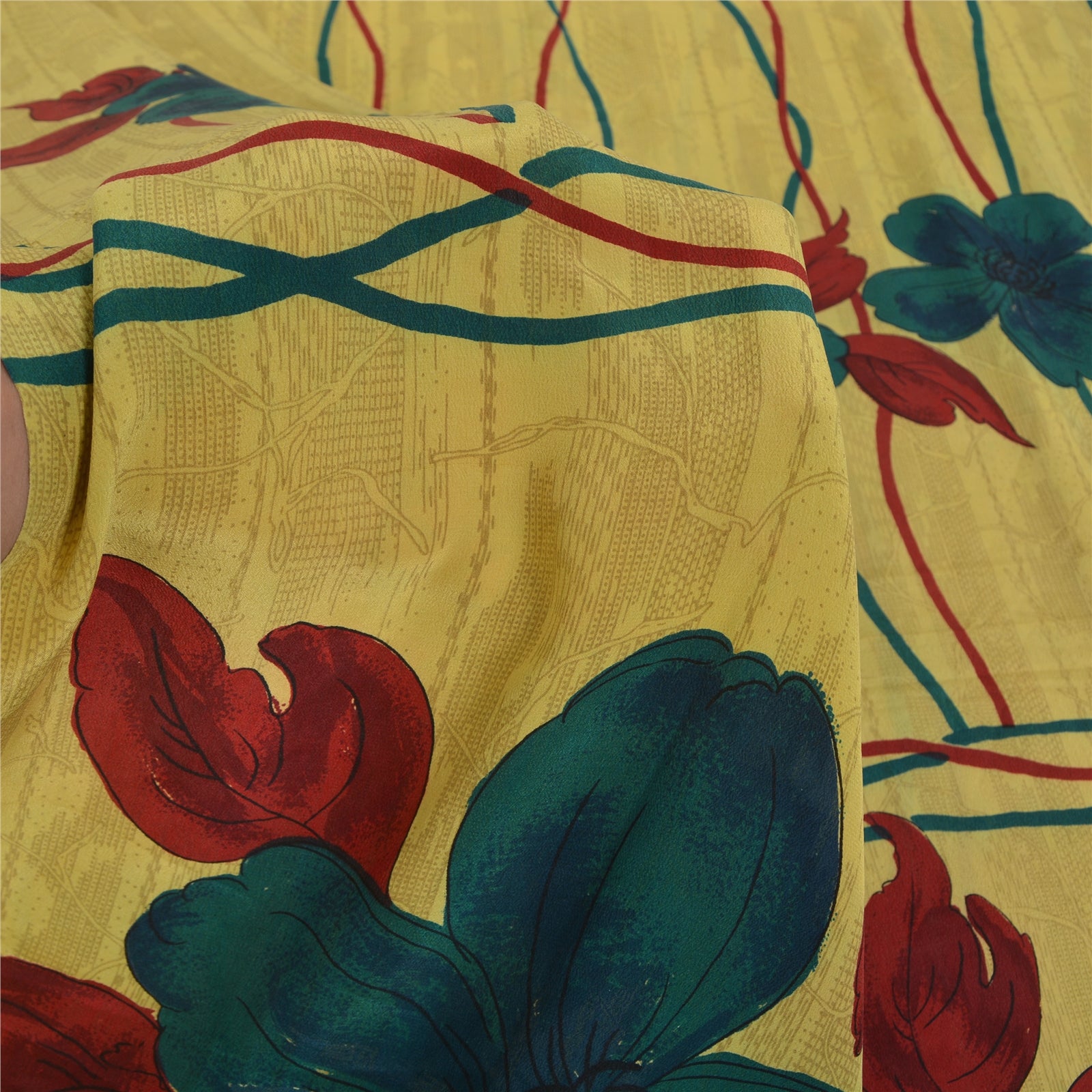 Sanskriti Vintage Sarees Yellow Pure Crepe Silk Printed Sari 5yd Craft Sustainable Fabric