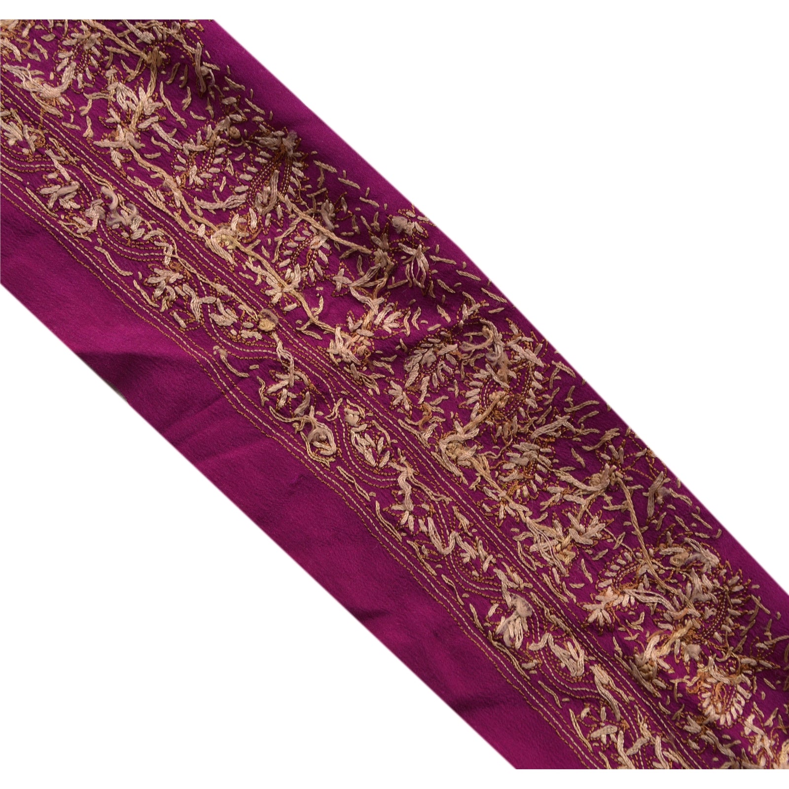Sanskriti Vintage Sari Border Craft Purple Trim Hand Embroidered 1 Yd Lace