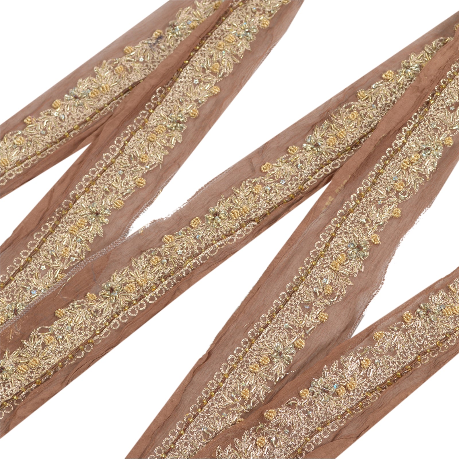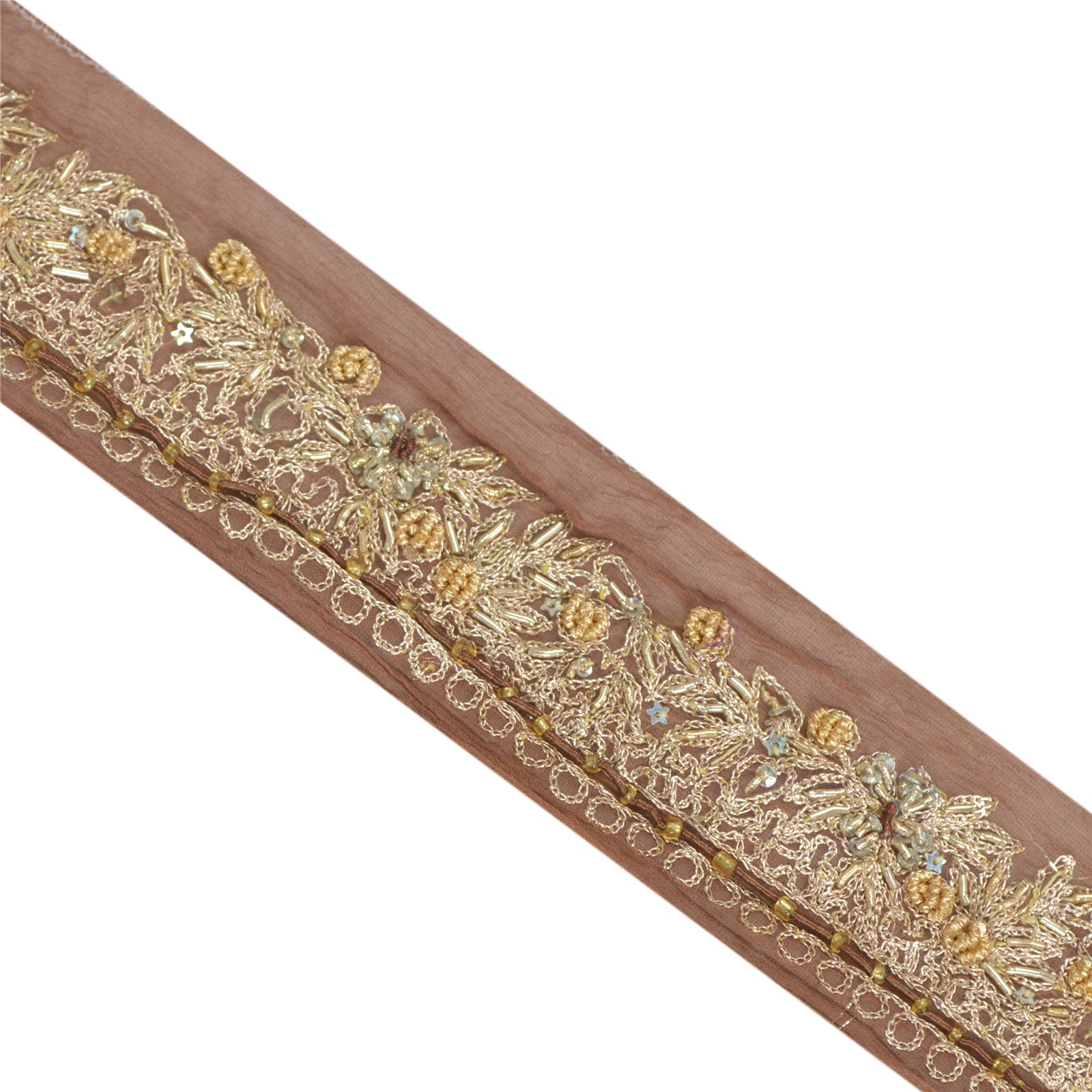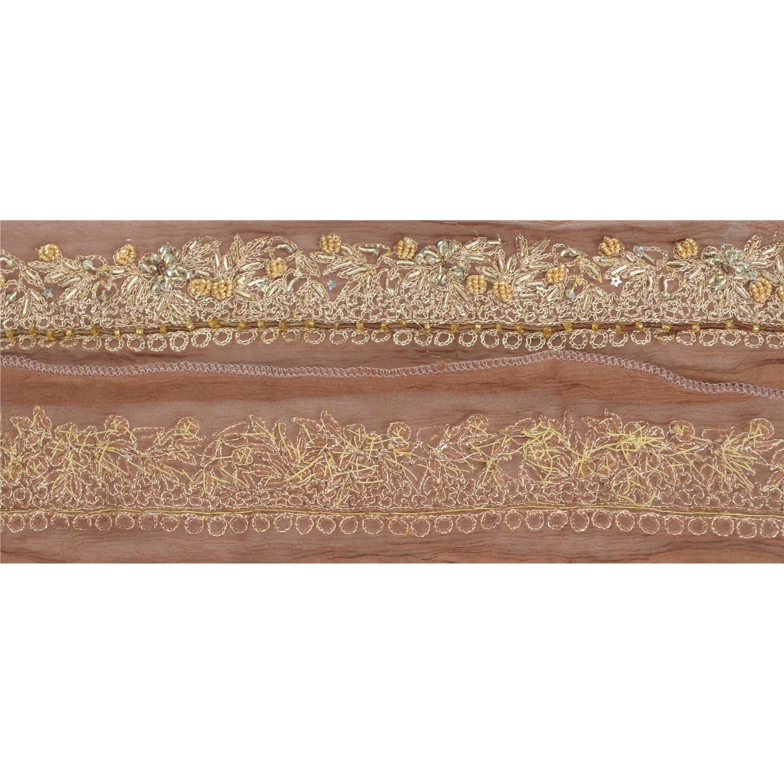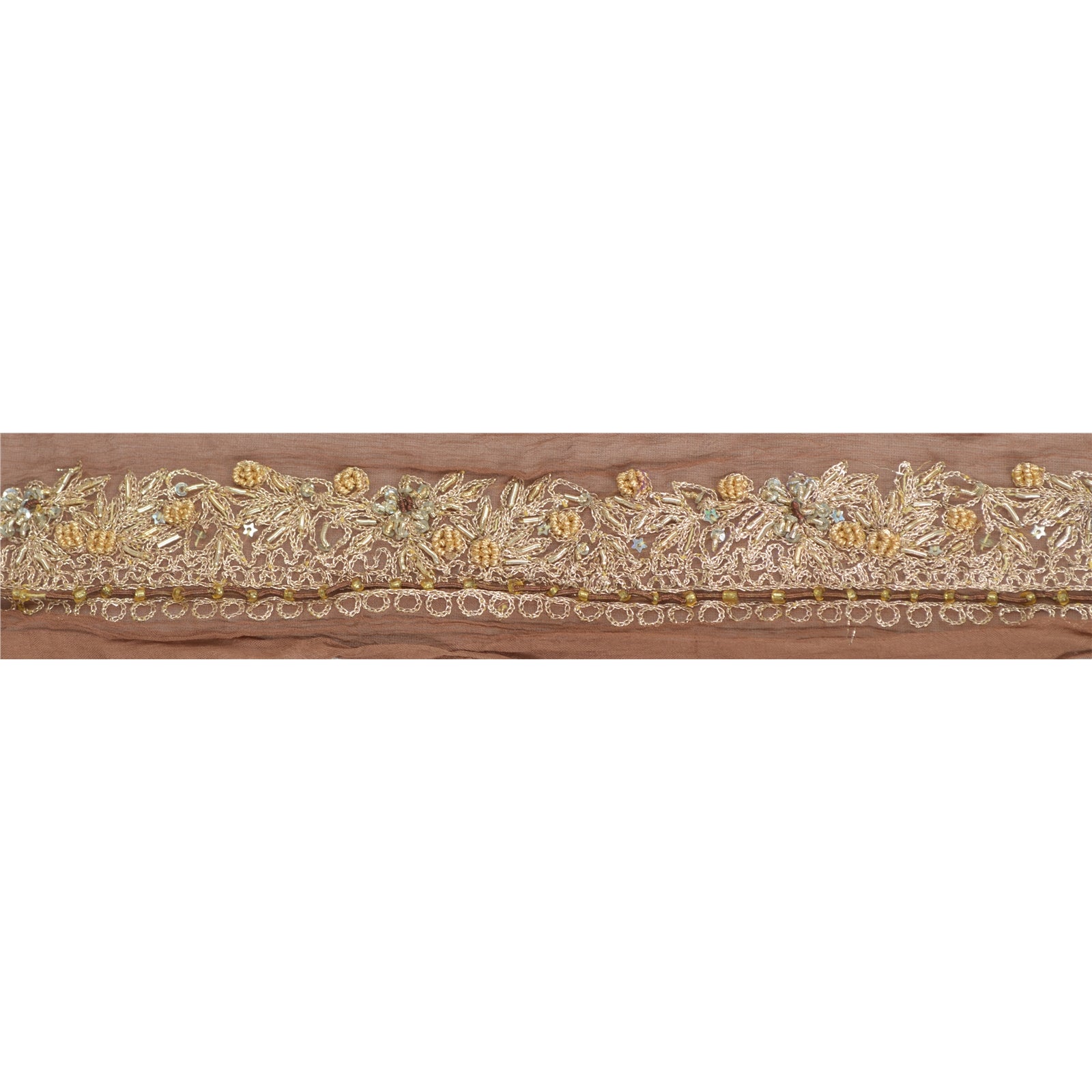 Sanskriti Vintage Sari Border Hand Beaded 1 Yd Indian Trim Sewing Brown Lace