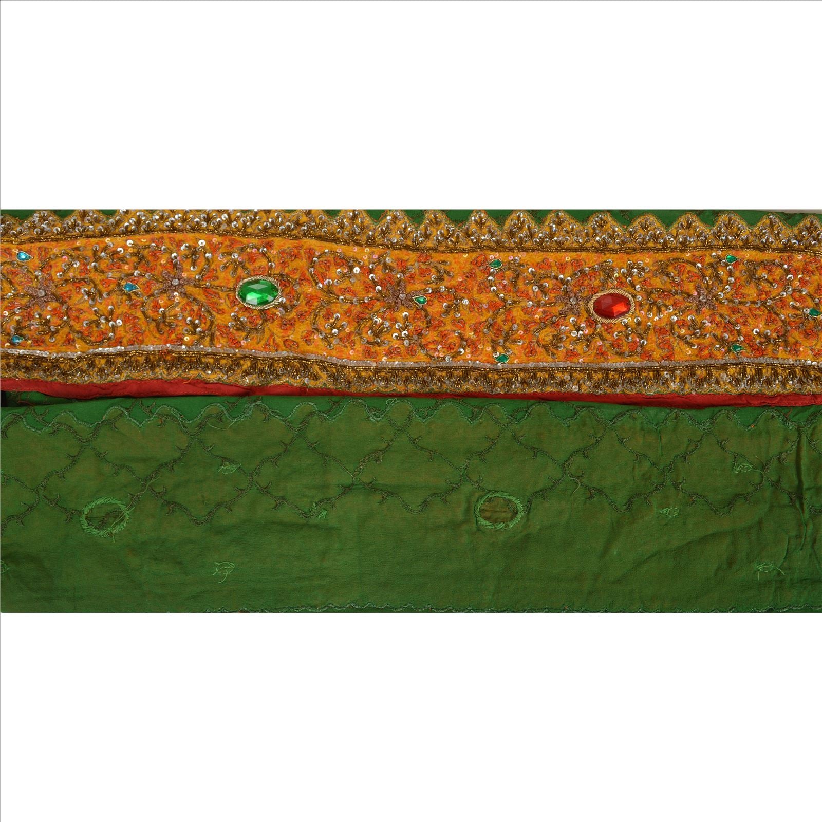 Sanskriti Vintage Sari Border Hand Beaded 1 Yd Trim Sewing Green Rhinestone Lace