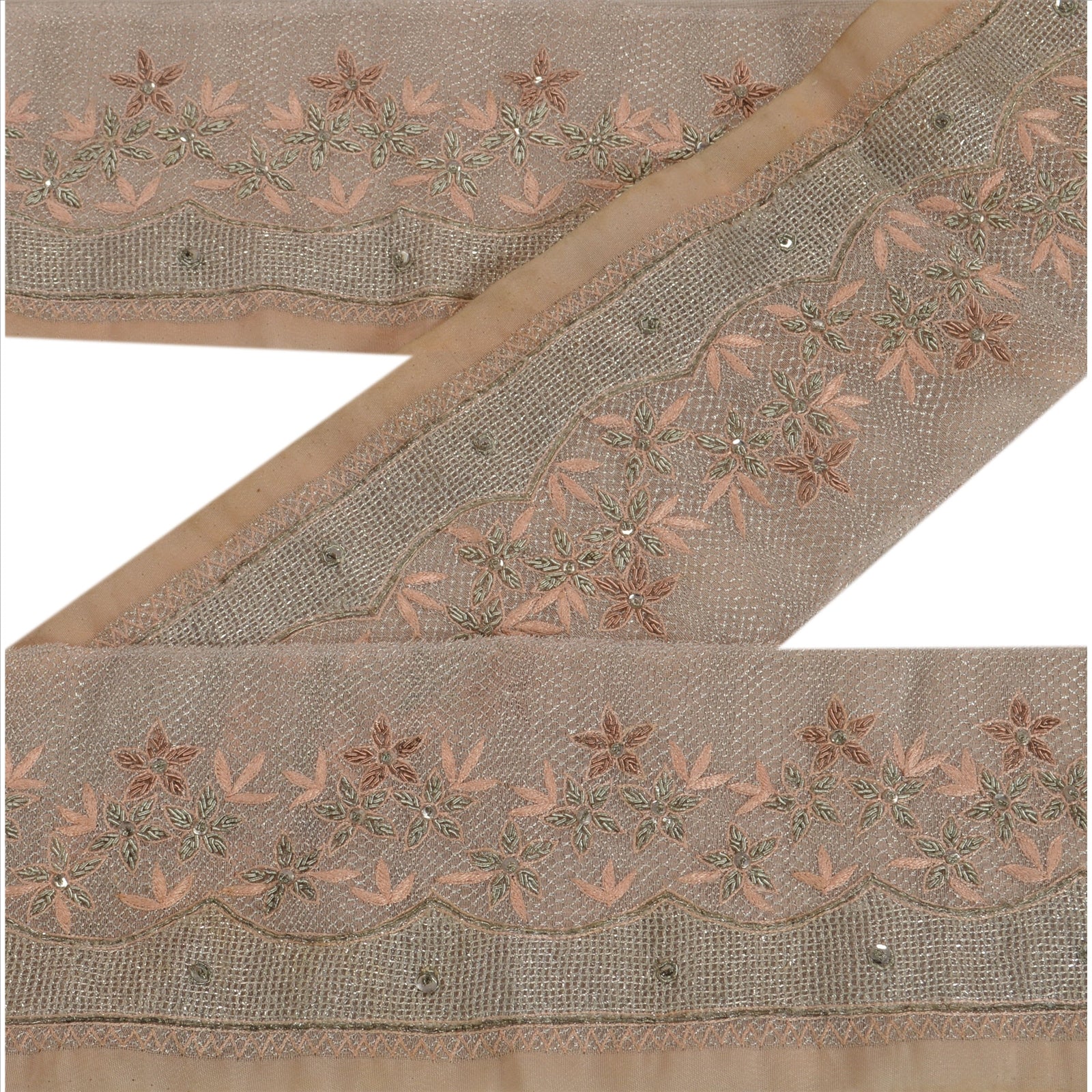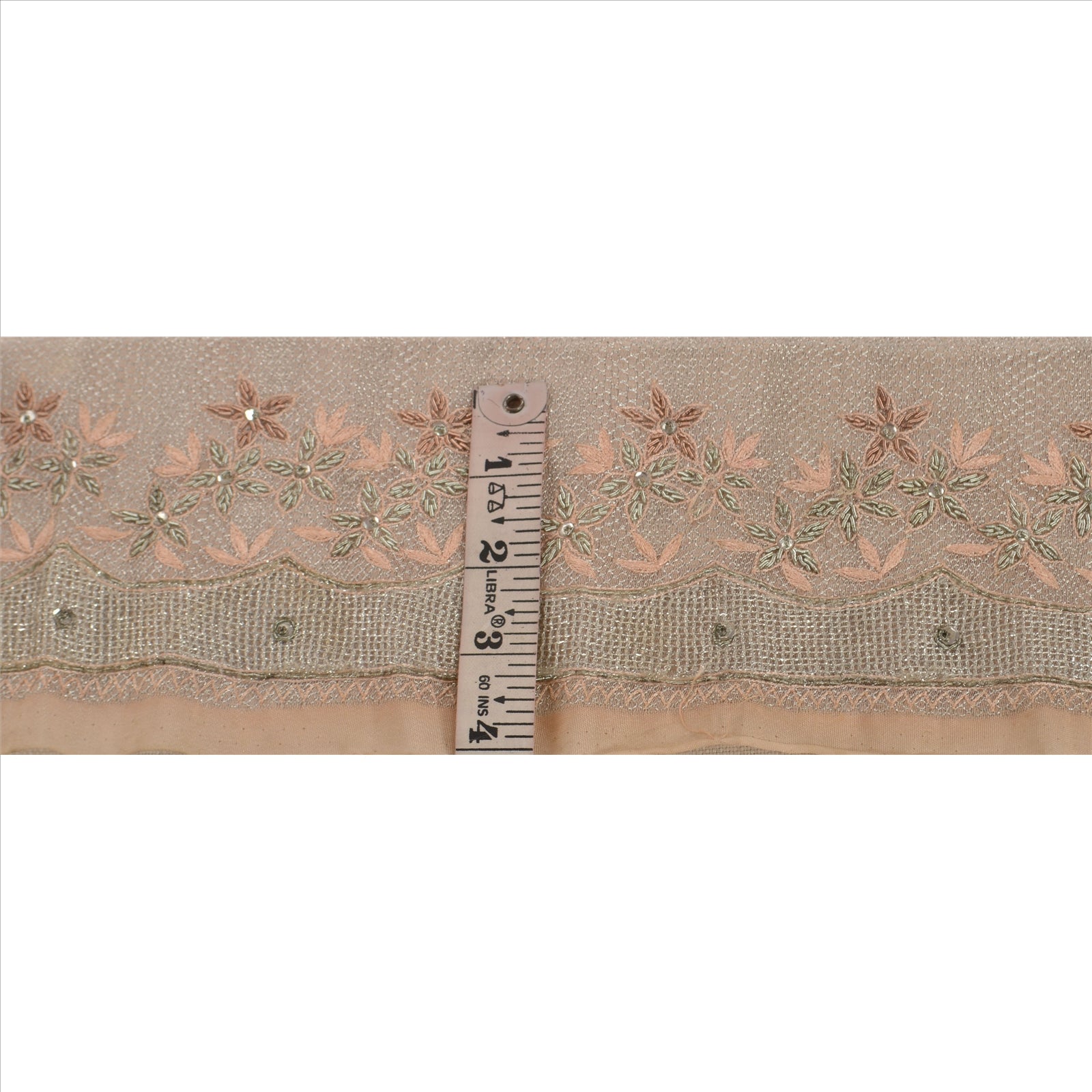 Sanskriti Vintage Sari Border Hand Beaded 1YD Indian Trim Sewing Peach Lace