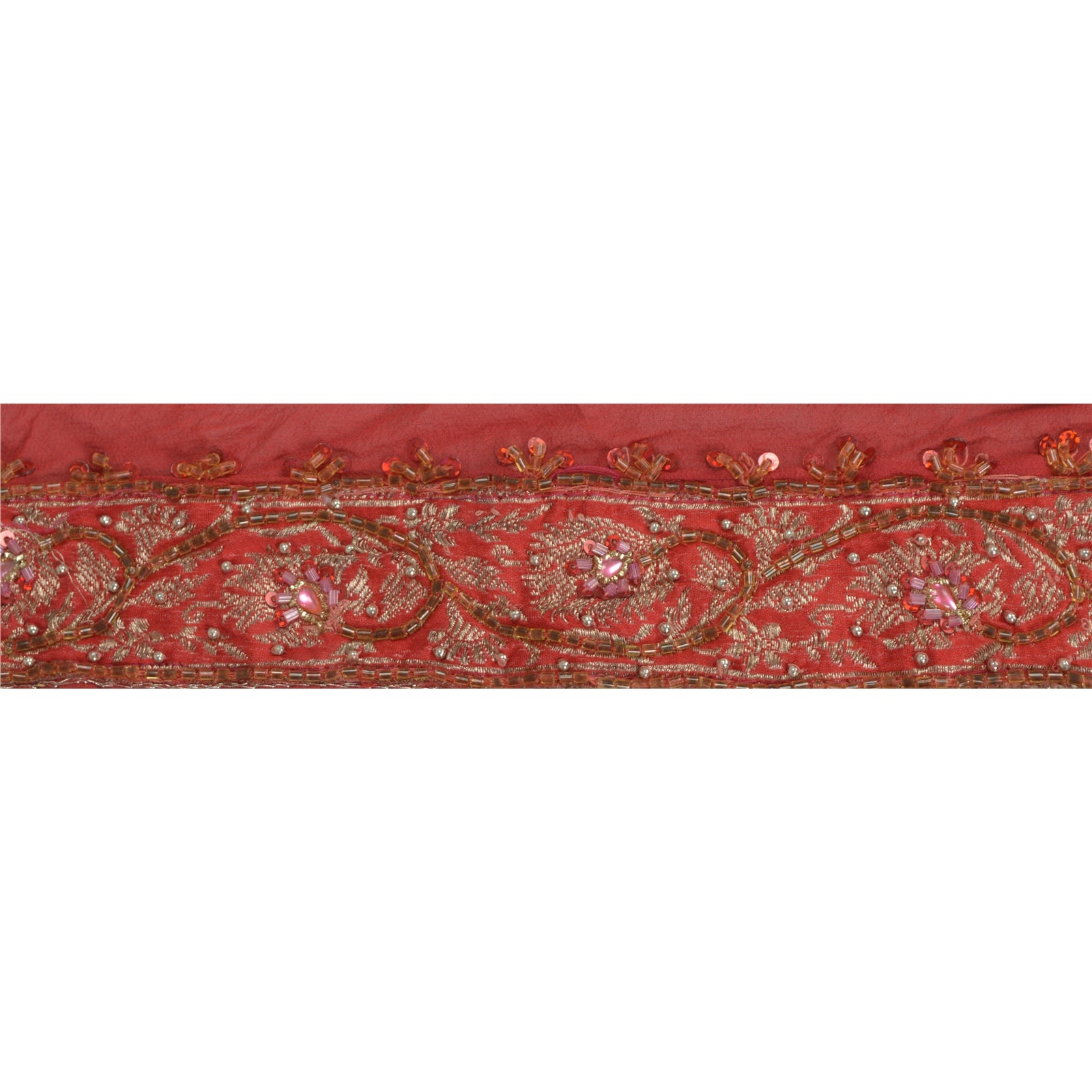 Sanskriti Vintage Sari Border Hand Beaded Brocade Zari Craft 1 Yd Red Trims Lace