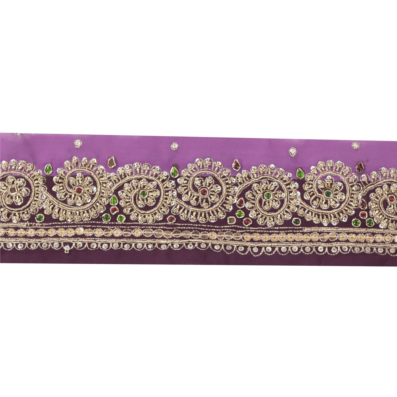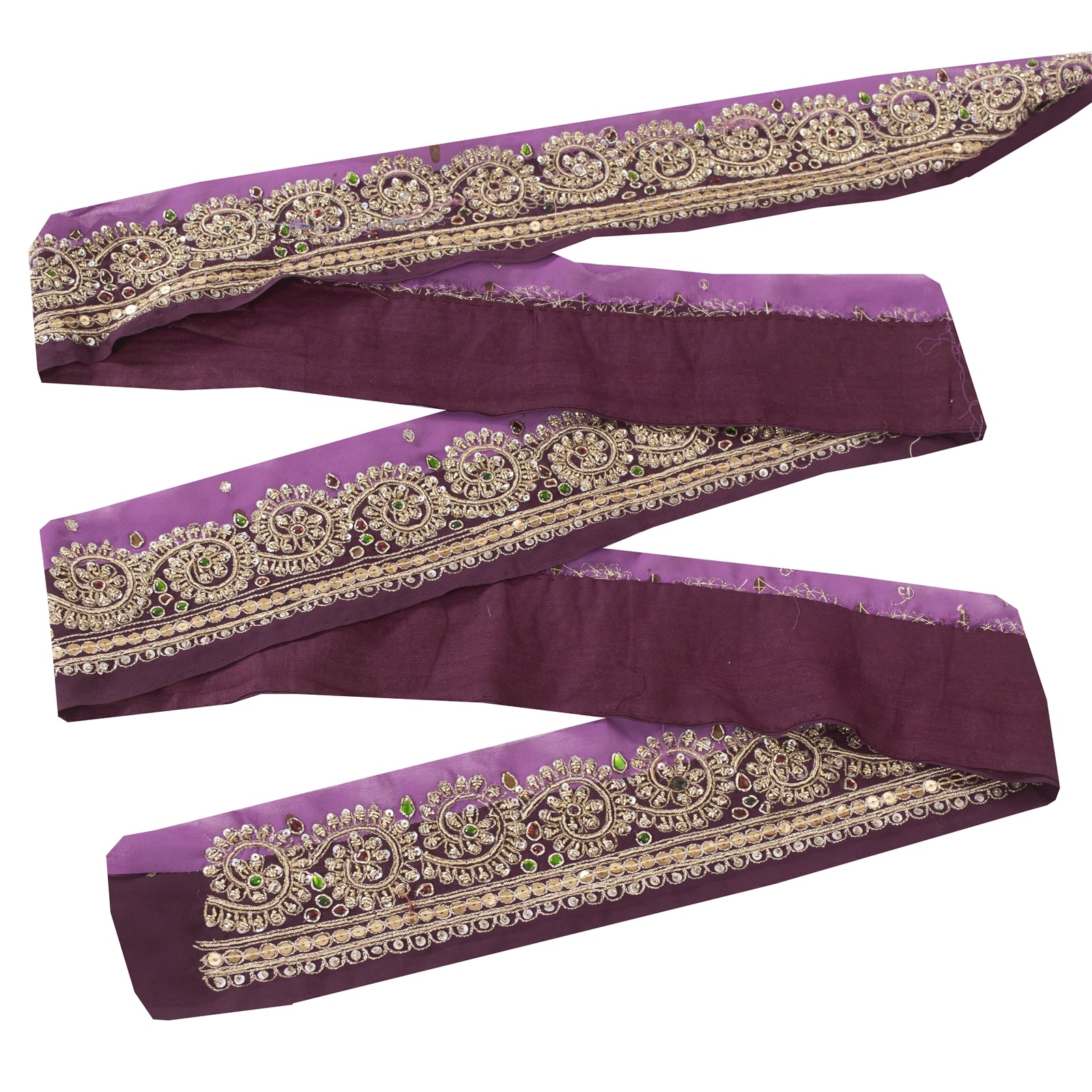 Sanskriti Vintage Sari Border Hand Beaded Zardozi 1 YD Trim Sewing Purple Lace