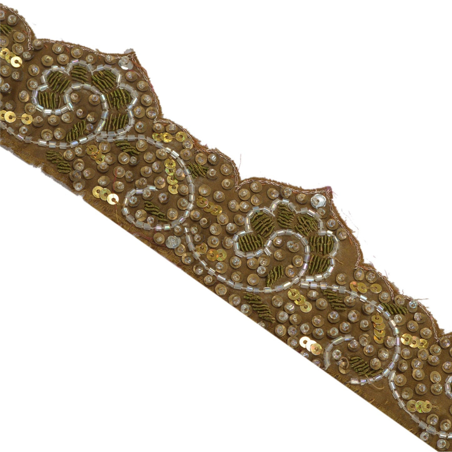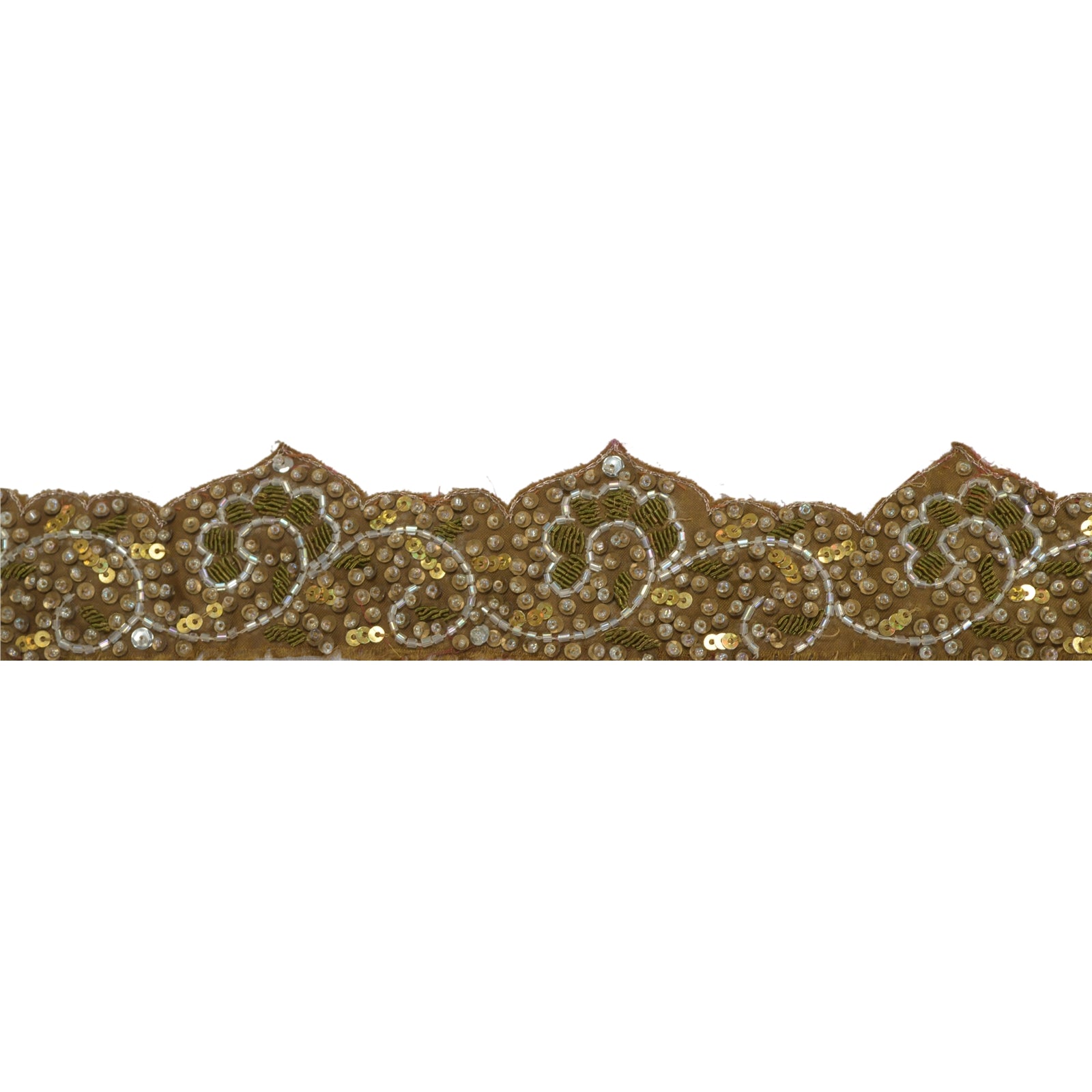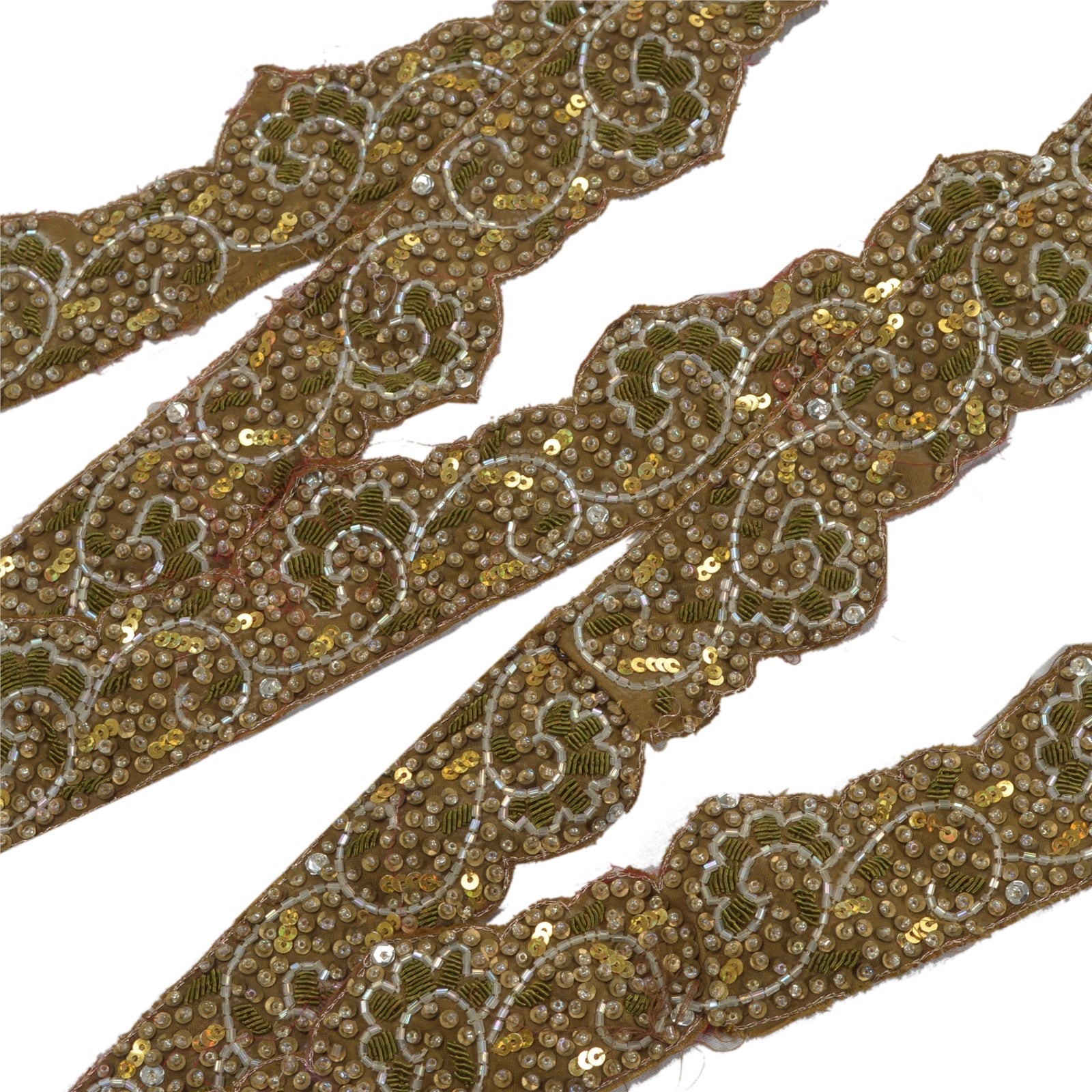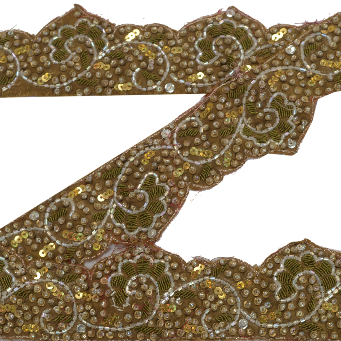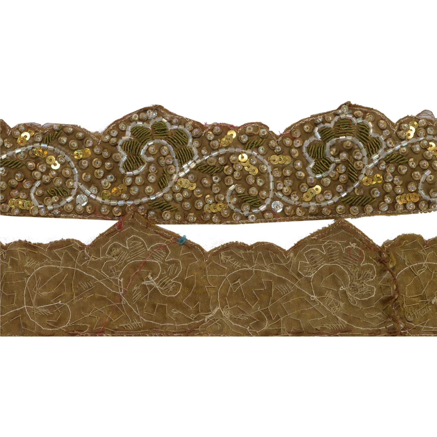 Sanskriti Vintage Sari Border Hand Beaded Zari 1 Yd Trims Sequins Lace 2'W Brown