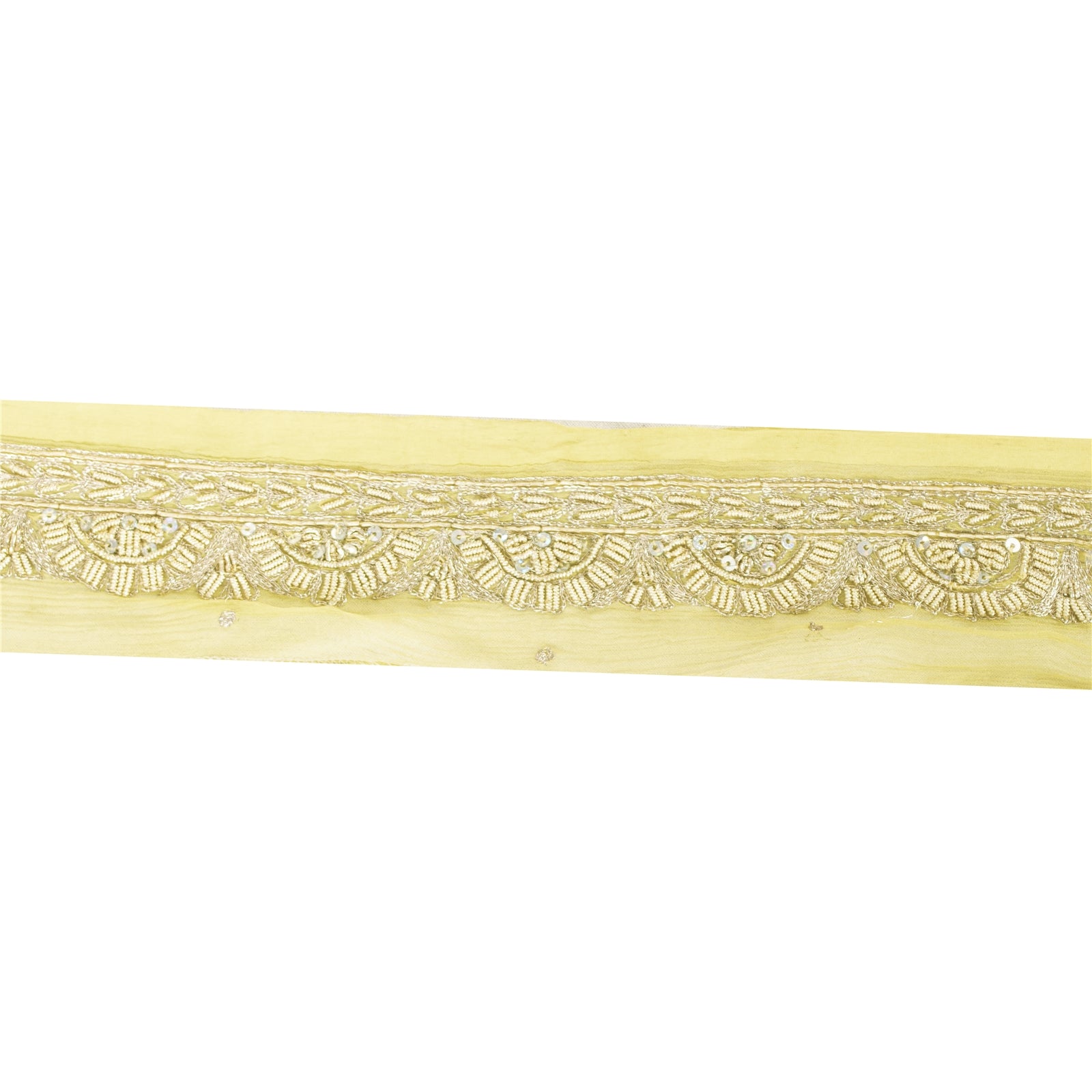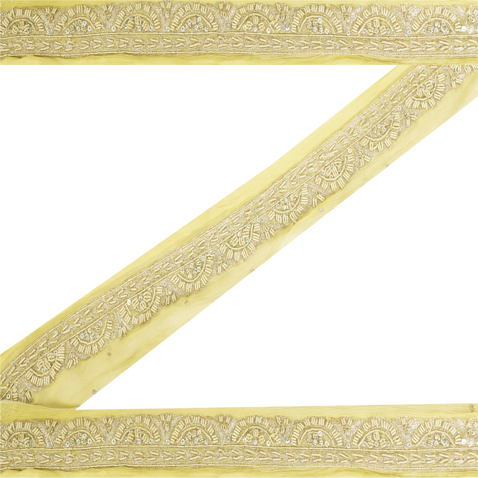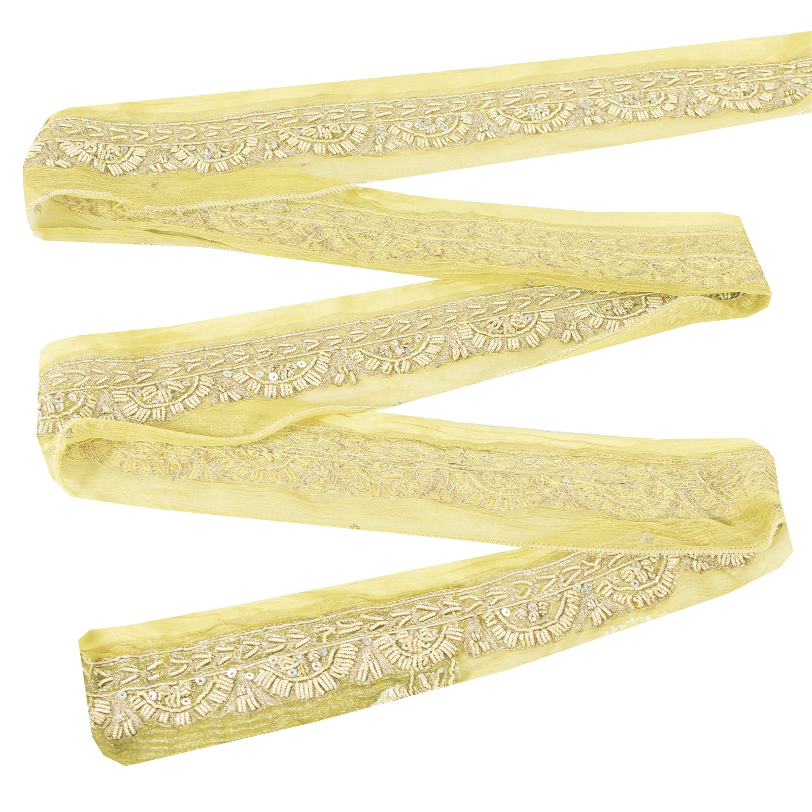THE ITEM COLOR OR SHADE MAY BE DARKER OR LIGHTER THAN THE PICTURE. Beautiful pure chiffon silk lemon green hand embroidered sari border. Further embellished by gold zari/zardozi/dabka work . Also, you can see silver sequins, white glass beads work along with floral design on green fabric. 1 Quantity = 1 Yard Shipping Note: 'International buyers please note: Import duties, taxes, and charges are not included in the item price or postage cost. These charges are the buyer's responsibility. Please check with your country's customs office to determine what these additional costs will be prior to bidding or buying. Buyer will pay custom duty/tax. It is calculated and charged differently by every country. As a seller I do not have any control over it. VAT or sales tax is calculated by the platform at the time of checkout. Customs charge is payable at the time of delivery.' B-8398