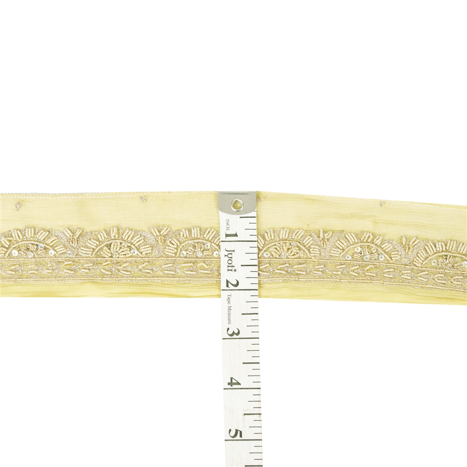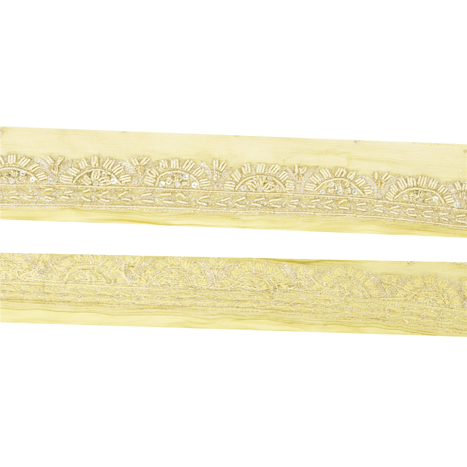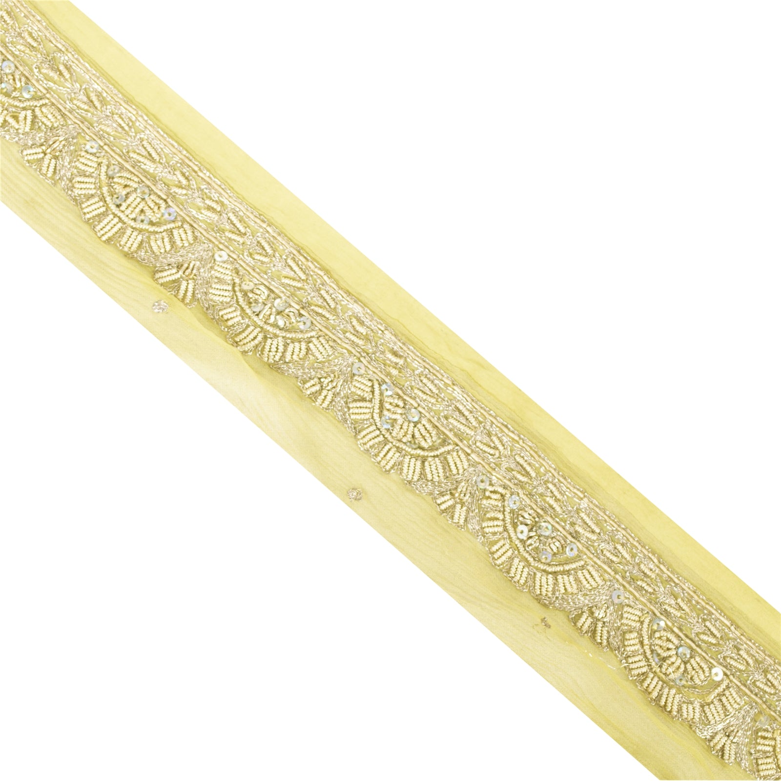THE ITEM COLOR OR SHADE MAY BE DARKER OR LIGHTER THAN THE PICTURE. Beautiful pure chiffon silk lemon green hand embroidered sari border. Further embellished by gold zari/zardozi/dabka work . Also, you can see silver sequins, white glass beads work along with floral design on green fabric. 1 Quantity = 1 Yard Shipping Note: 'International buyers please note: Import duties, taxes, and charges are not included in the item price or postage cost. These charges are the buyer's responsibility. Please check with your country's customs office to determine what these additional costs will be prior to bidding or buying. Buyer will pay custom duty/tax. It is calculated and charged differently by every country. As a seller I do not have any control over it. VAT or sales tax is calculated by the platform at the time of checkout. Customs charge is payable at the time of delivery.' B-8398