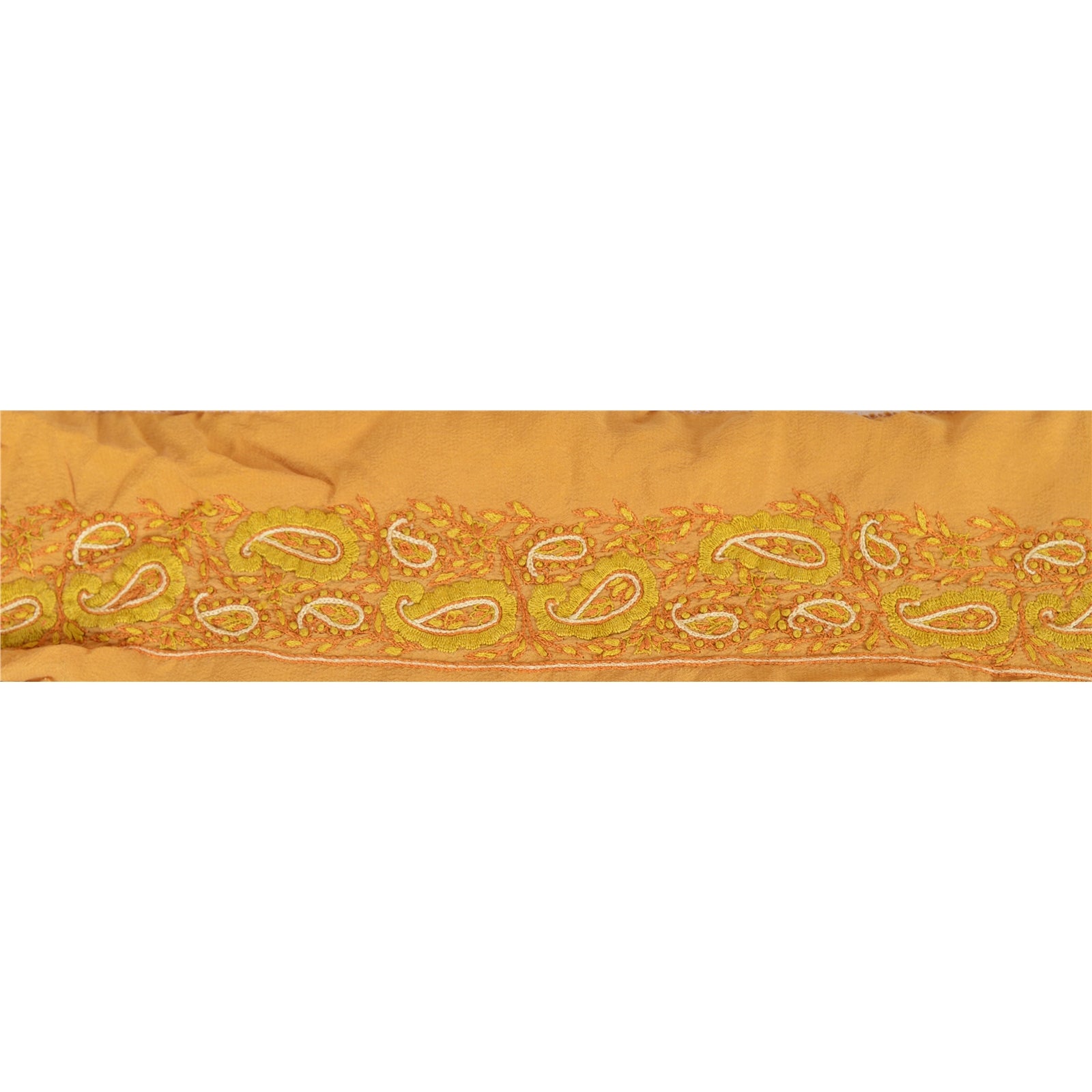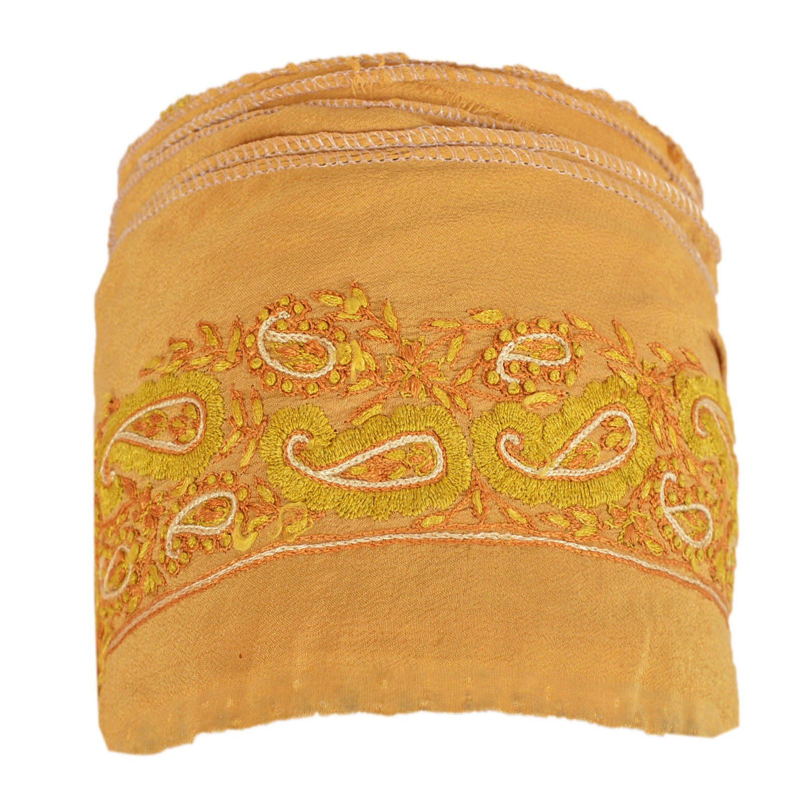 Sanskriti Vintage Sari Border Hand Embroidery 1 YD Trim Ribbon Saffron Silk Lace
