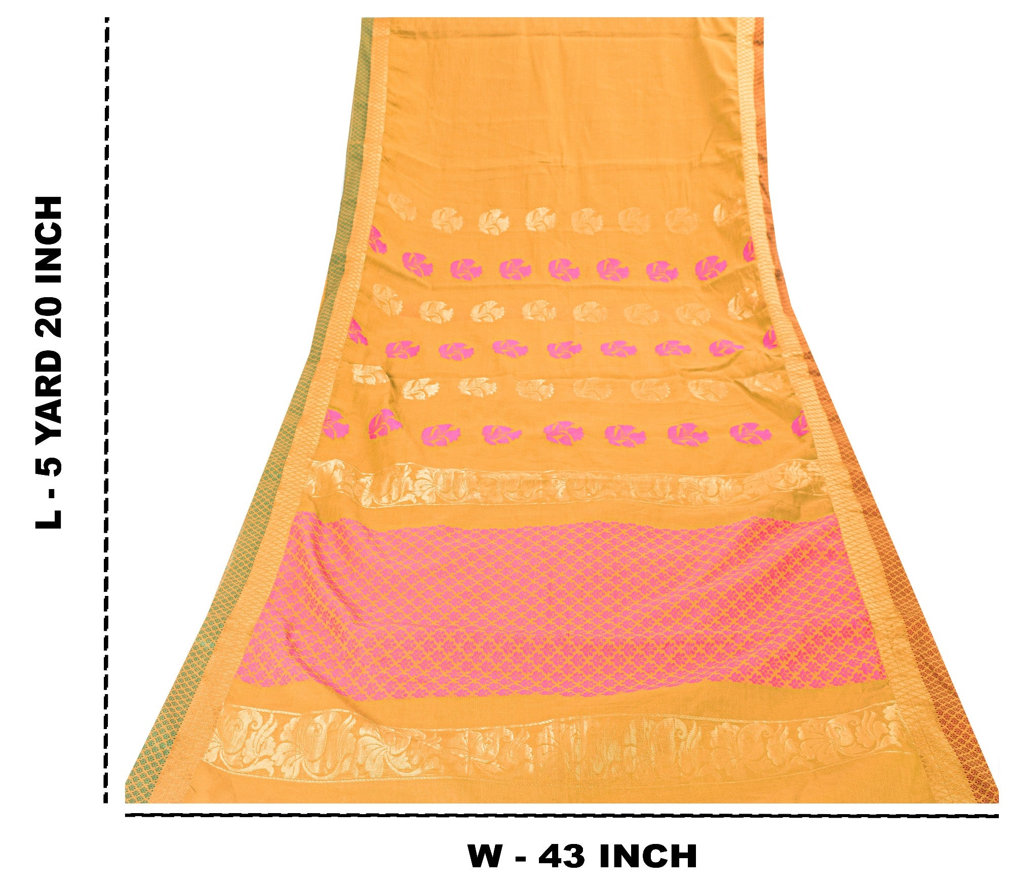• Material: Premium Pure Cotton the luxurious sheen and drape of natural silk with added durability. • Color: Yellow. • Design: Intricate floral motifs with rich golden zari & thread weaving throughout the body and borders. • Length: 5.5+ yards (approx. 200 inches) - ample fabric for versatile crafting ideas. • Condition: Vintage, previously used but appears to be in good condition. Any minor flaws, if present, are photographed and noted. • Versatility: Ideal for creating new fashion dresses, upholstery, window dressings, table linen, or other creative projects. THE ITEM COLOR OR SHADE MAY BE DARKER OR LIGHTER THAN THE PICTURE.' International buyers please note: Import duties, taxes, and charges are not included in the item price or postage cost. Buyer will pay custom duty/tax,VAT, and any applicable charges at the time of delivery. PS-64468