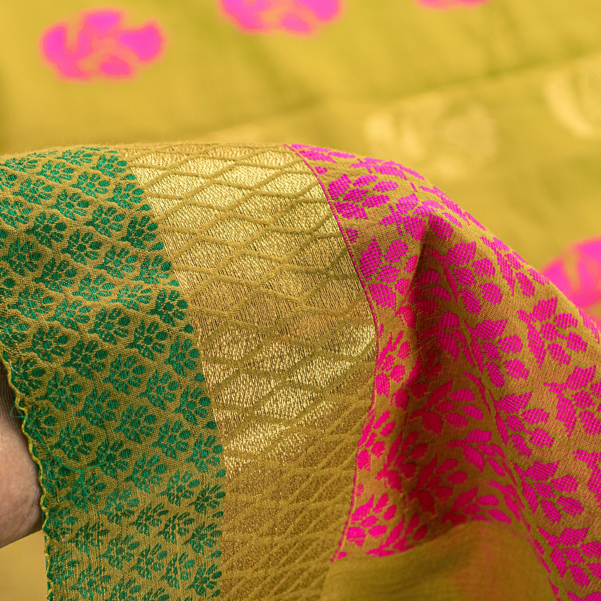 Sanskriti Vintage Yellow Pure Cotton Saree Hand Woven Zari 5.5+ YD Fabric Supply