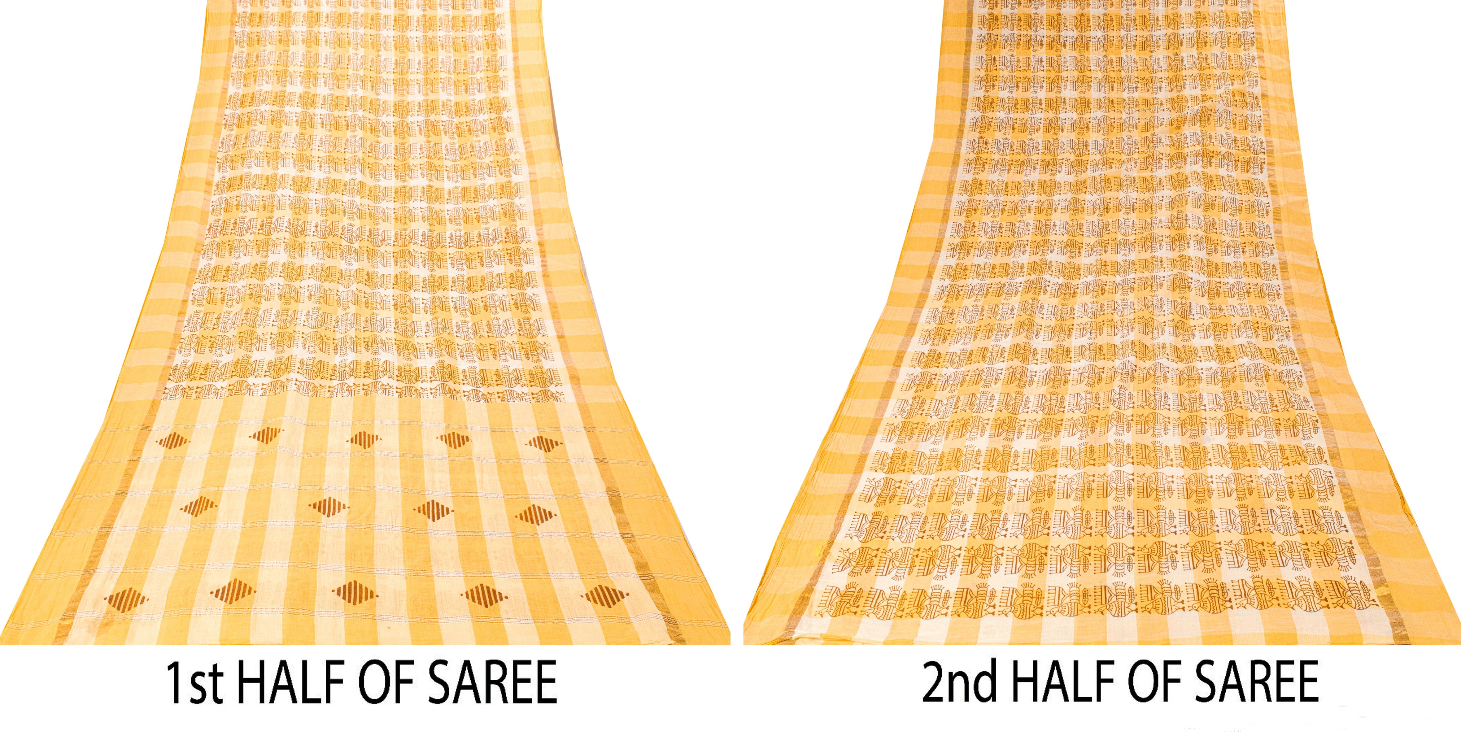 ✔ Brand: Handmade Kalamkari From Andhra Pradesh Of India ✔ Fabric: Pure Cotton ✔ Length: 5.5 Yards (Approx.) ✔ Print: Hand Made Kalamkari & Zari Woven ✔ Color: Yellow ✔ Work: Peacock Design On Body. Golden Zari Woven & Printed Geometric Print On Pallu Border Of Sari. ✔ Lightweight & Breathable ✔ Ideal For Saree, Dress Making, Craft & Upcycling ✔ Vintage Traditional Indian Textile ✔ Soft Texture With Natural Drape ✔ Perfect For Sustainable Fashion Projects ✔ Shipping Note: International Buyers Please Note: Import Duties, Taxes, And Charges Are Not Included In The Item Price Or Postage Cost. Buyer Will Pay Custom Duty/Tax,Vat, And Any Applicable Charges At The Time Of Delivery Pcs-7886
