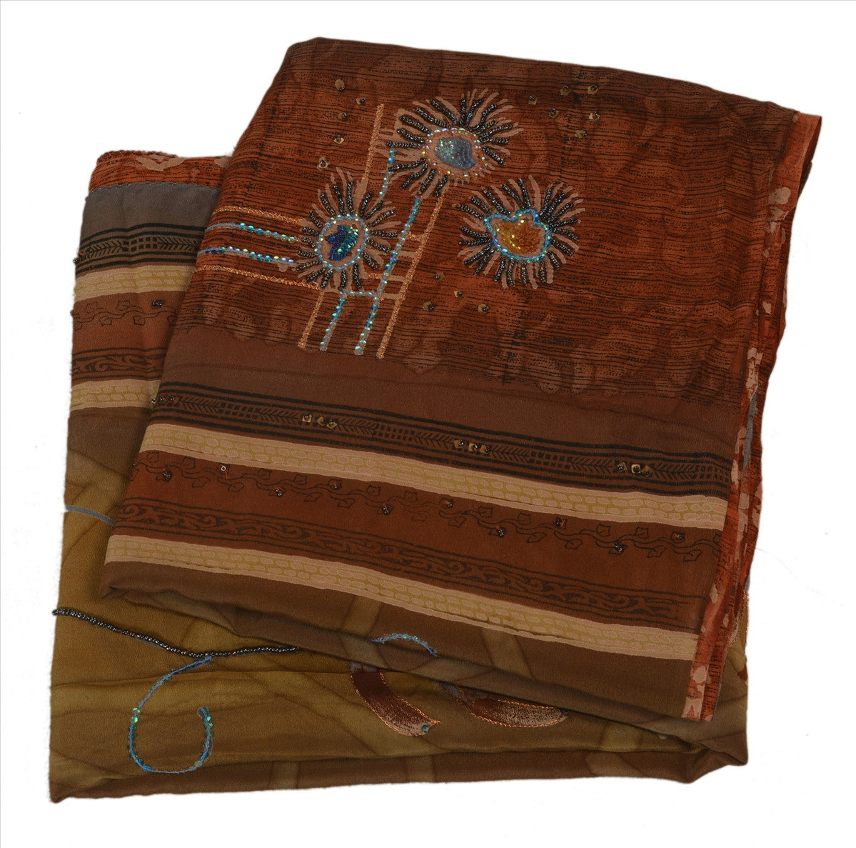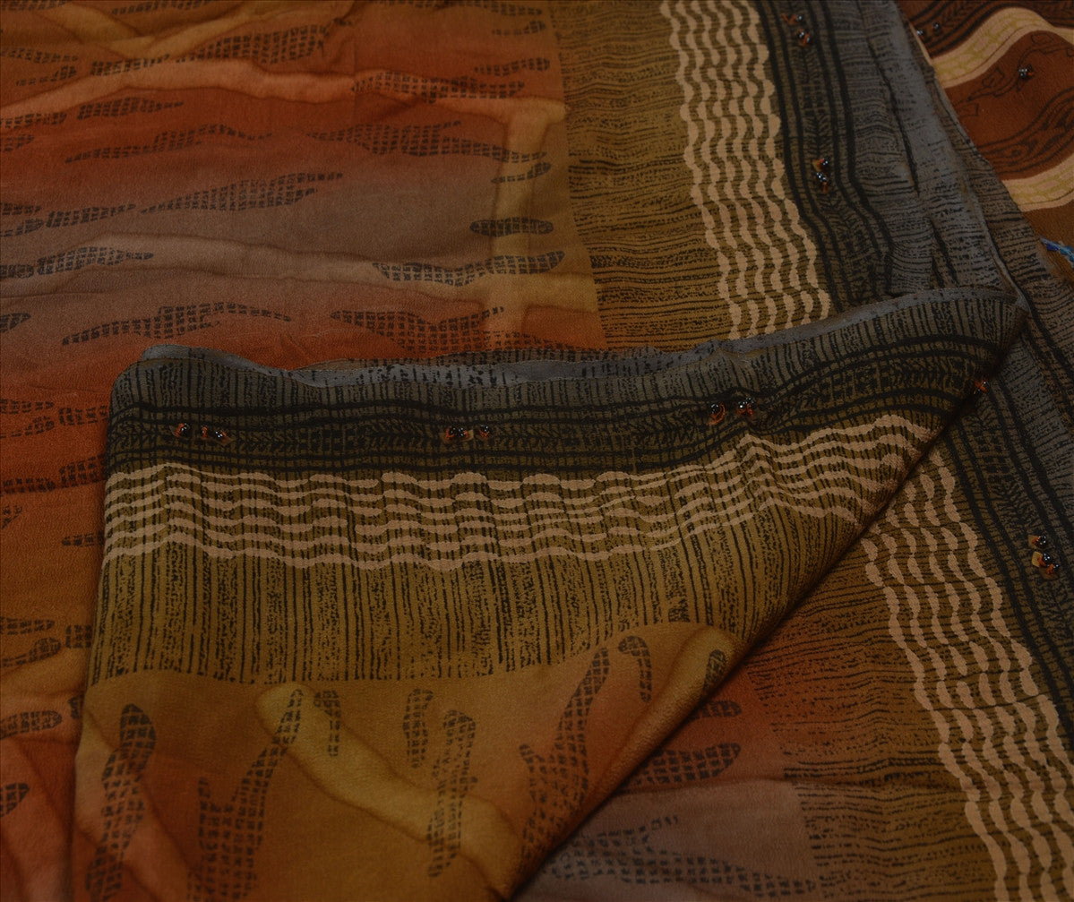 Sanskriti Vintage Indian Saree 100% Pure Crepe Silk Hand Beaded Craft Sustainable Fabric Cultural Sari