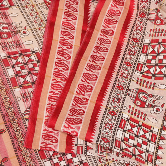 Sanskriti Vintage Ivory Sarees Pure Cotton Printed Premium Sari Craft Sustainable Fabric