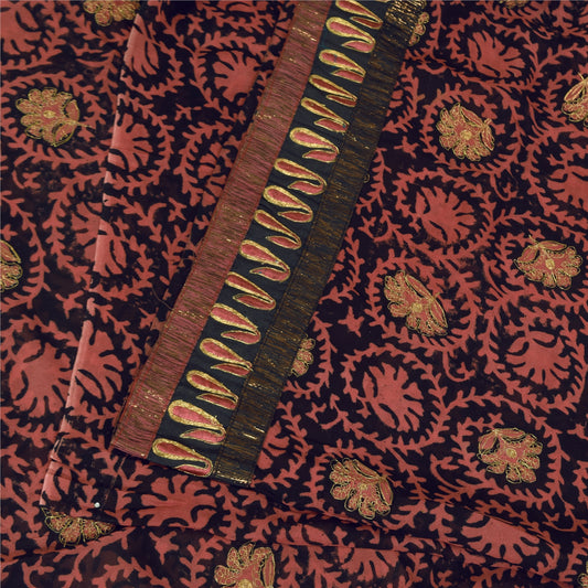 Sanskriti Vintage Black Sarees Pure Georgette Embroidered Sari 6yd Craft Sustainable Fabric