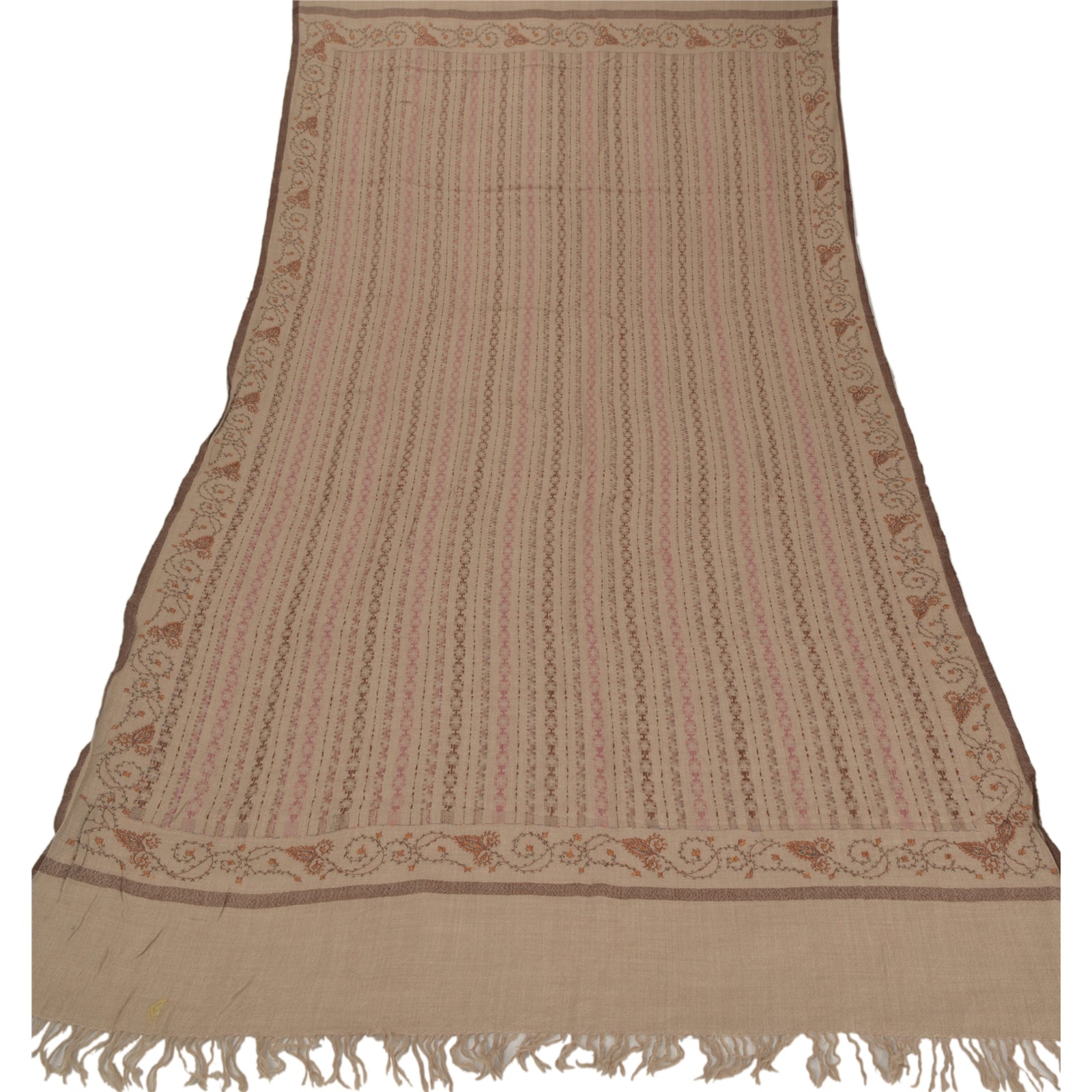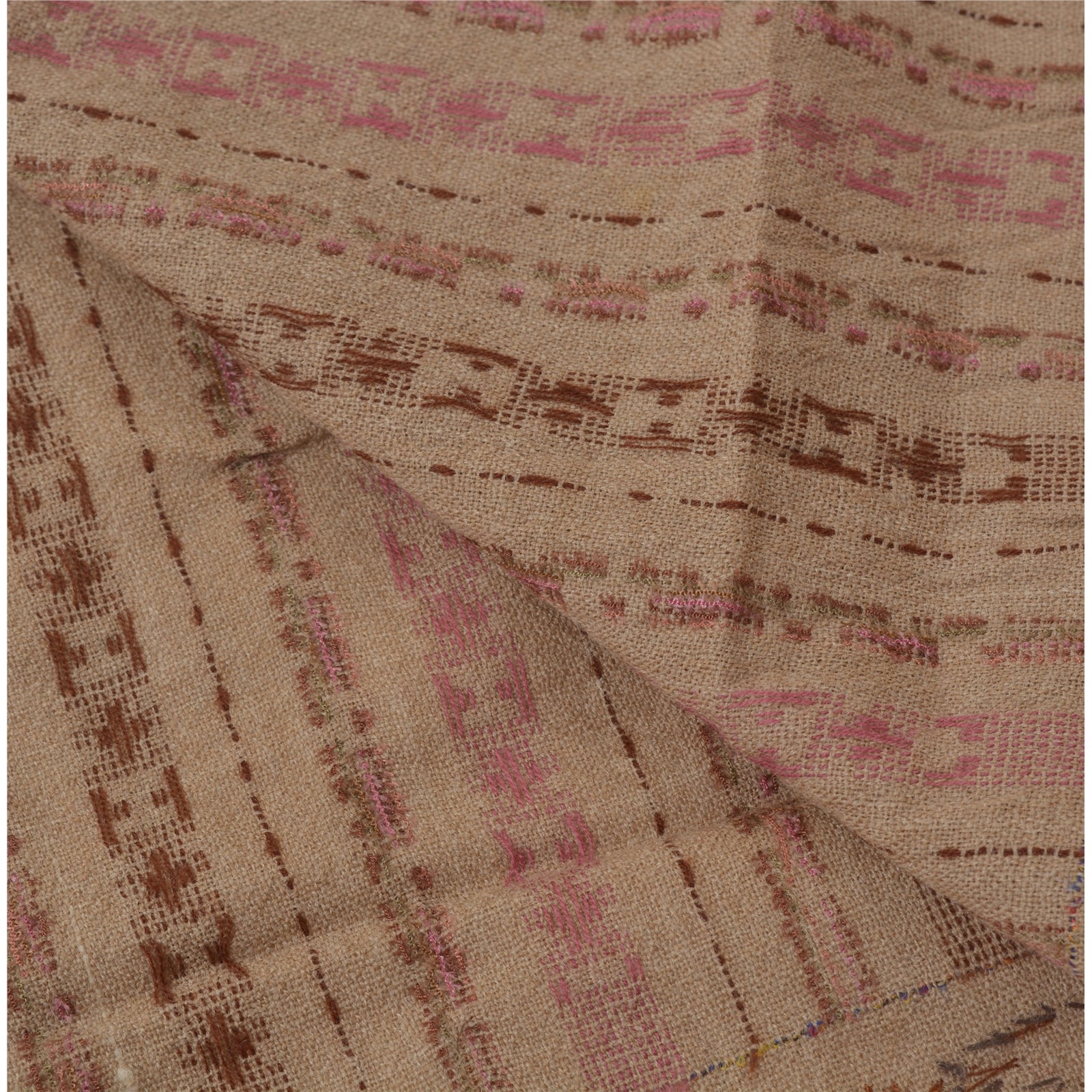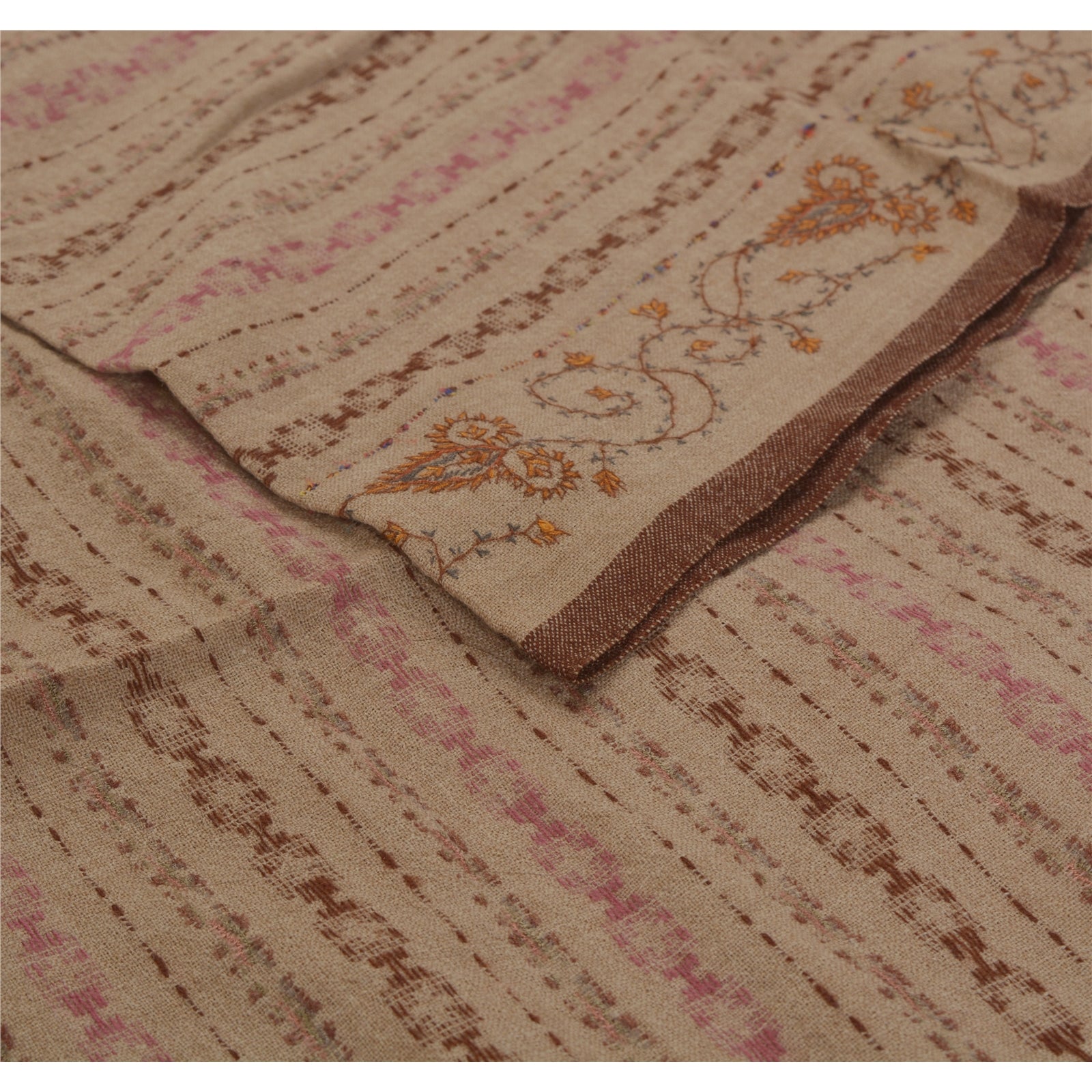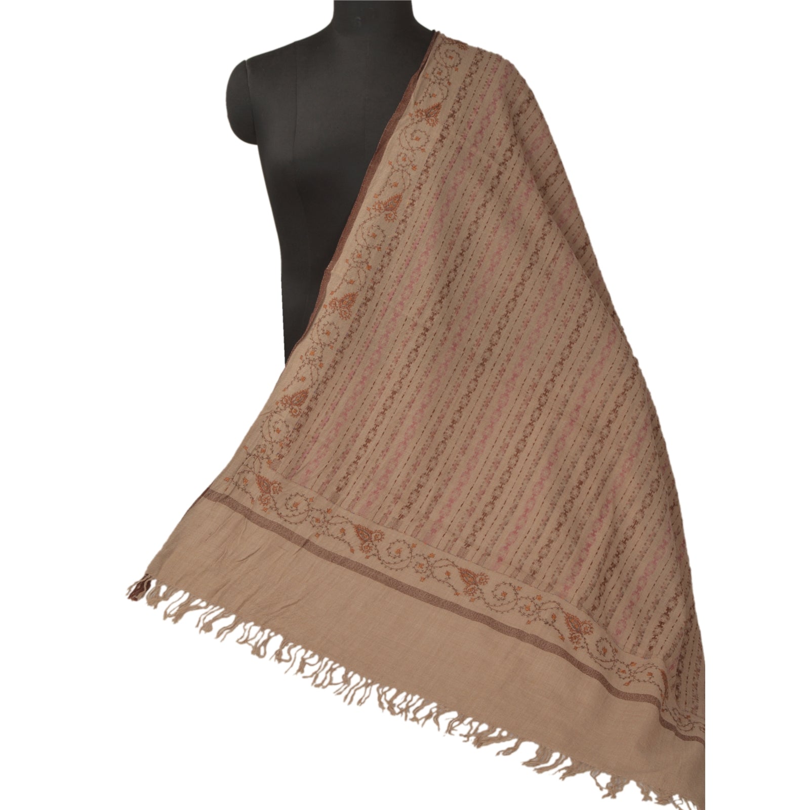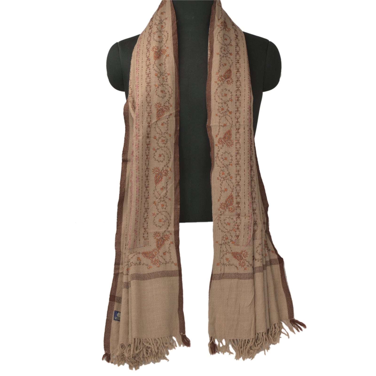 Sanskriti Vintage Brown Woolen Shawl Handmade Suzani Work Woven Stole Scarf