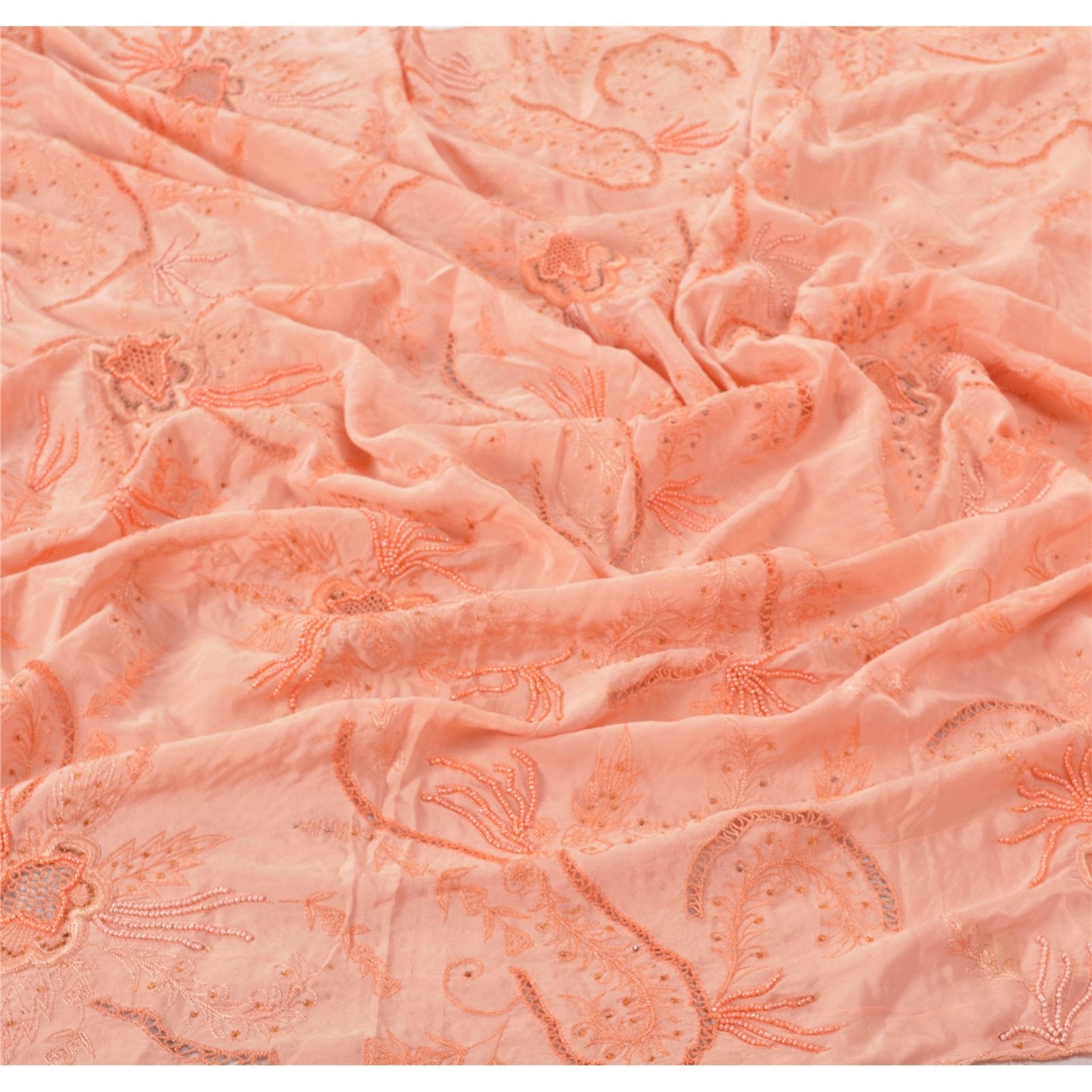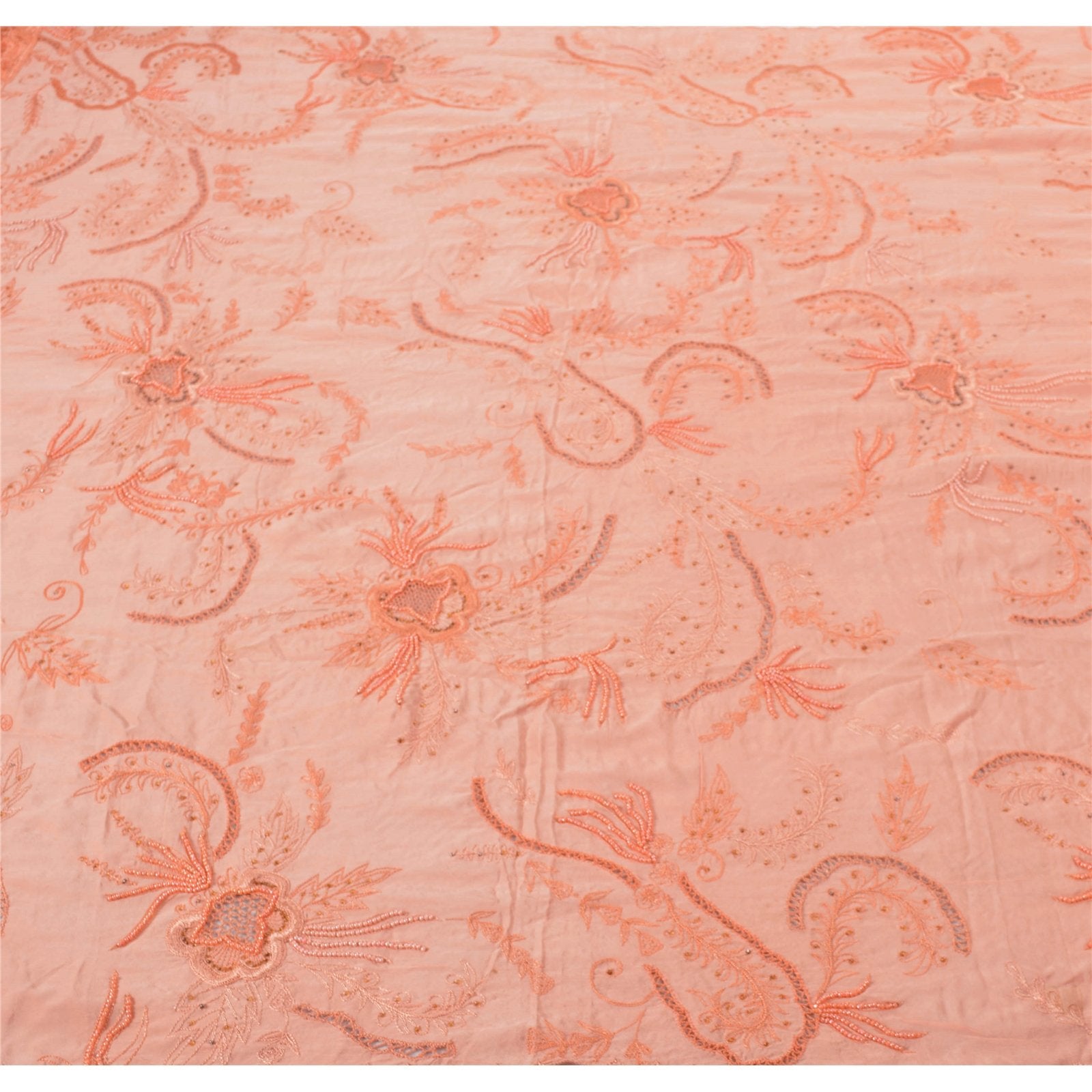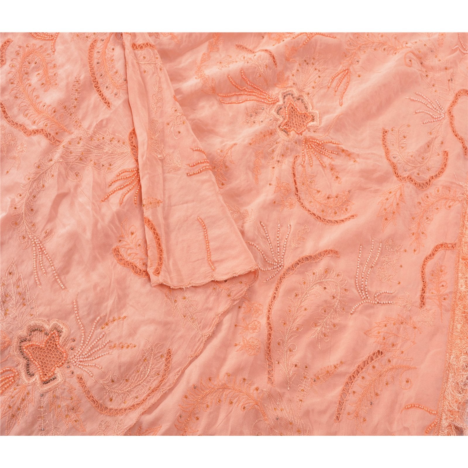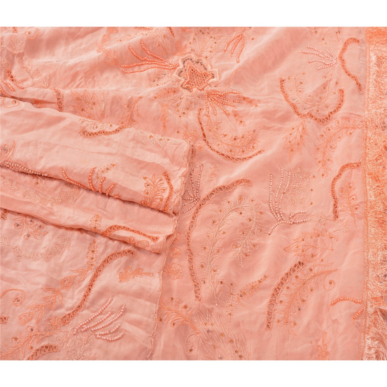 Sanskriti Vintage Peach Heavy Dupatta Pure Silk Hand Beaded Pearl Beads Stole