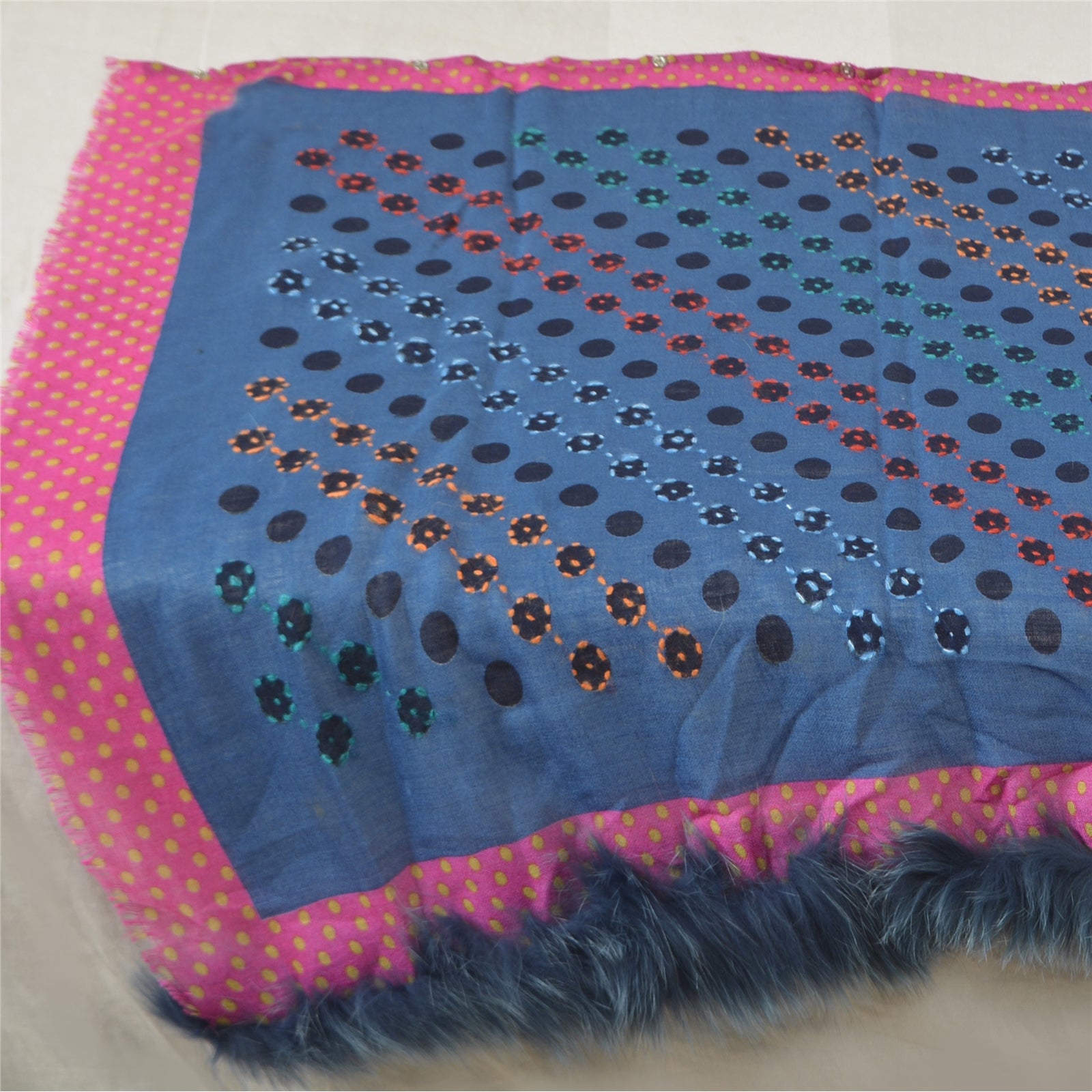 Fabulous hand embroidered boil wool shawl/scarf/stole. Cozy and gorgeously soft to touch, this shawl has a beautiful printed polka dots design all over with blue/red/orange thread hand embroidered design. Shawl has extremely soft grey fur on 1 side Wear this versatile piece as a scarf, stole, shawl or wrap around like a poncho/wrap with buttons. 'International buyers please note: Import duties, taxes, and charges are not included in the item price or postage cost. These charges are the buyer's responsibility. Please check with your country's customs office to determine what these additional costs will be prior to bidding or buying. Buyer will pay custom duty/tax. It is calculated and charged differently by every country. As a seller I do not have any control over it. VAT or sales tax is calculated by the platform at the time of checkout. Customs charge is payable at the time of delivery.'