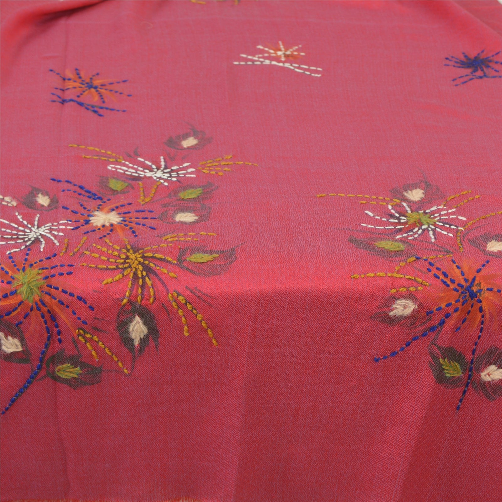 Fabulous hand embroidered pure wool shawl/scarf/stole/ poncho. Cozy and gorgeously soft to touch, this shawl has a beautiful printed floral design all over with green/blue/red/orange/brown thread hand embroidered design. Wear this versatile piece as a scarf, stole or wrap or as a poncho 'International buyers please note: Import duties, taxes, and charges are not included in the item price or postage cost. These charges are the buyer's responsibility. Please check with your country's customs office to determine what these additional costs will be prior to bidding or buying. Buyer will pay custom duty/tax. It is calculated and charged differently by every country. As a seller I do not have any control over it. VAT or sales tax is calculated by the platform at the time of checkout. Customs charge is payable at the time of delivery.