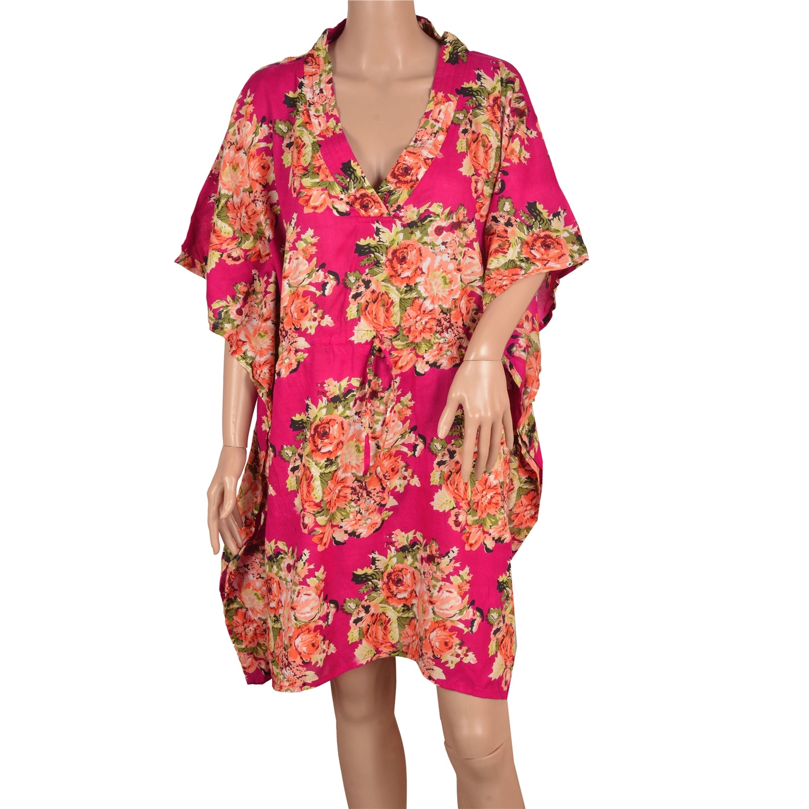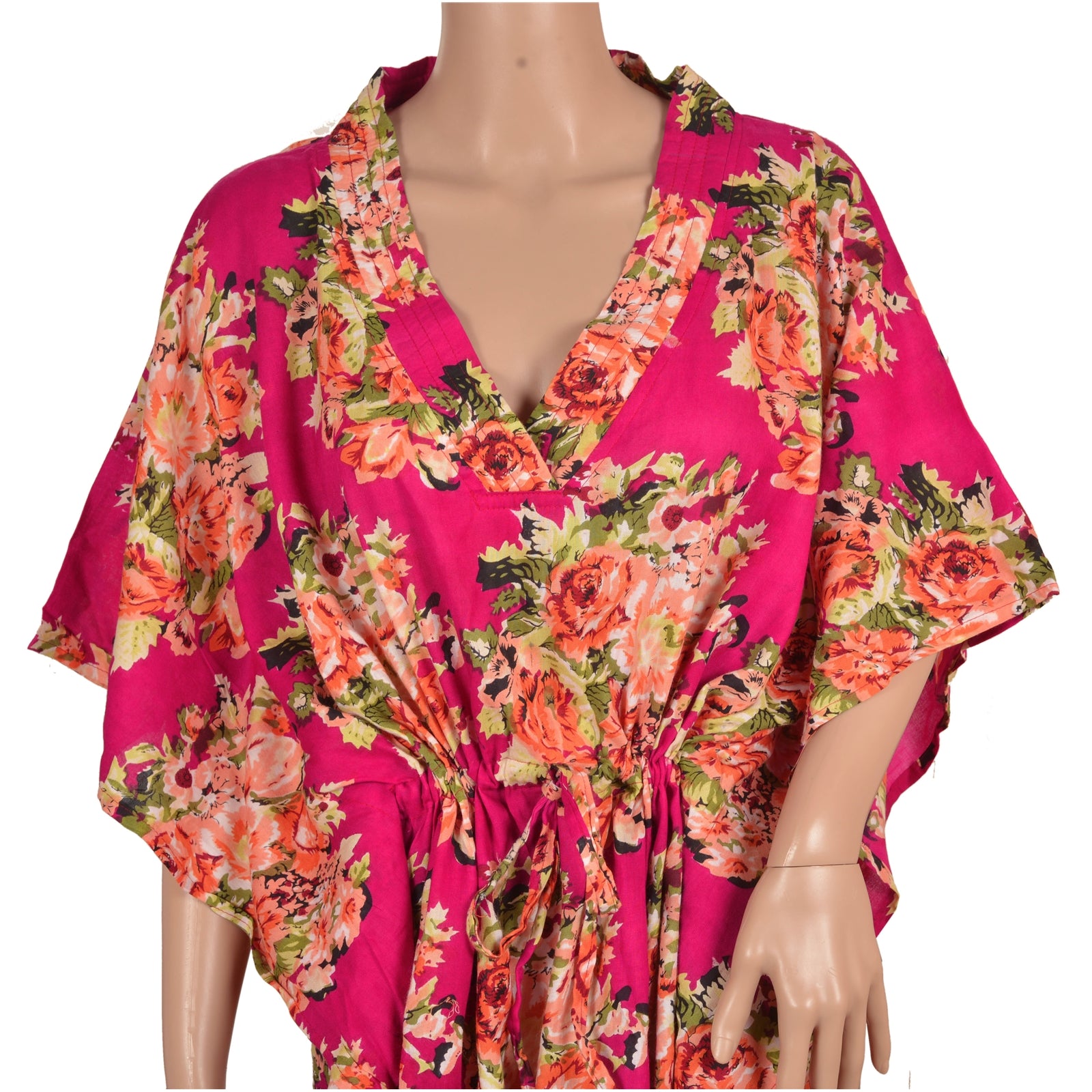 Sanskriti Vintage Sustainable Fabric Cotton Printed Poncho Kaftan Top Fashion Indian Pink