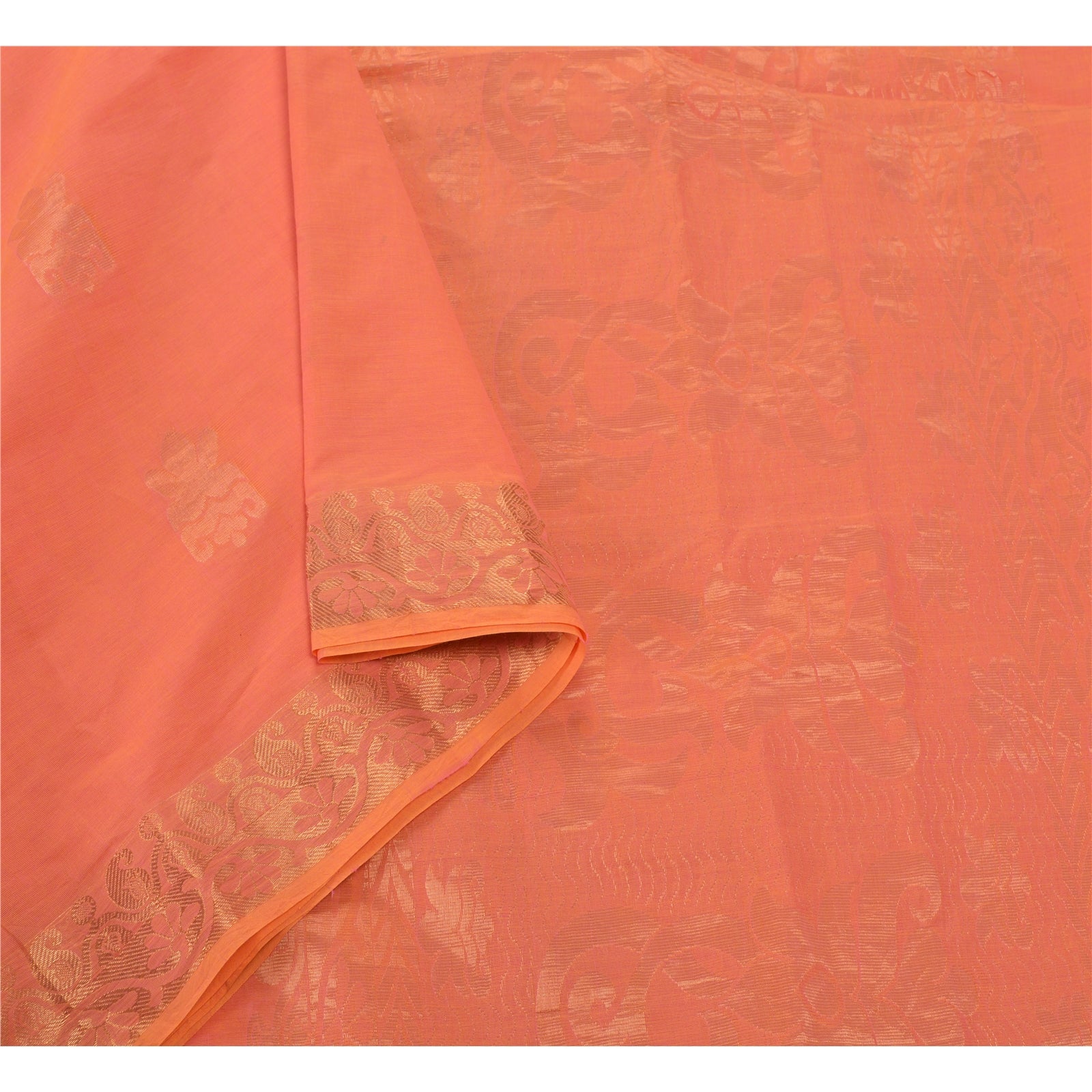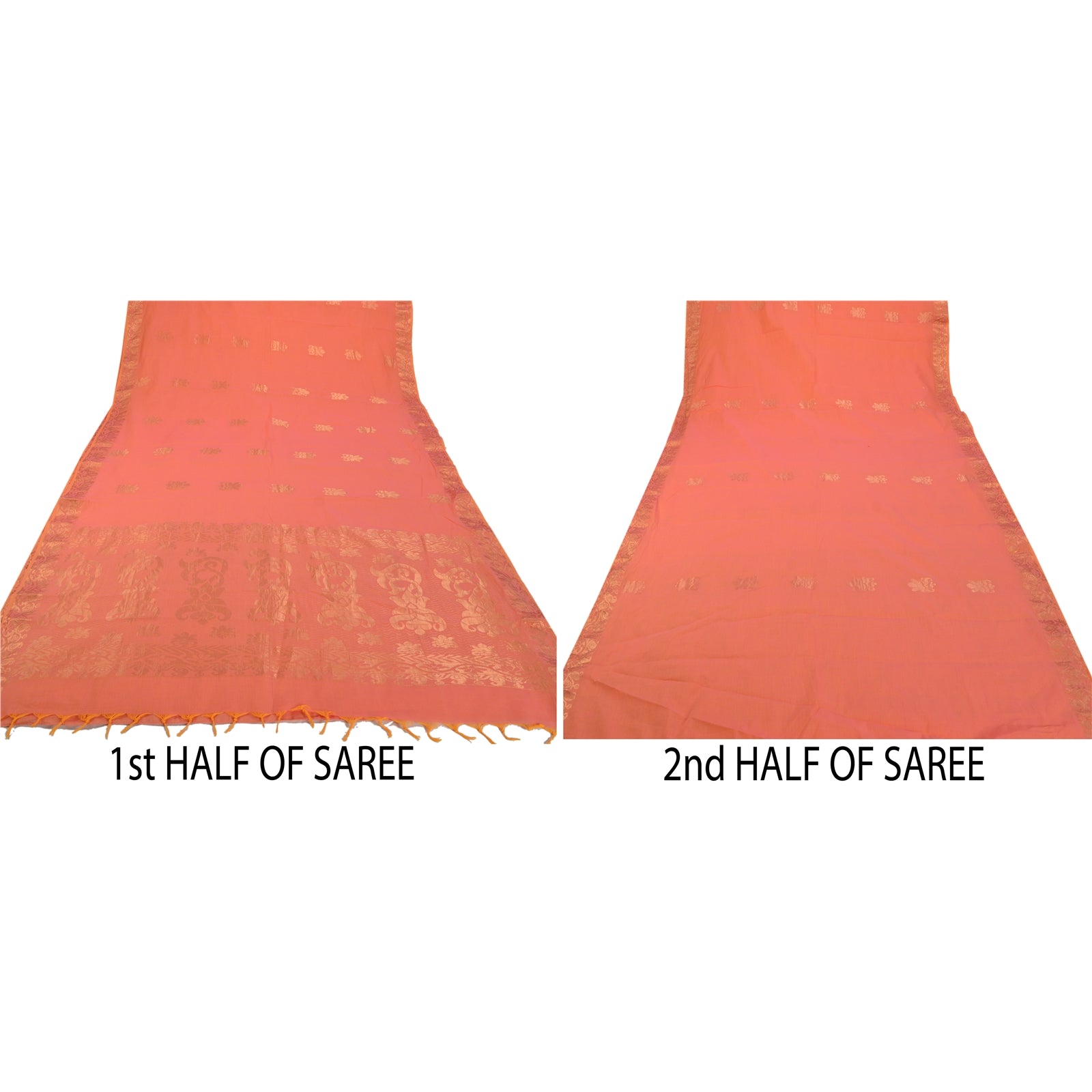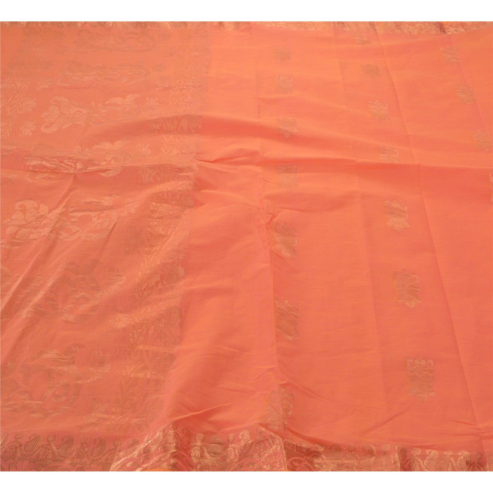 Sanskriti Vintage Peach Heavy Indian Sari Blend Silk Woven Sustainable Fabric Craft Sarees