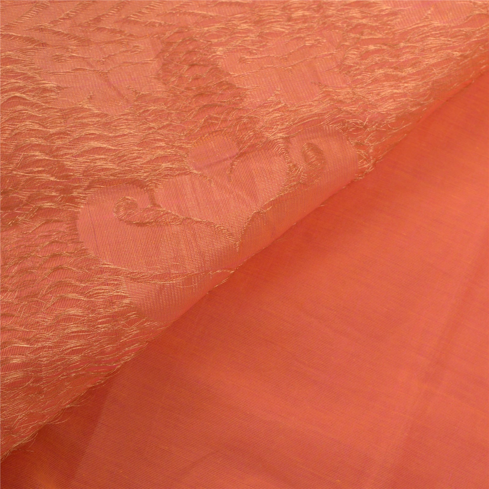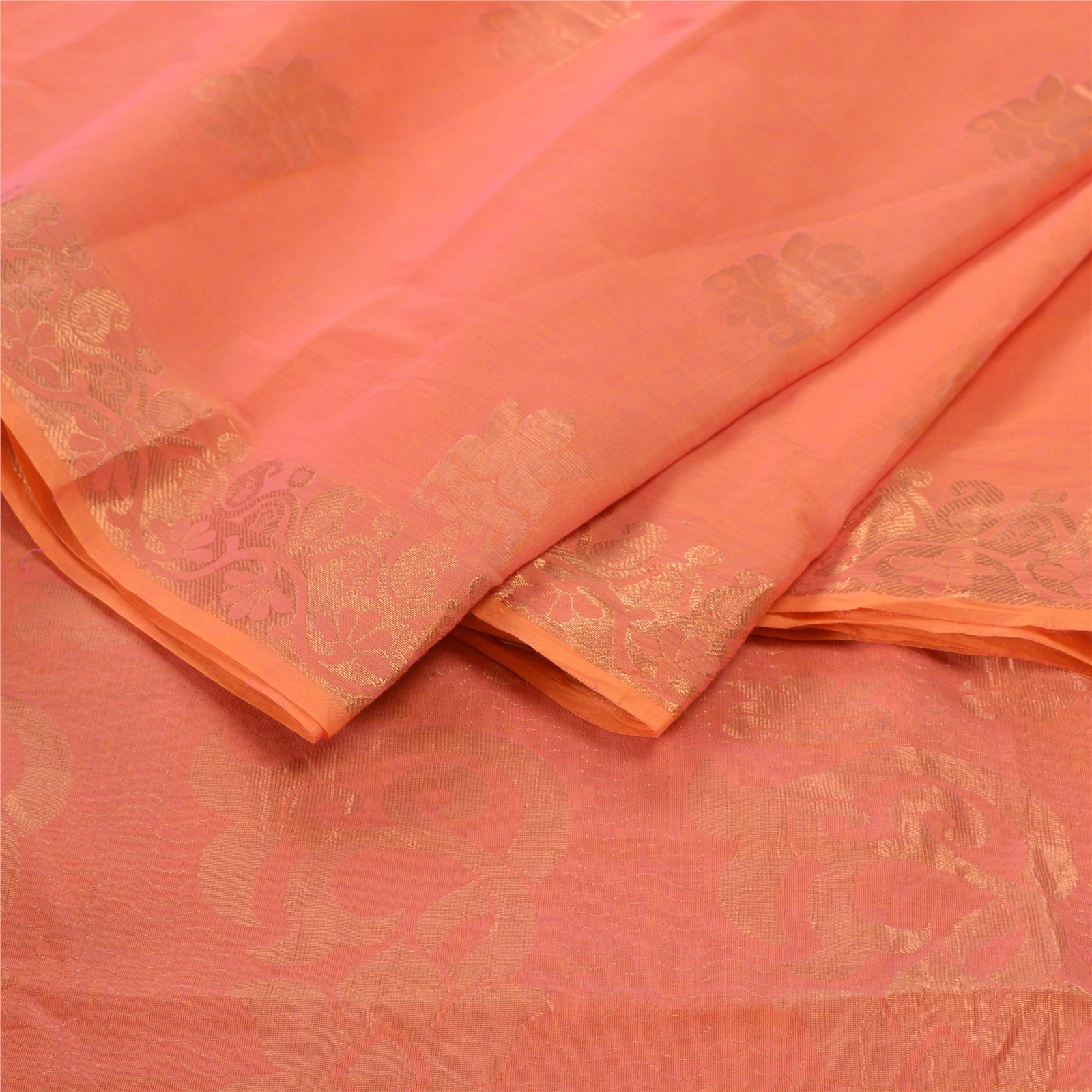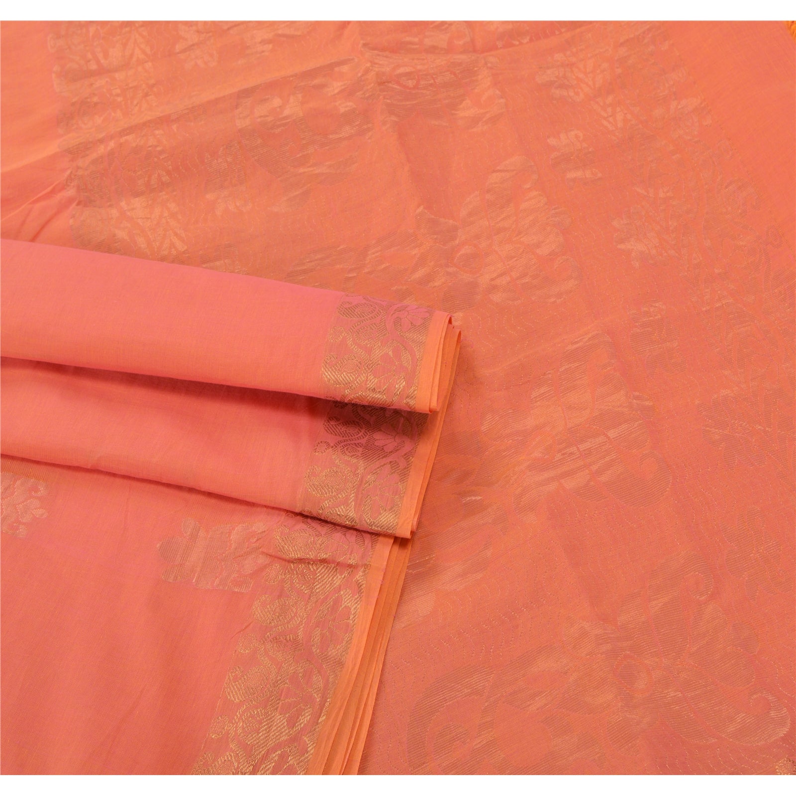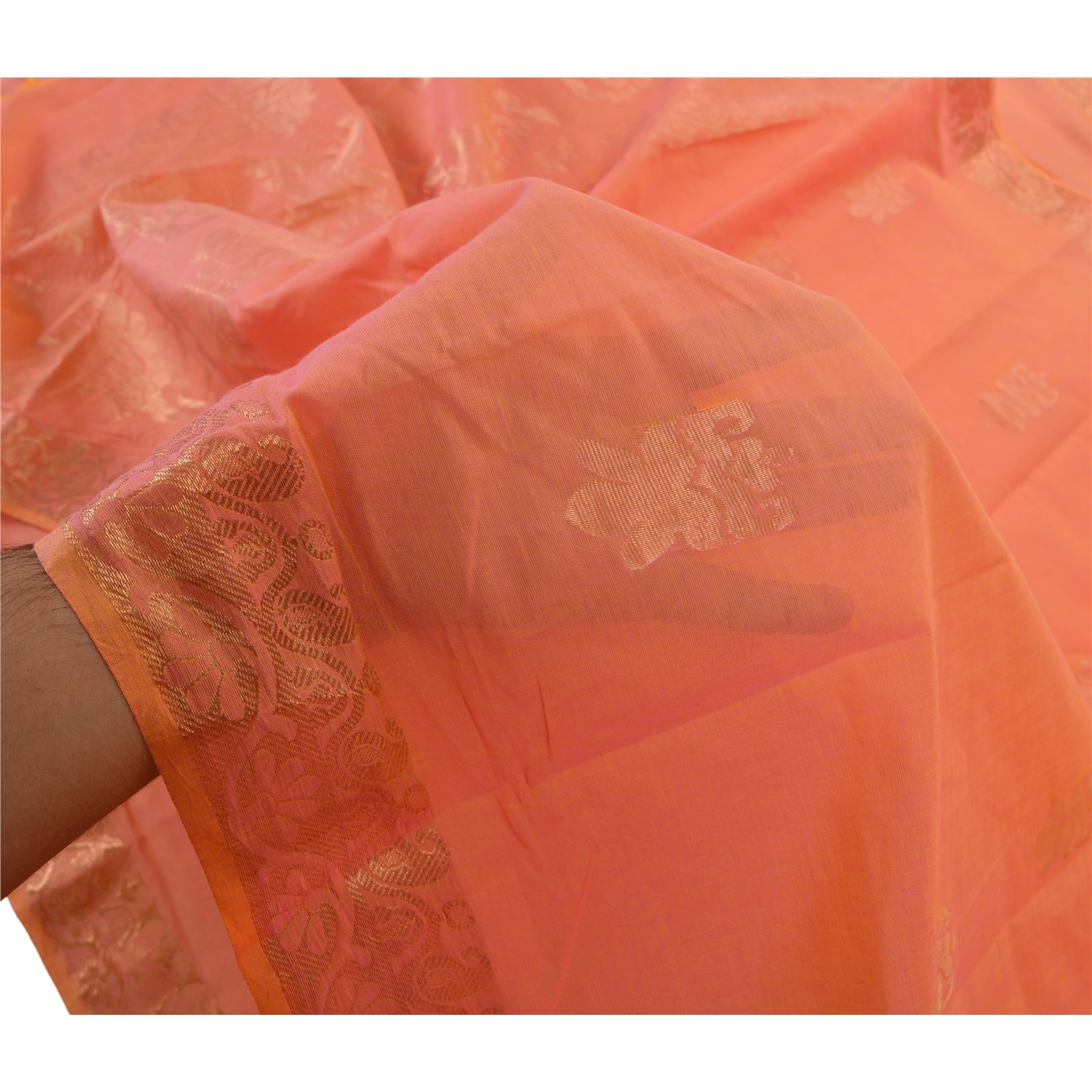 Sanskriti Vintage Peach Heavy Indian Sari Blend Silk Woven Sustainable Fabric Craft Sarees