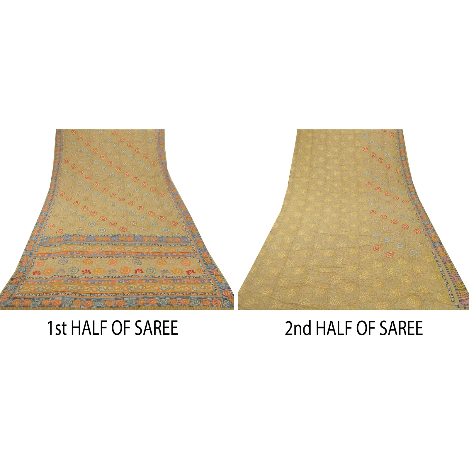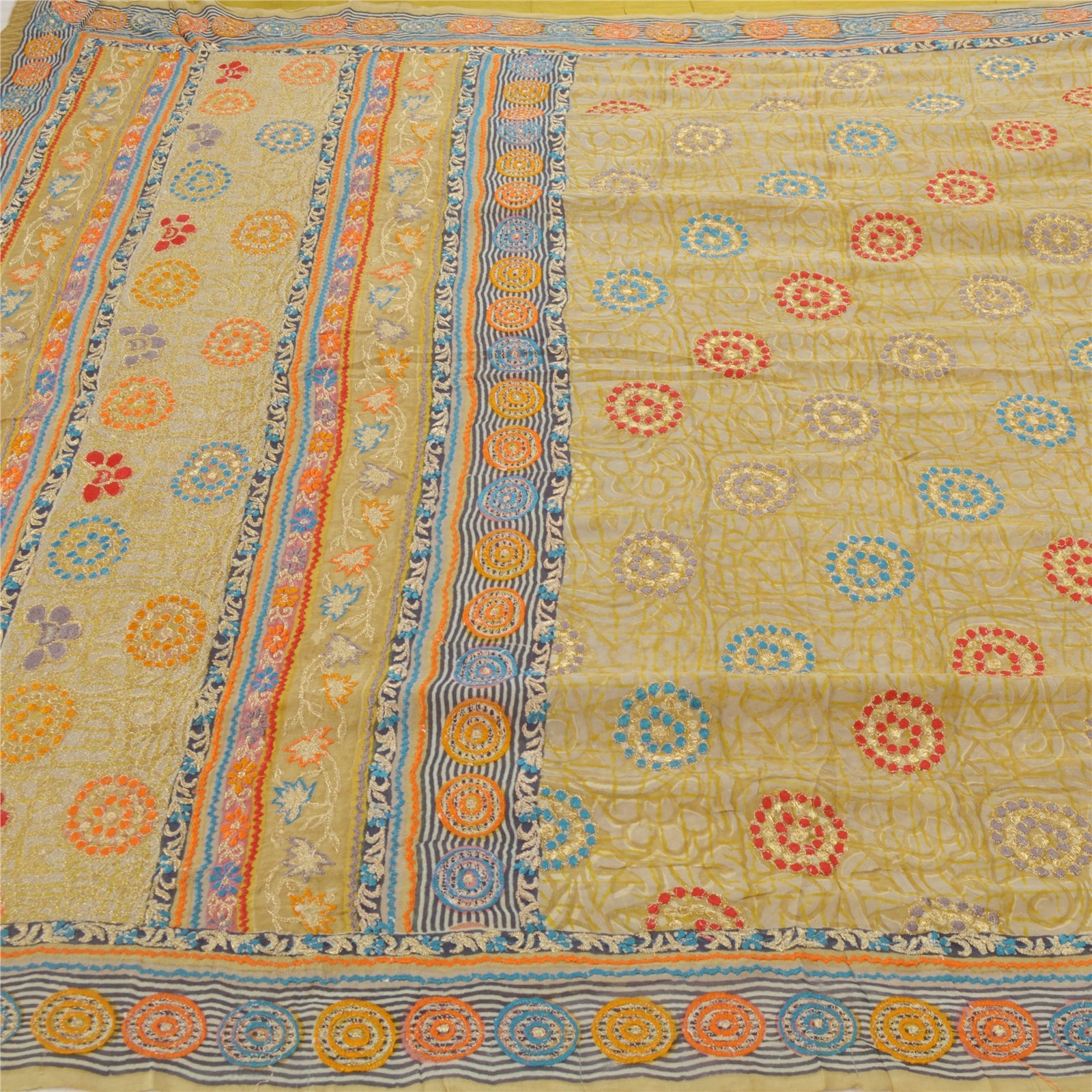 • Attractive green colored 100% pure georgette silk embroidered printed sari. • Pallu & Border features printed floral design embroidered with multi color thread work. • Similar work in center part of saree. What is special about this saree? Colorful embroidery with floral design on green color base Sustainable Fabric is really enhancing the beauty of the saree. This unique vintage saree can be used for various crafting ideas even if you don't want to use it as a sari. Design a dress, use it as a throw, as window dressing, upholstery, sarongs, table linen and much more. Let your creative juices flow and use this decorated Sustainable Fabric in multiple fashion.