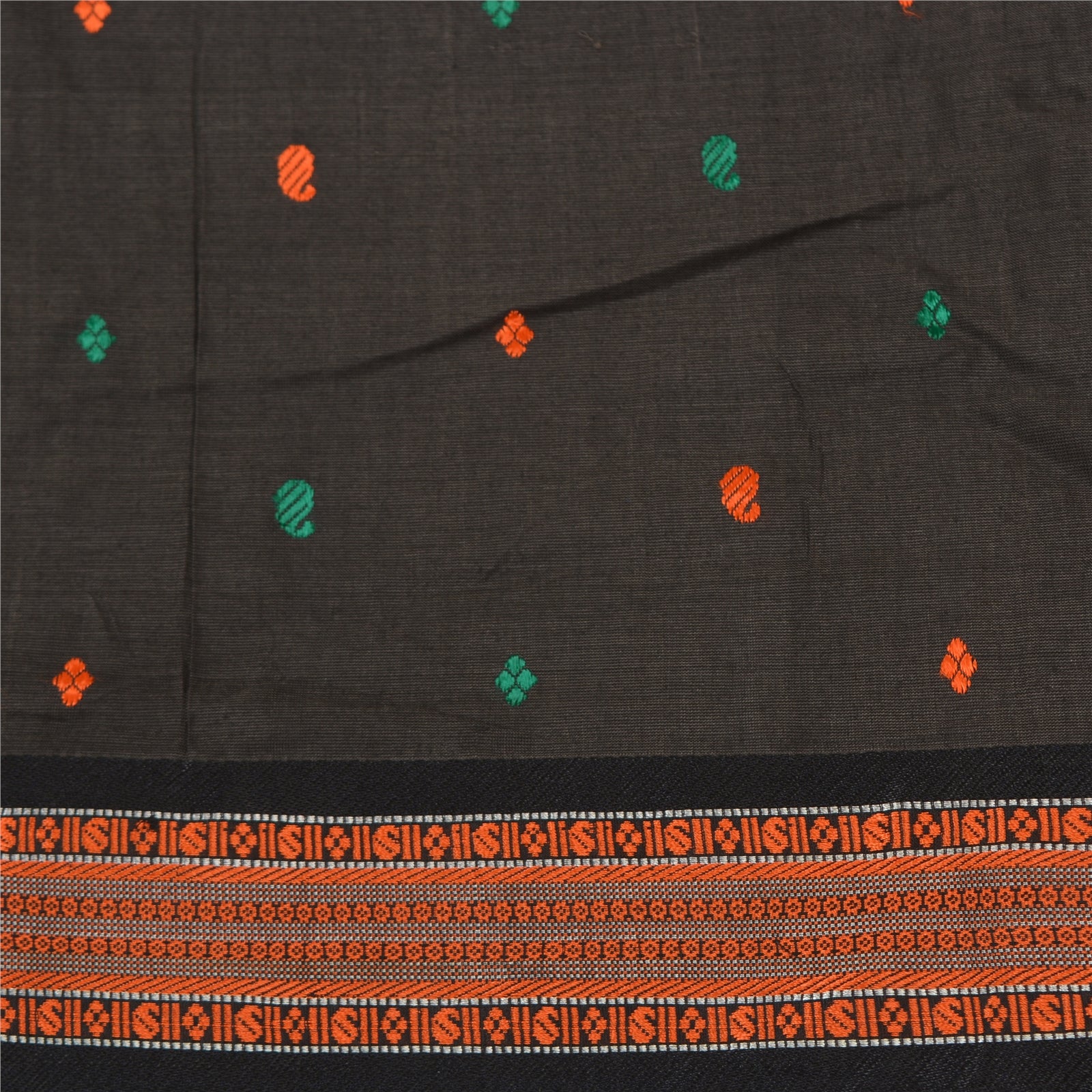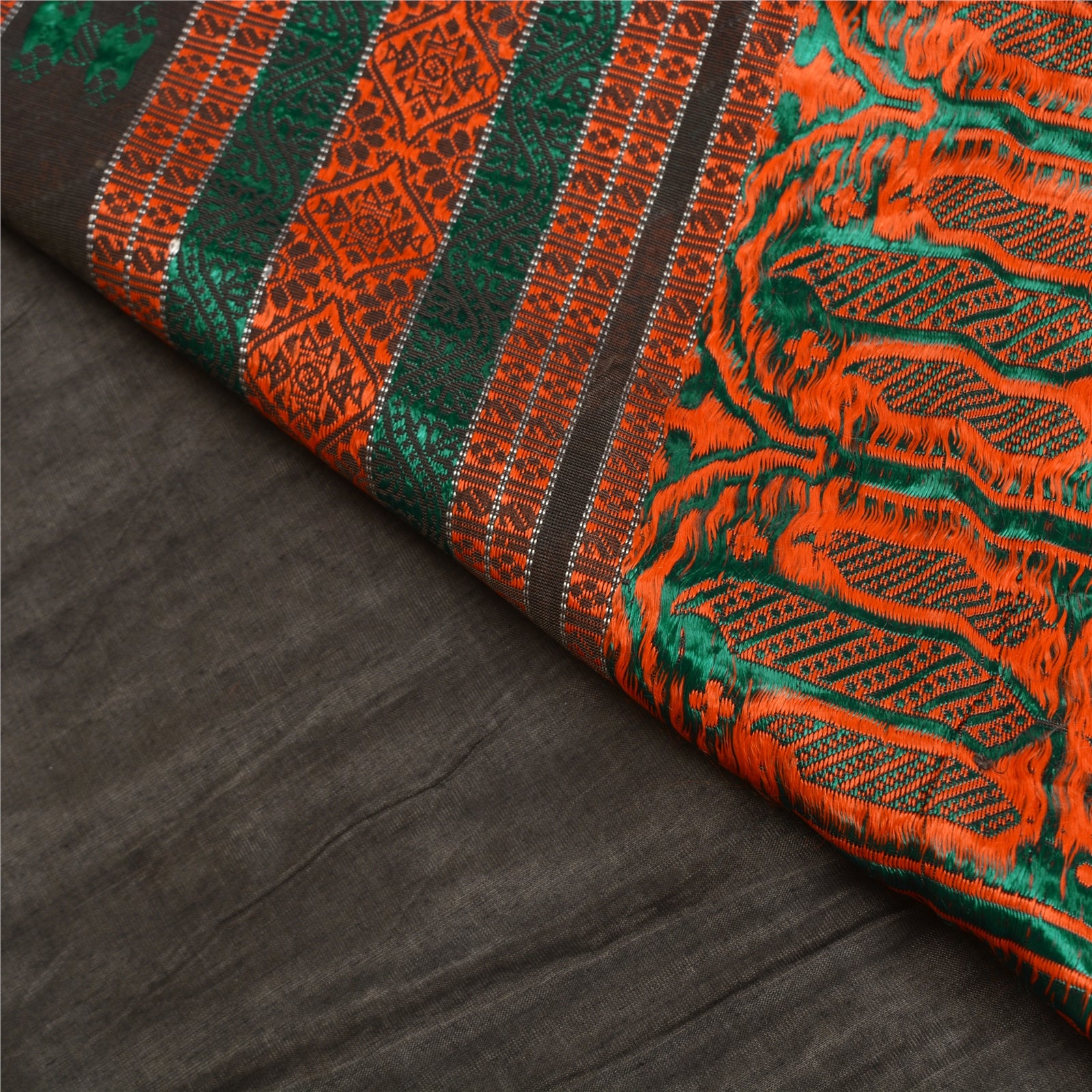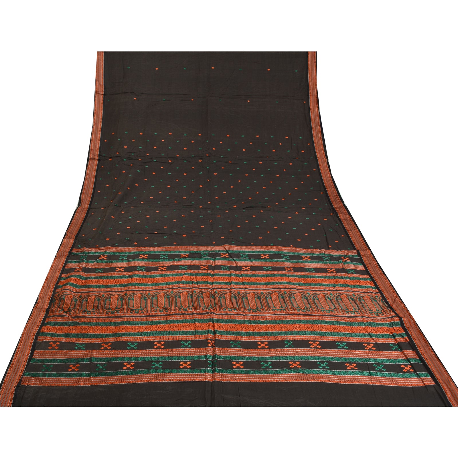 'THE ITEM COLOR OR SHADE MAY BE DARKER OR LIGHTER THAN THE PICTURE.' Beautiful black colored cotton silk woven sari/Sustainable Fabric. Pallu & border has floral & paisley design with green/orange woven thread design. The center of the saree has woven floral & paisley design. This saree can be used for various crafting ideas too. Use it for dress designing, as a throw, as window dressing, upholstery, table linen and much more. Let your creative juices flow. 'International buyers please note: Import duties, taxes, and charges are not included in the item price or postage cost. These charges are the buyer's responsibility. Please check with your country's customs office to determine what these additional costs will be prior to bidding or buying. Buyer will pay custom duty/tax. It is calculated and charged differently by every country. As a seller I do not have any control over it. VAT or sales tax is calculated by the platform at the time of checkout. Customs charge is payable at the time of delivery.'
