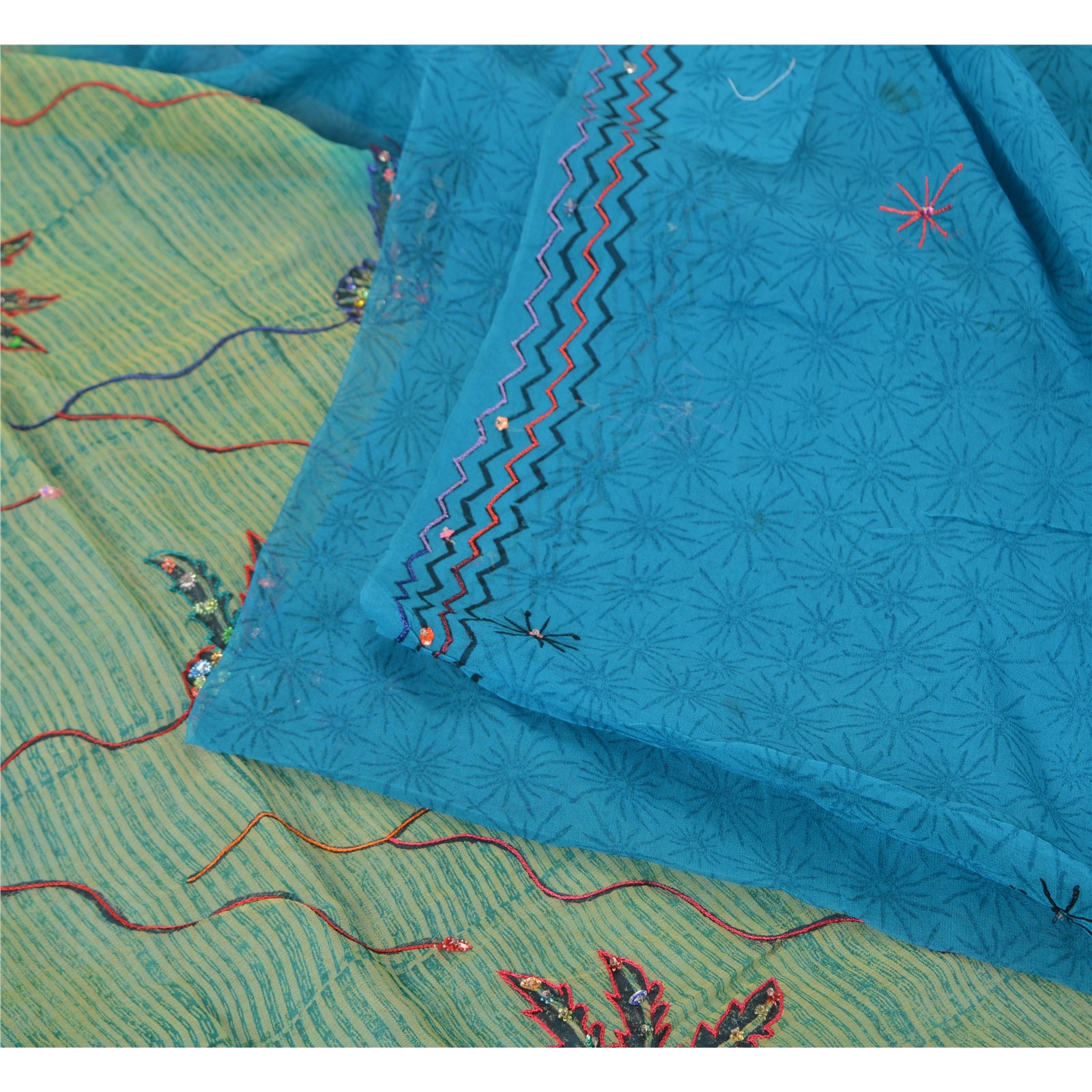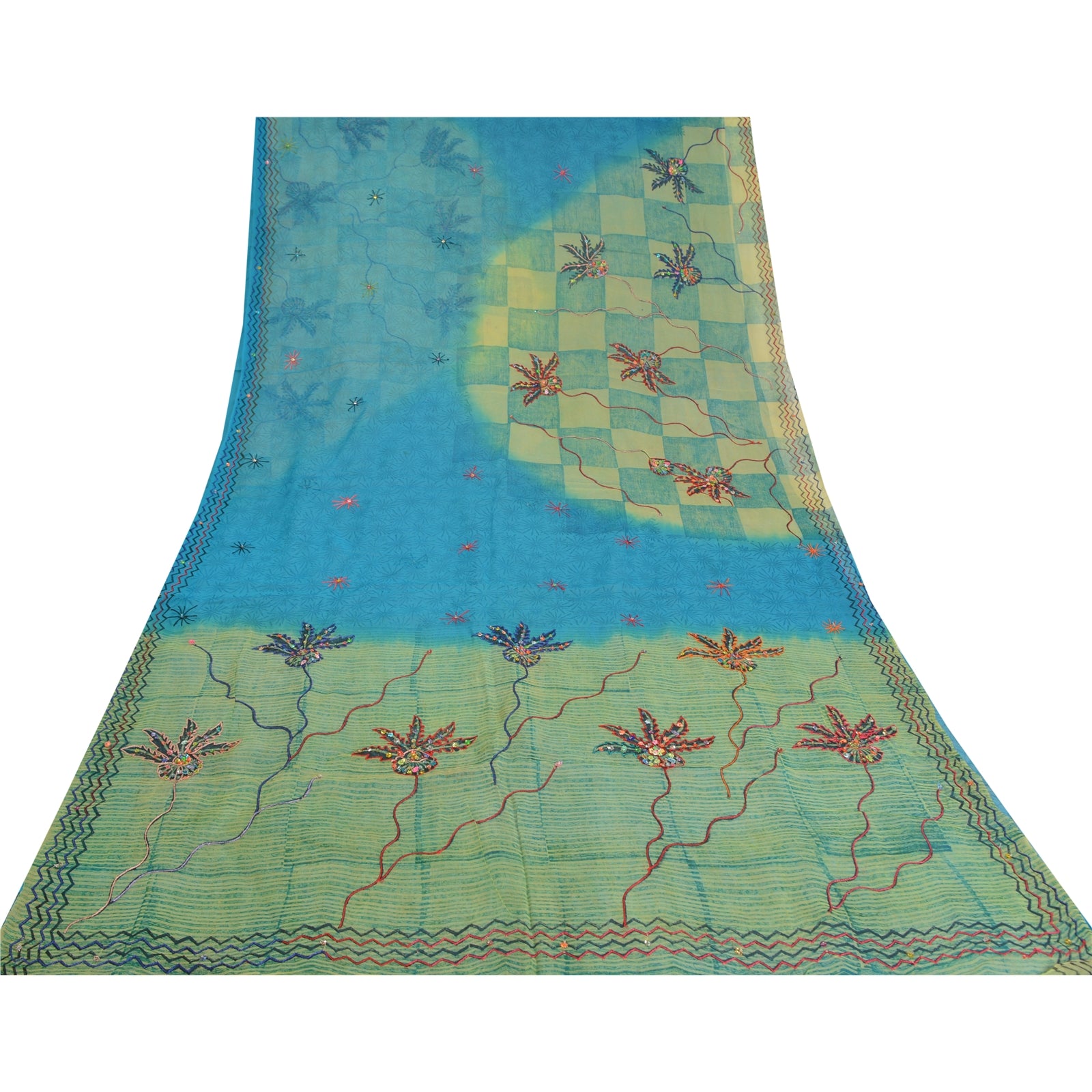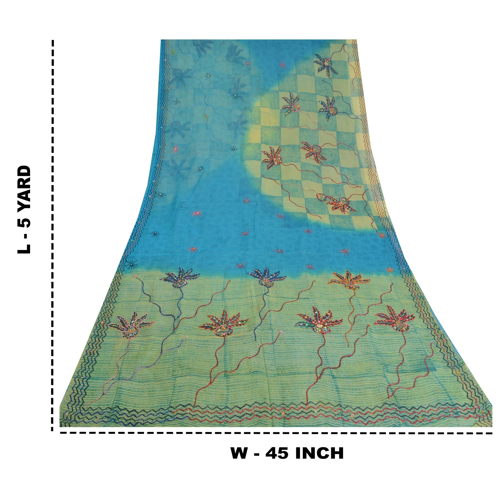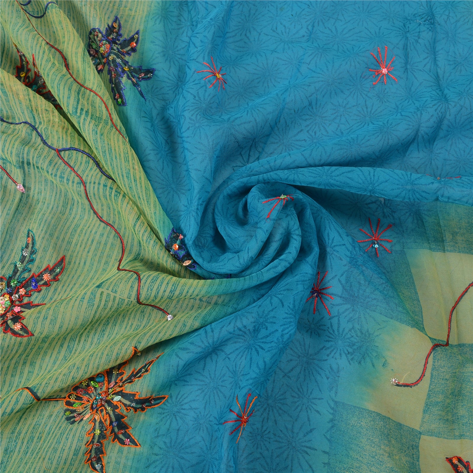 'THE ITEM COLOR OR SHADE MAY BE DARKER OR LIGHTER THAN THE PICTURE.' Beautiful blue & green colored pure georgette sari/Sustainable Fabric. Pallu & border features printed floral, zig- zag & abstract design with thread, multi color designing sequins, white glass beads work. The center of the saree has similar printed floral design with thread & sequins work. This saree can be used for various crafting ideas too. Use it for dress designing, as a throw, as window dressing, upholstery, table linen and much more. Let your creative juices flow. 'International buyers please note: Import duties, taxes, and charges are not included in the item price or postage cost. These charges are the buyer's responsibility. Please check with your country's customs office to determine what these additional costs will be prior to bidding or buying. Buyer will pay custom duty/tax. It is calculated and charged differently by every country. As a seller I do not have any control over it. VAT or sales tax is calculated by the platform at the time of checkout. Customs charge is payable at the time of delivery.'