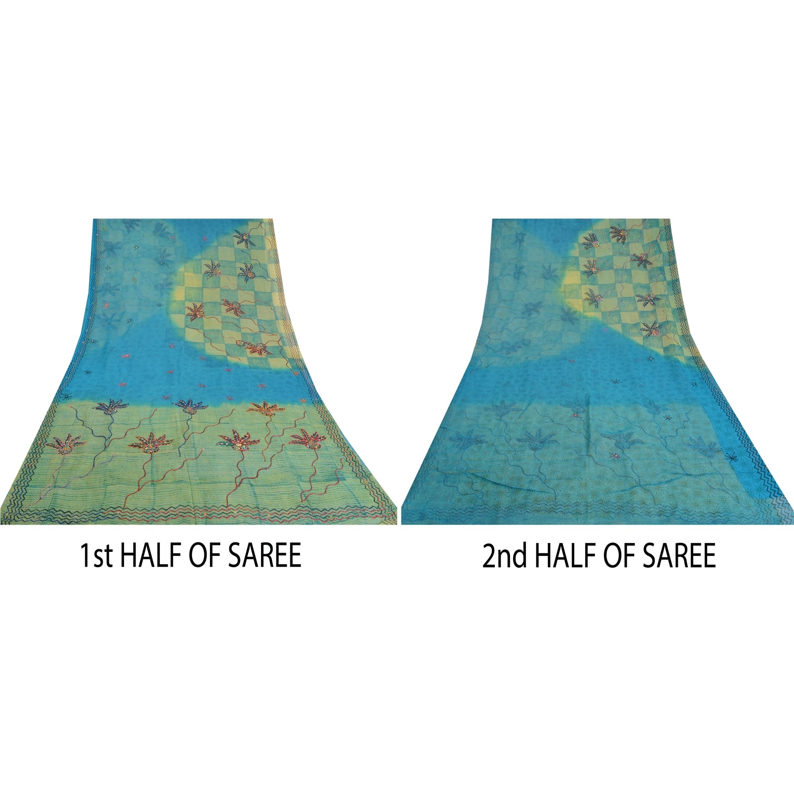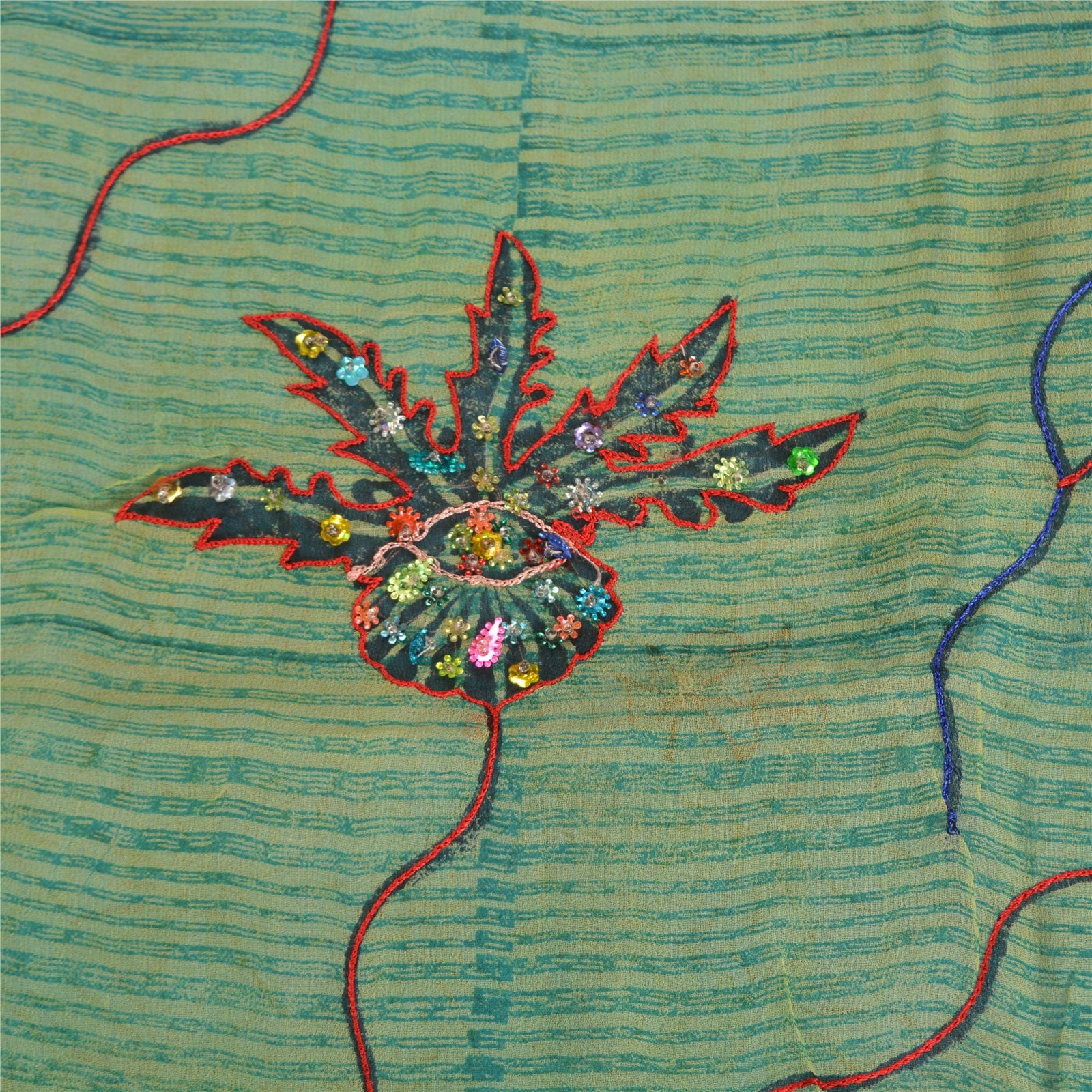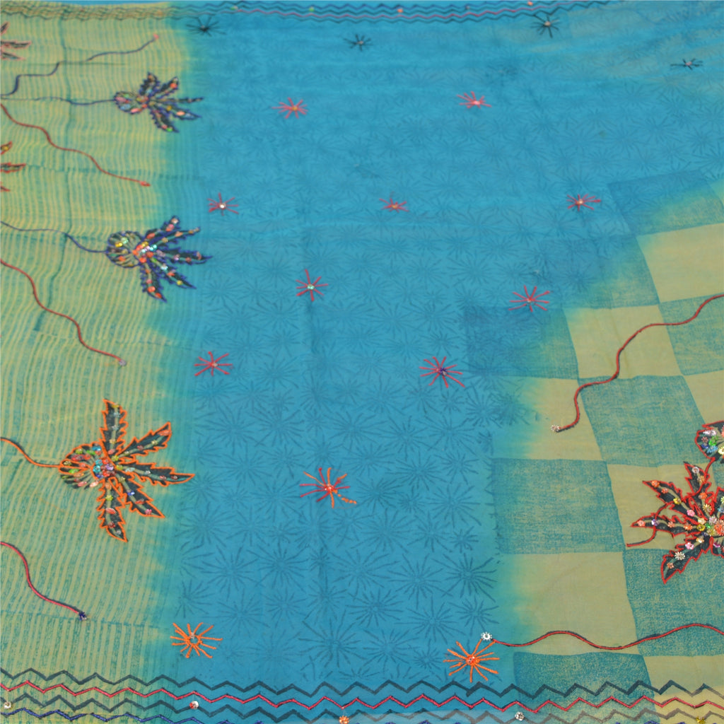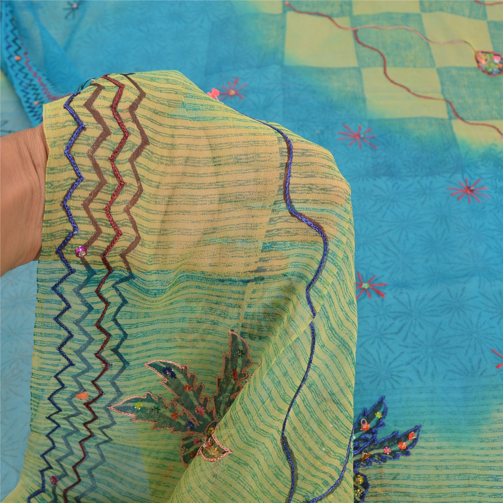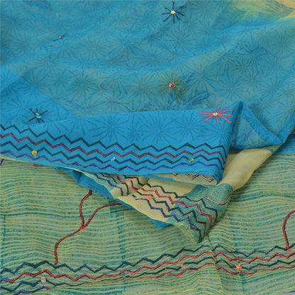 'THE ITEM COLOR OR SHADE MAY BE DARKER OR LIGHTER THAN THE PICTURE.' Beautiful blue & green colored pure georgette sari/Sustainable Fabric. Pallu & border features printed floral, zig- zag & abstract design with thread, multi color designing sequins, white glass beads work. The center of the saree has similar printed floral design with thread & sequins work. This saree can be used for various crafting ideas too. Use it for dress designing, as a throw, as window dressing, upholstery, table linen and much more. Let your creative juices flow. 'International buyers please note: Import duties, taxes, and charges are not included in the item price or postage cost. These charges are the buyer's responsibility. Please check with your country's customs office to determine what these additional costs will be prior to bidding or buying. Buyer will pay custom duty/tax. It is calculated and charged differently by every country. As a seller I do not have any control over it. VAT or sales tax is calculated by the platform at the time of checkout. Customs charge is payable at the time of delivery.'