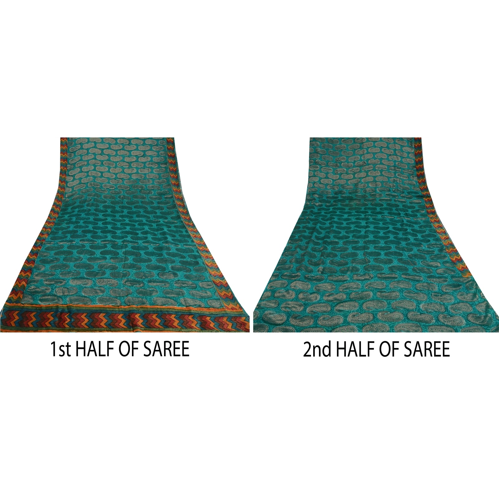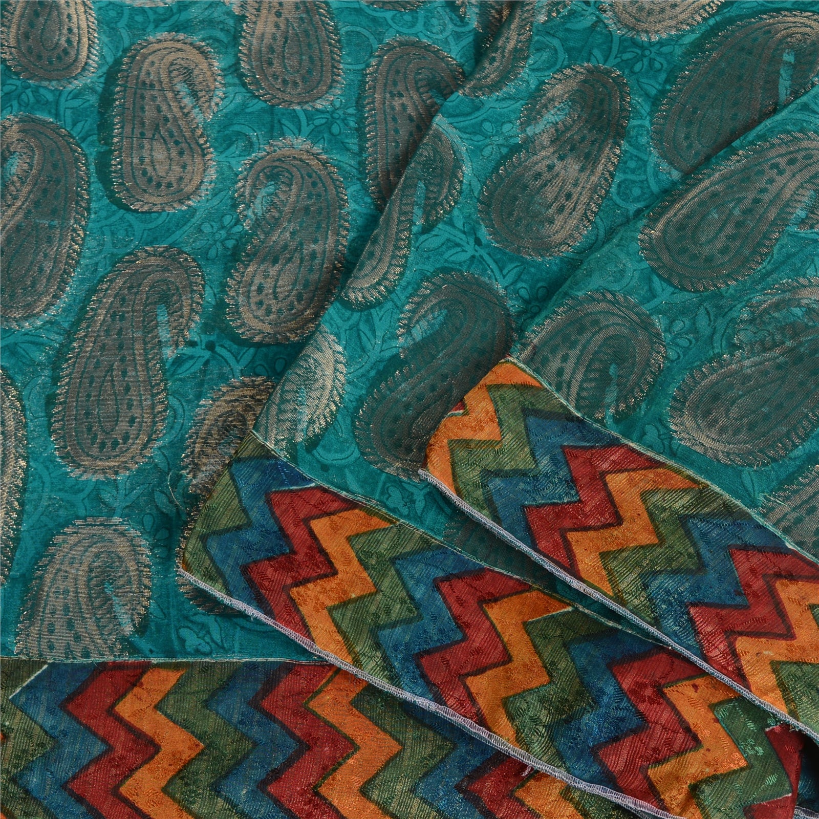 'THE ITEM COLOR OR SHADE MAY BE DARKER OR LIGHTER THAN THE PICTURE.' Beautiful shade of blue colored blend georgette woven sari. Border has woven Sustainable Fabric patch work with zig- zag printed & woven work. The center of the saree has golden woven work with amazing paisley design. This saree can be used for various crafting ideas too. Use it for dress designing, as a throw, as window dressing, upholstery, table linen and much more. Let your creative juices flow. 'International buyers please note: Import duties, taxes, and charges are not included in the item price or postage cost. These charges are the buyer's responsibility. Please check with your country's customs office to determine what these additional costs will be prior to bidding or buying. Buyer will pay custom duty/tax. It is calculated and charged differently by every country. As a seller I do not have any control over it. VAT or sales tax is calculated by the platform at the time of checkout. Customs charge is payable at the time of delivery.'