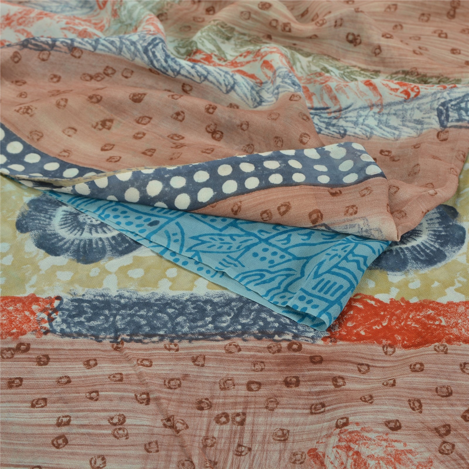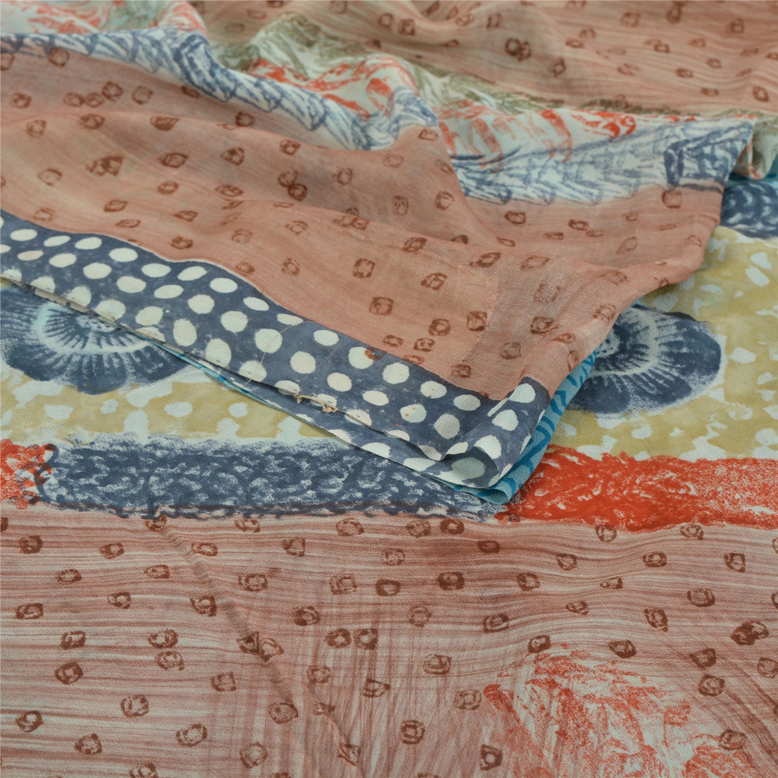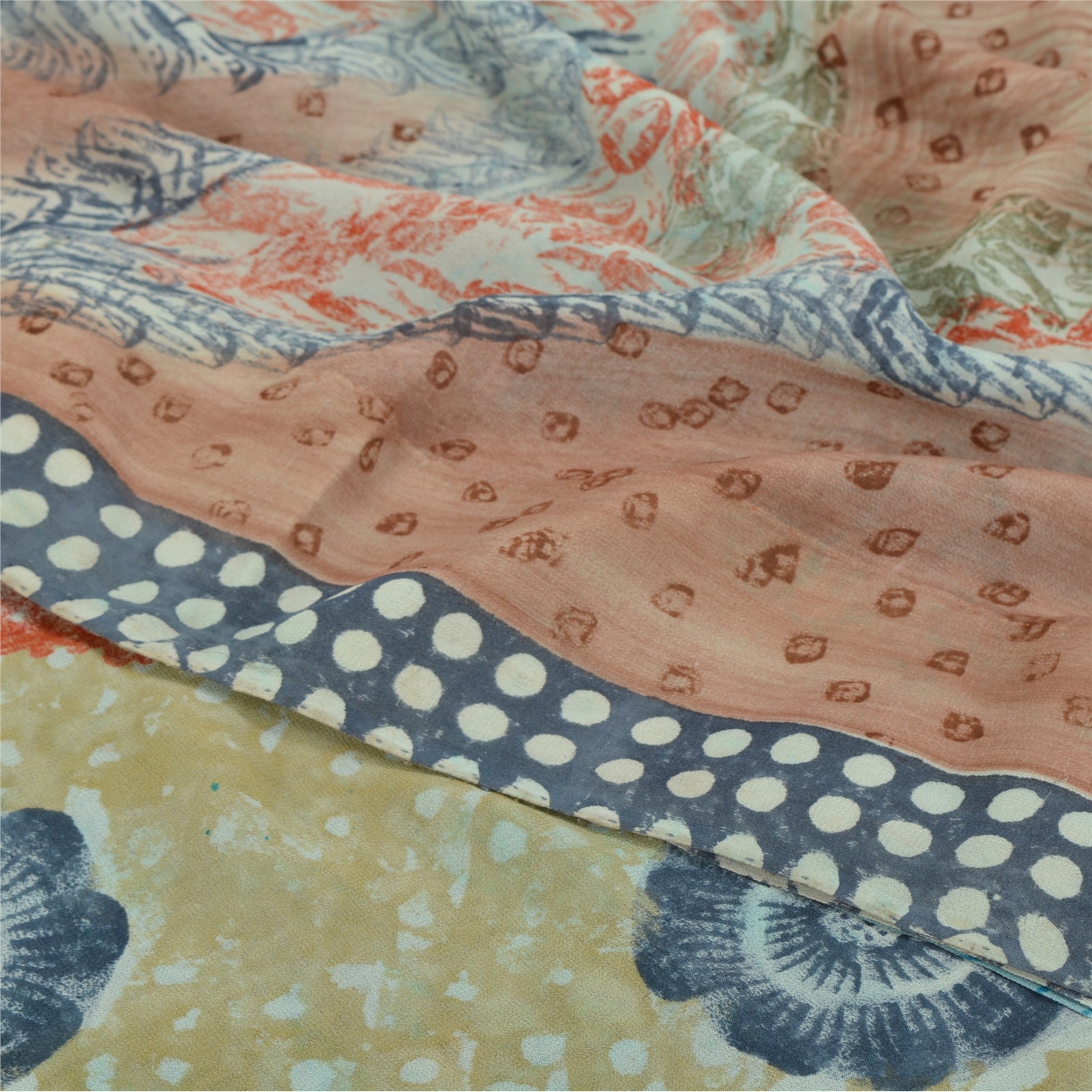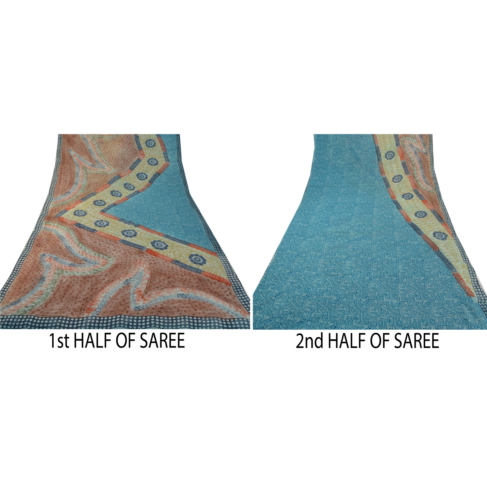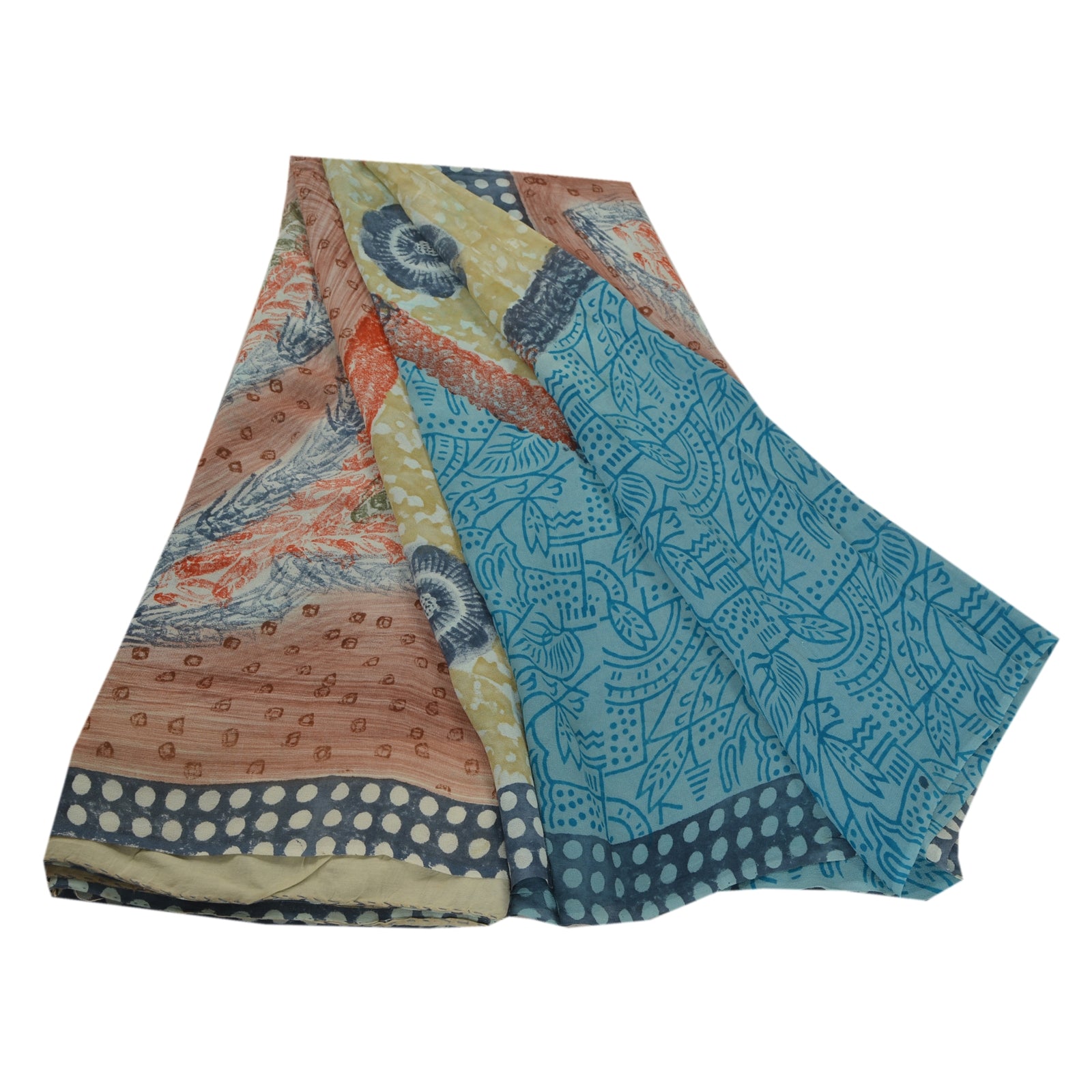 Sanskriti Vintage Blue Sarees Pure Georgette Silk Printed Sari Craft Sustainable Fabric