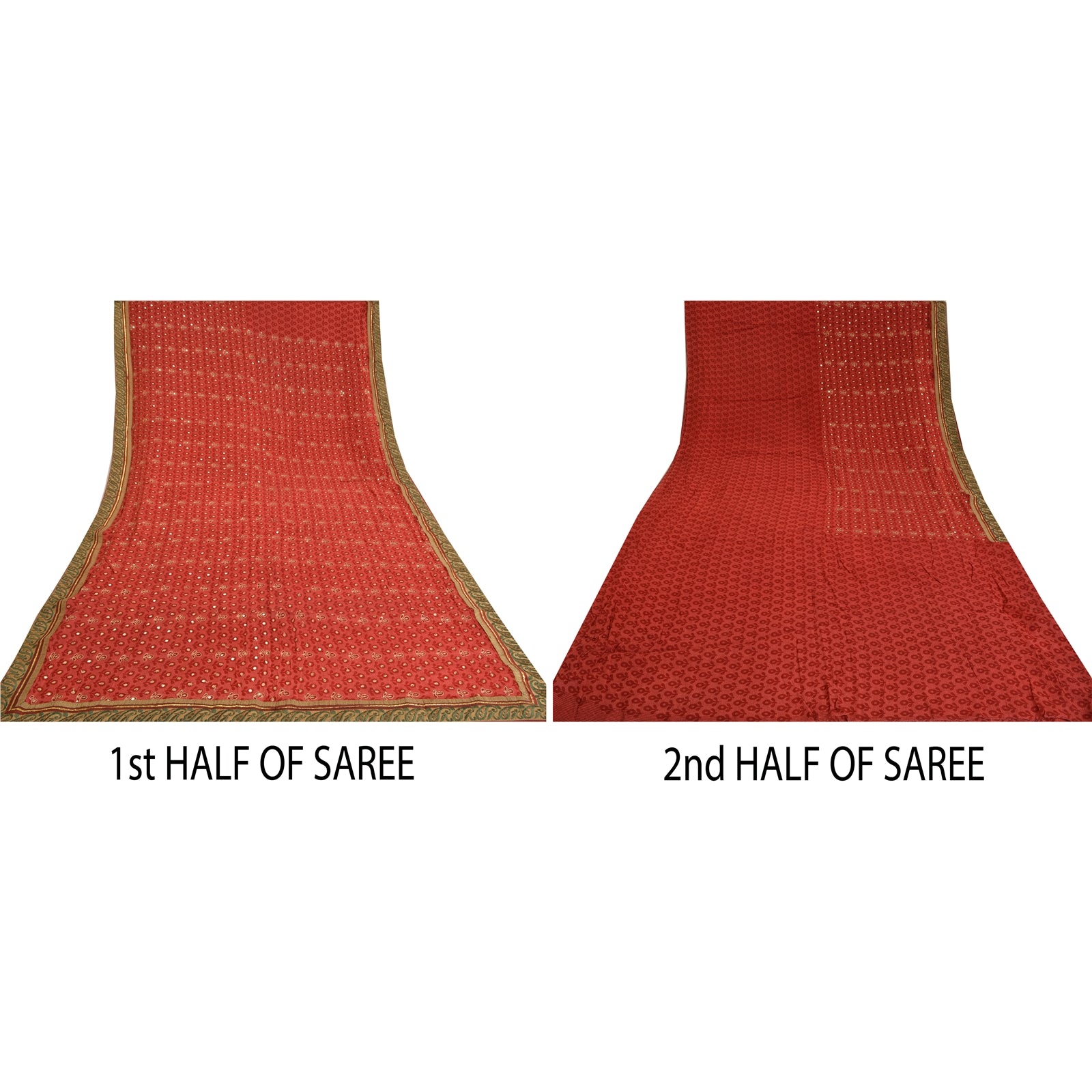 Sanskriti Vintage Bollywood Sarees Pure Georgette Silk Hand Beaded Sari Sustainable Fabric