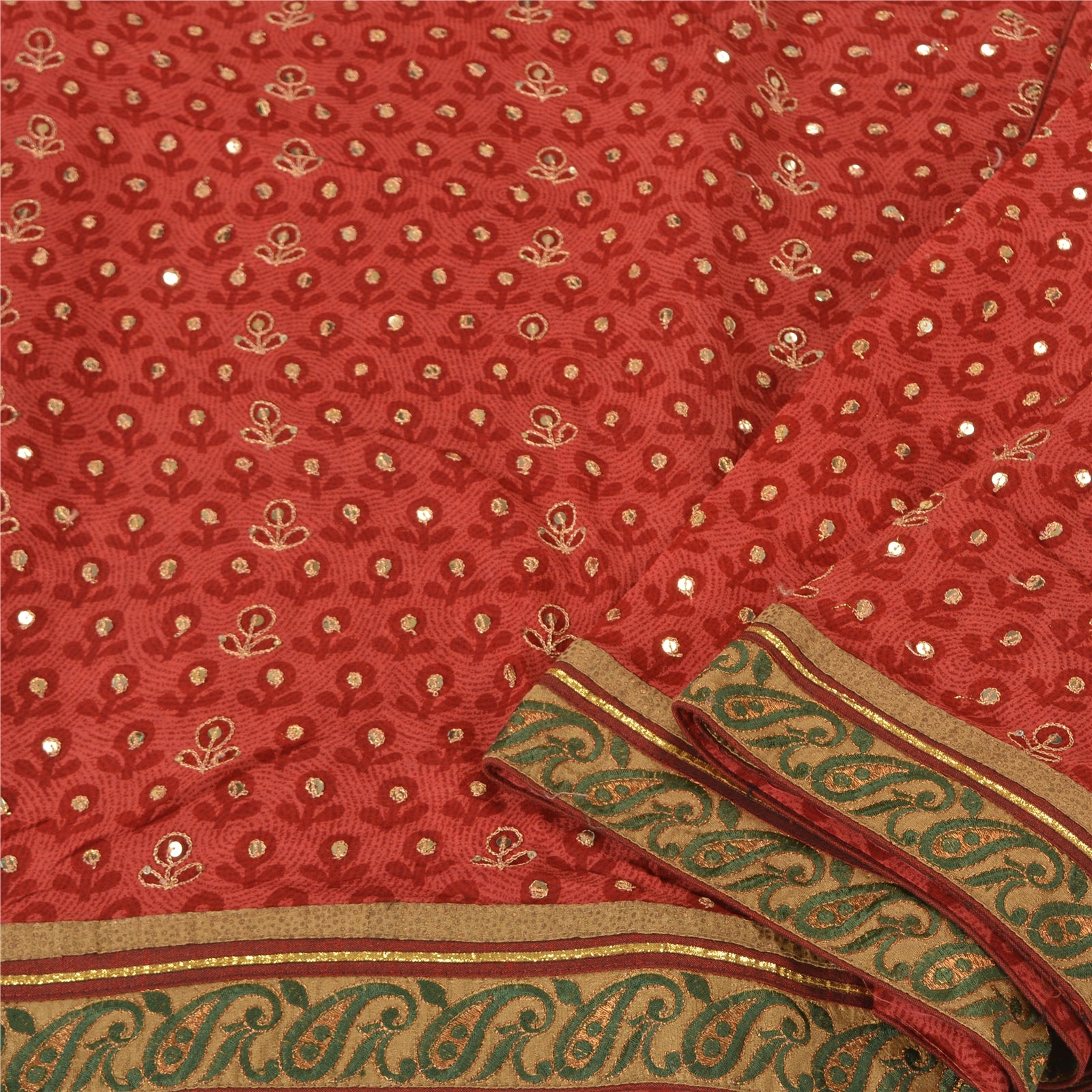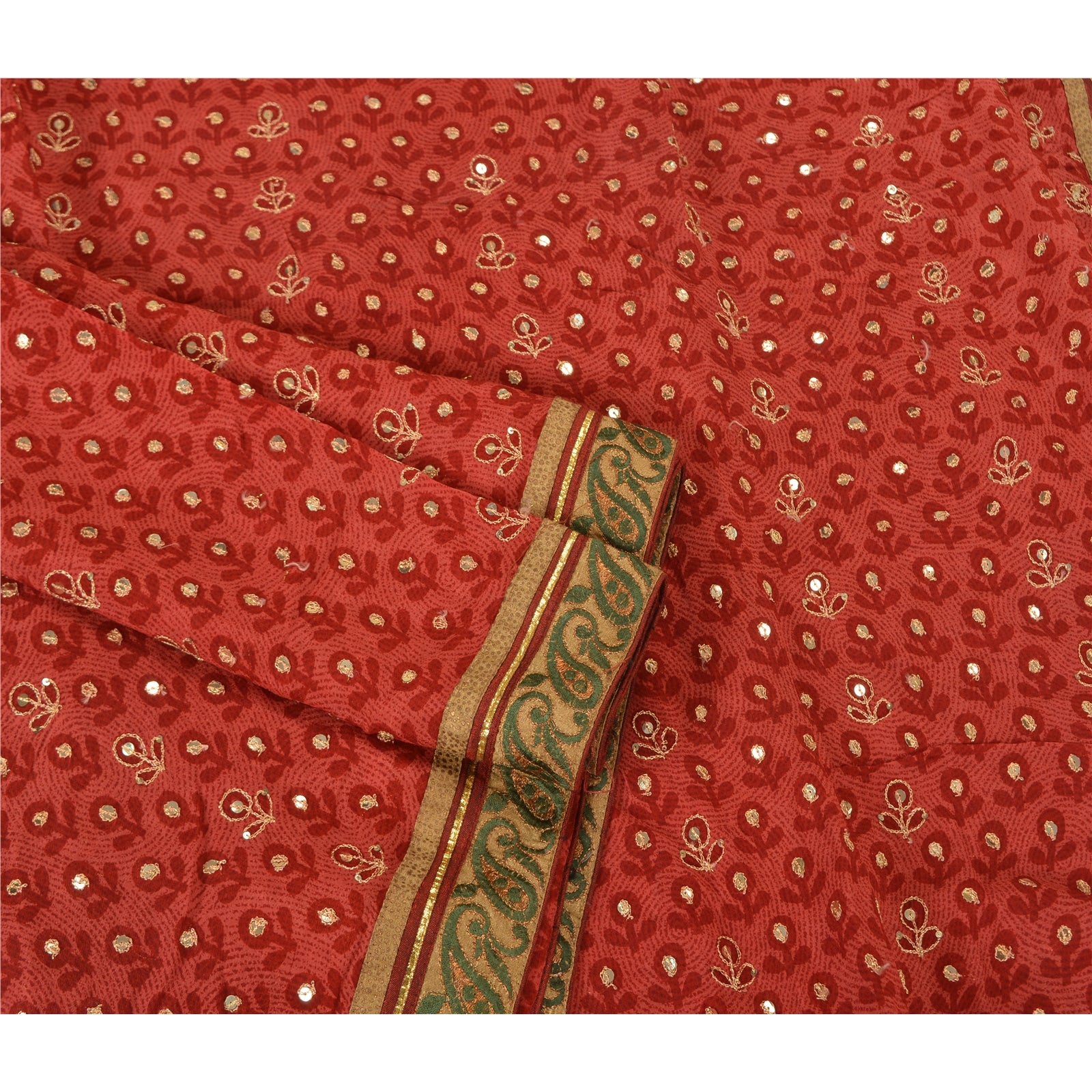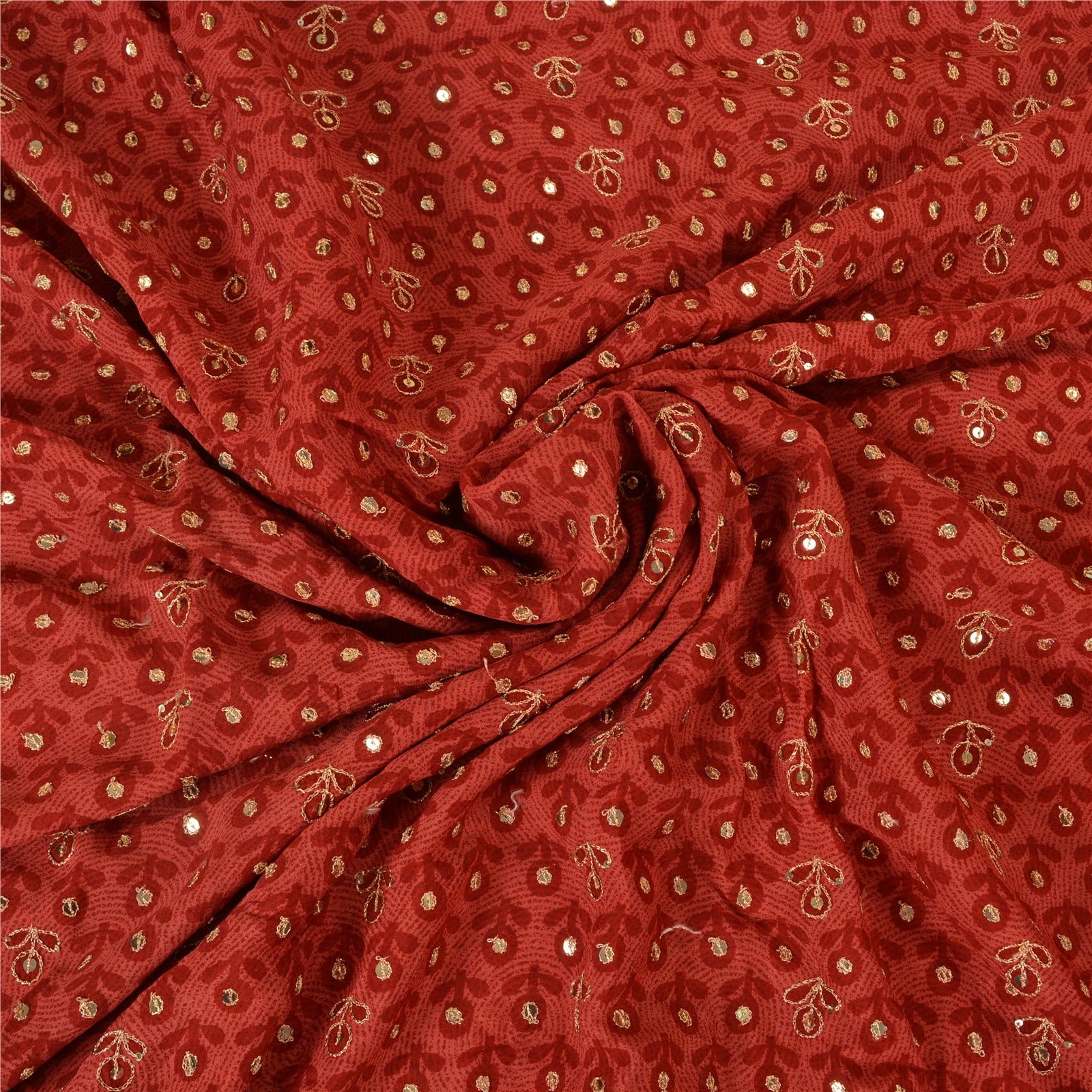 'THE ITEM COLOR OR SHADE MAY BE DARKER OR LIGHTER THAN THE PICTURE.' Beautiful dark red colored pure georgette silk hand embroidered printed sari. Border has embroidered Sustainable Fabric patch work with paisley design. The center of the saree has printed floral design with golden thread & sequins work. This saree can be used for various crafting ideas too. Use it for dress designing, as a throw, as window dressing, upholstery, table linen and much more. Let your creative juices flow. 'International buyers please note: Import duties, taxes, and charges are not included in the item price or postage cost. These charges are the buyer's responsibility. Please check with your country's customs office to determine what these additional costs will be prior to bidding or buying. Buyer will pay custom duty/tax. It is calculated and charged differently by every country. As a seller I do not have any control over it. VAT or sales tax is calculated by the platform at the time of checkout. Customs charge is payable at the time of delivery.'