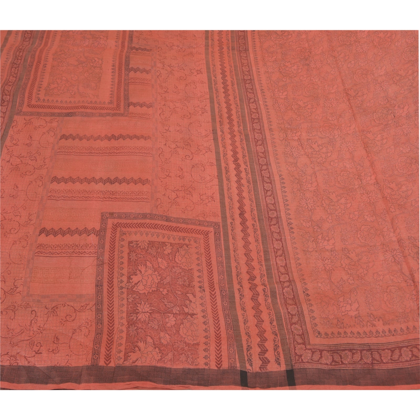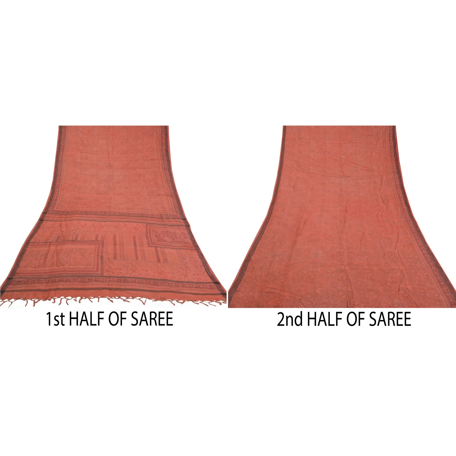 Sanskriti Vintage Brick Red Sarees Blend Cotton Printed Premium Sari Sustainable Fabric