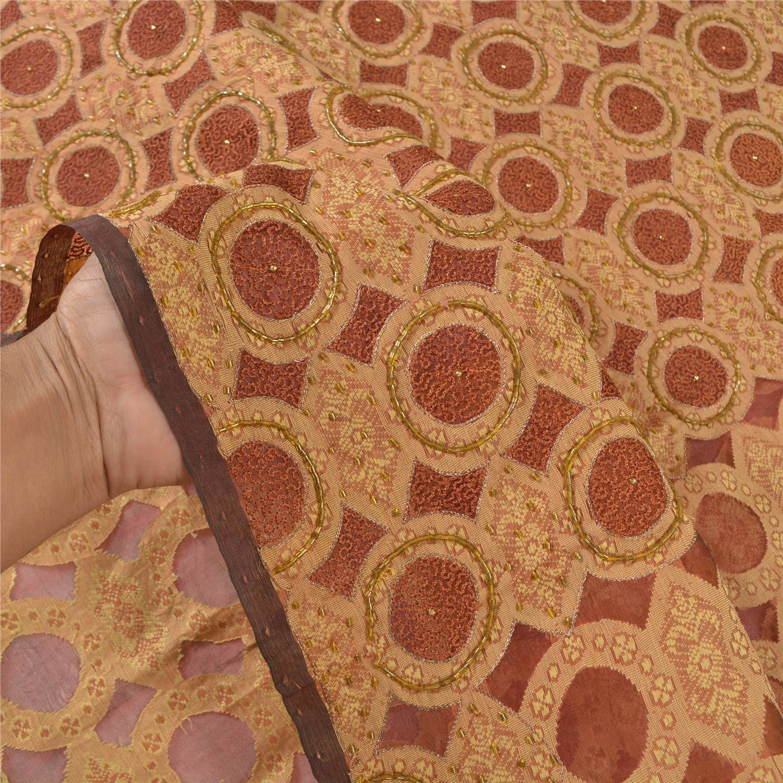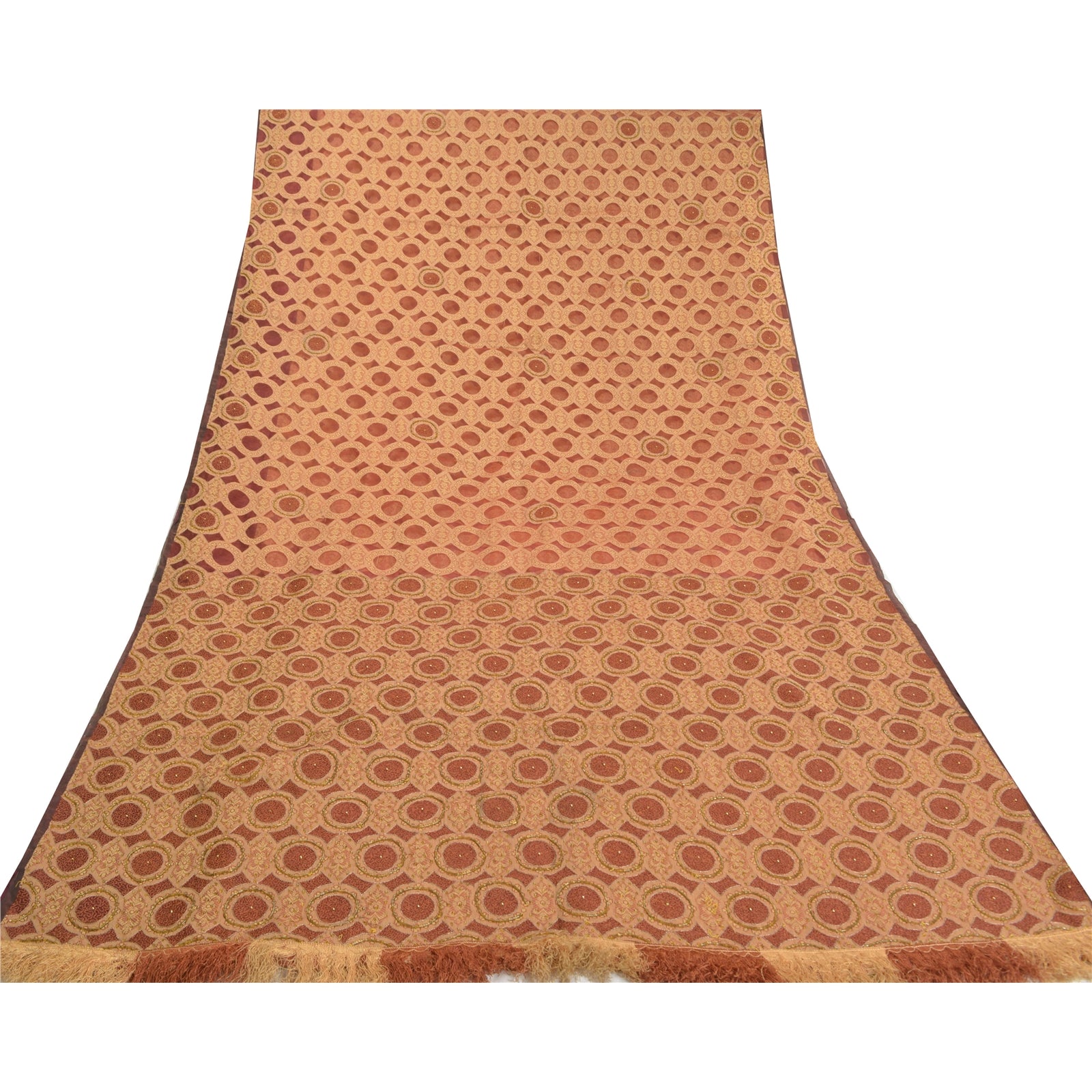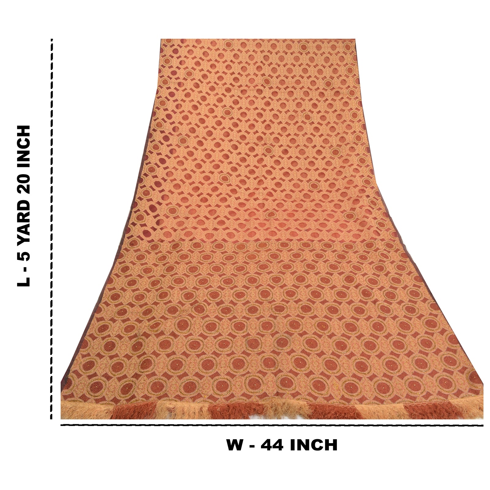 Sanskriti Vintage Brick Red Sarees Pure Organza Silk Beaded Premium Sari Sustainable Fabric