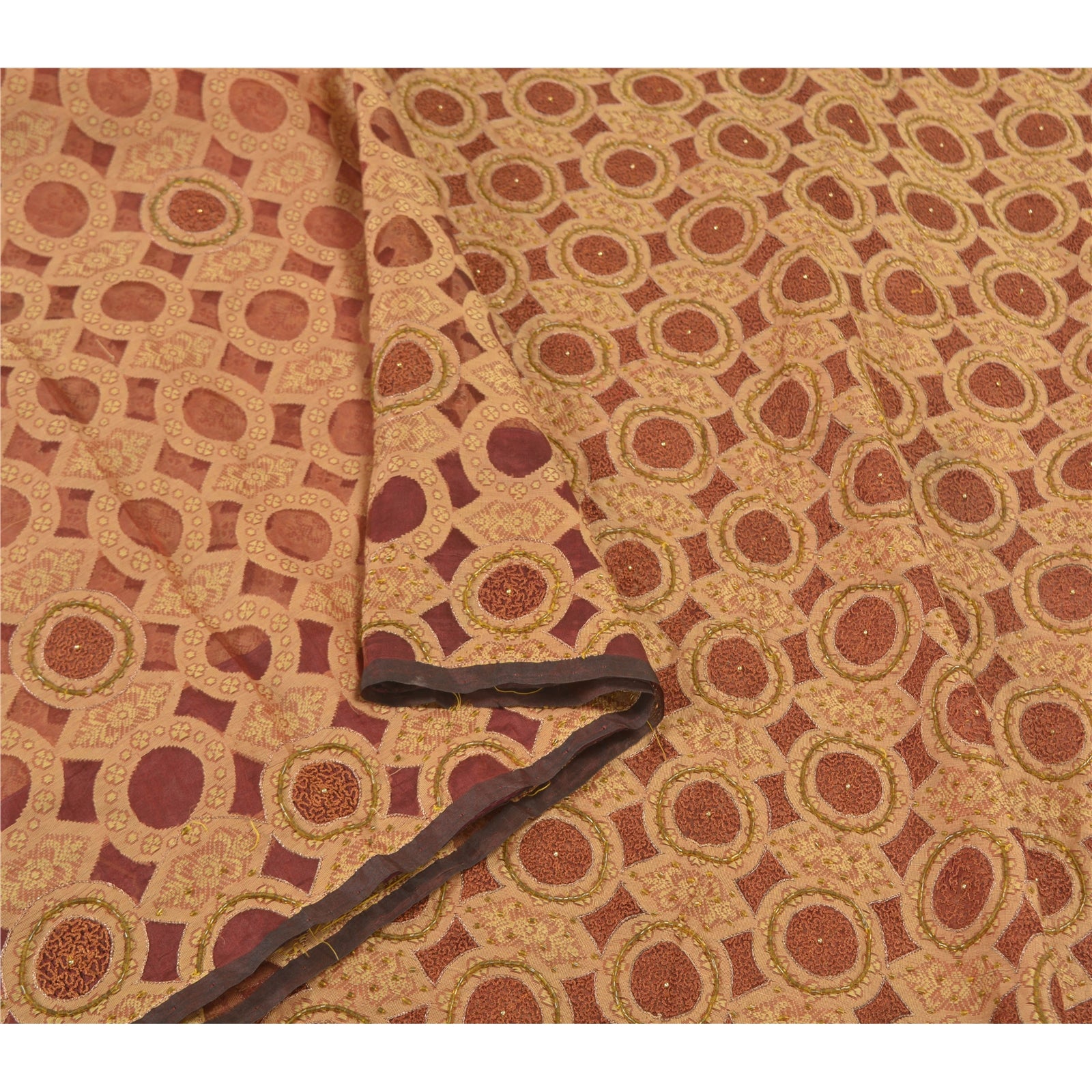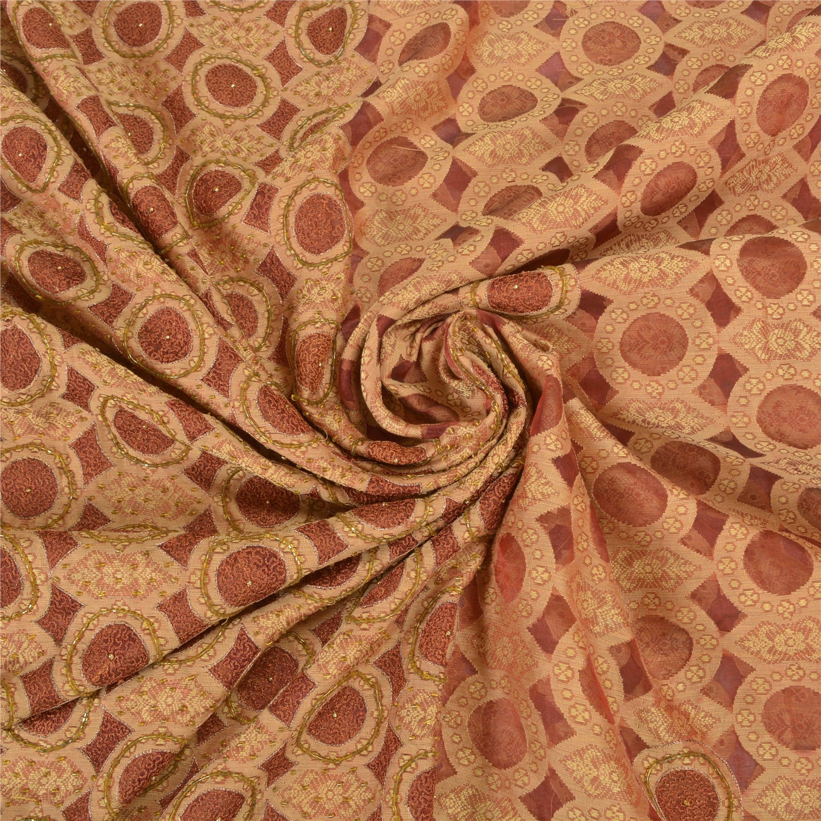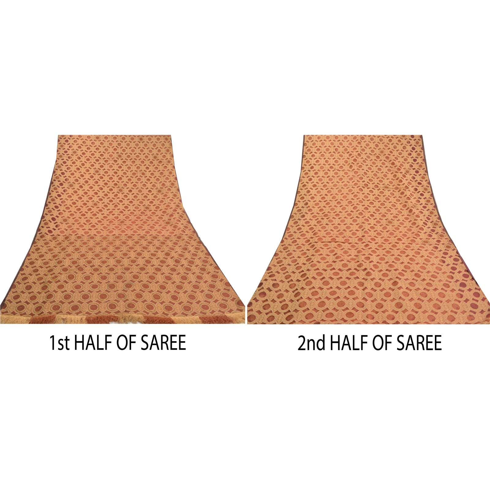 Sanskriti Vintage Brick Red Sarees Pure Organza Silk Beaded Premium Sari Sustainable Fabric