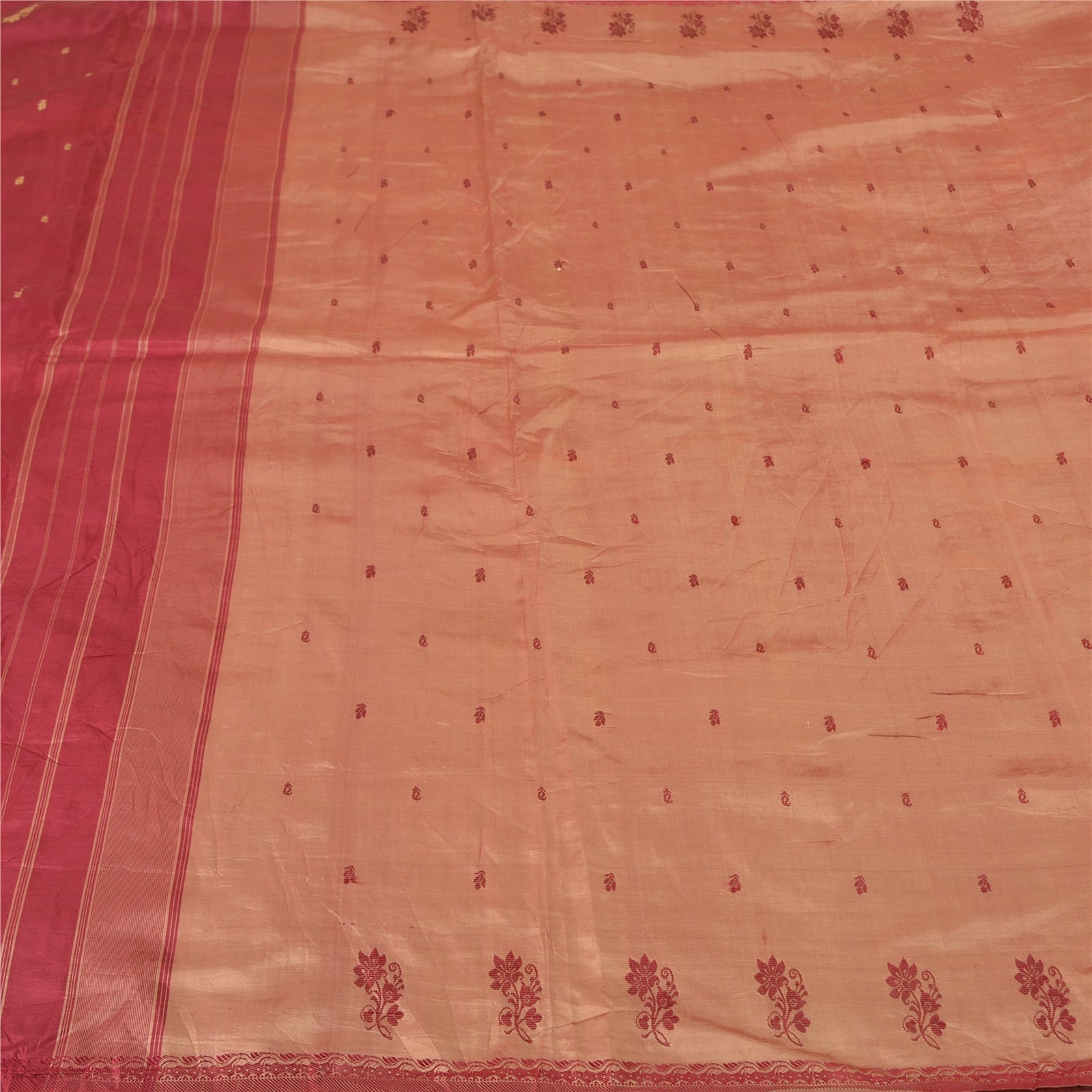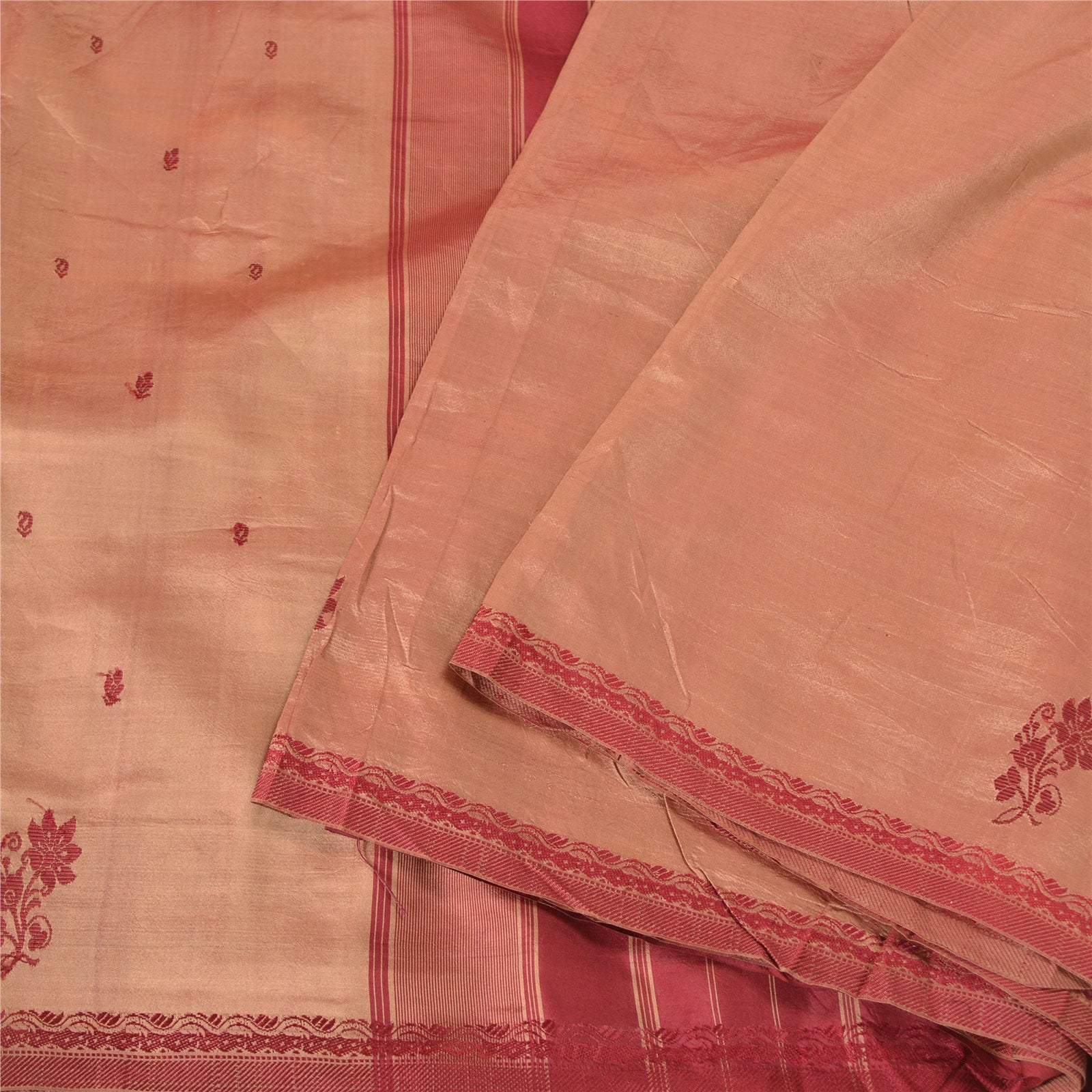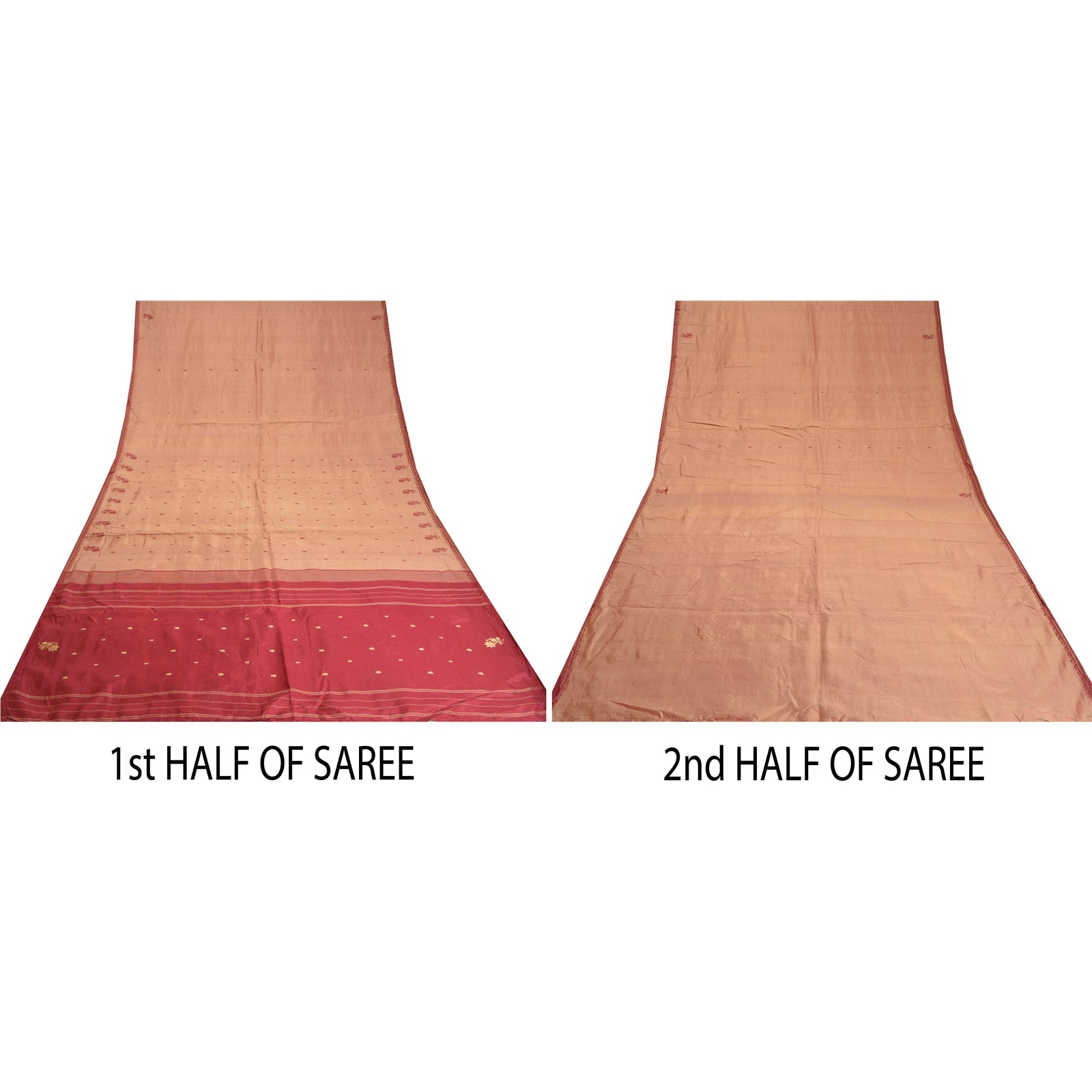 Sanskriti Vintage Brown/Dark Red Indian Sarees Pure Silk Hand-Woven Sari Sustainable Fabric