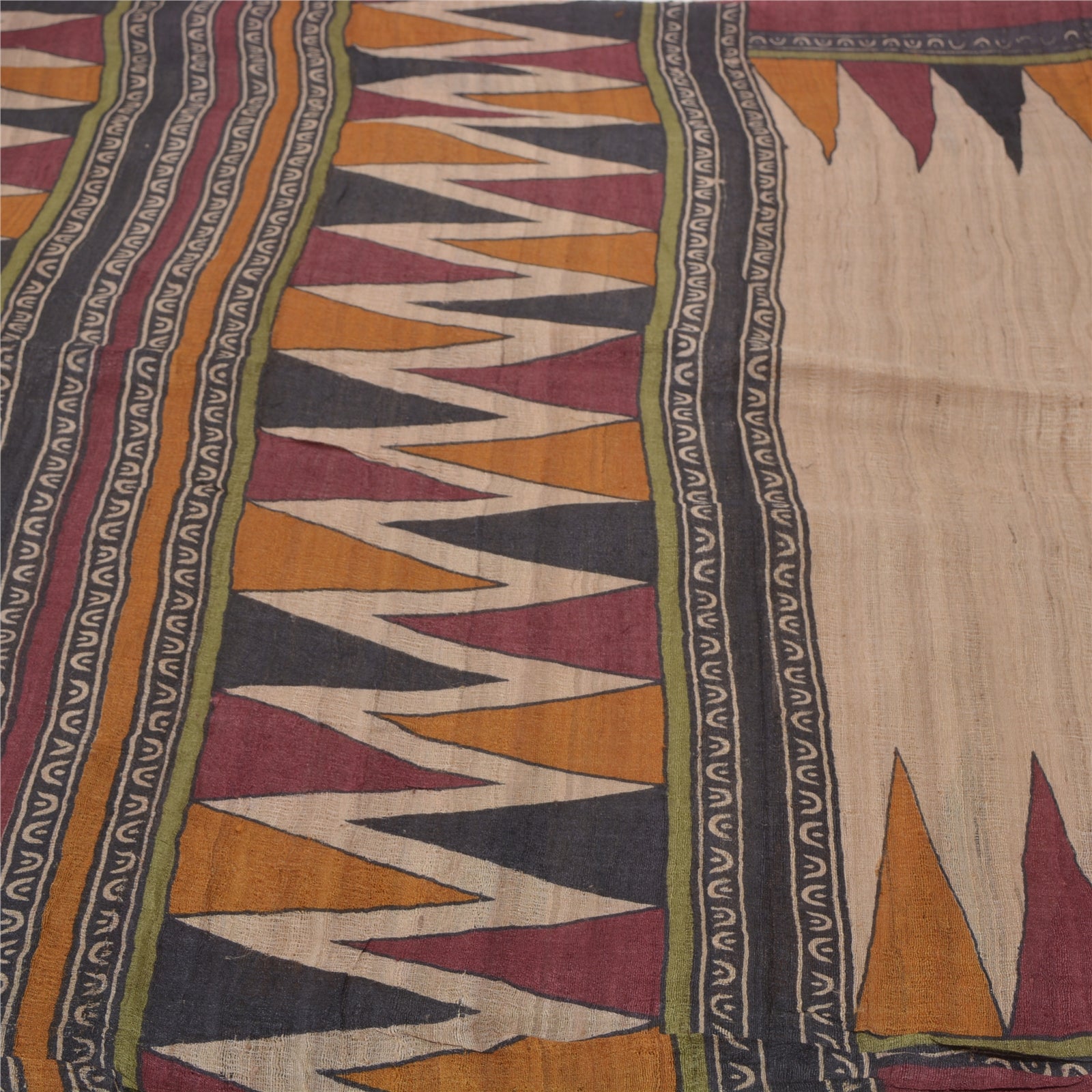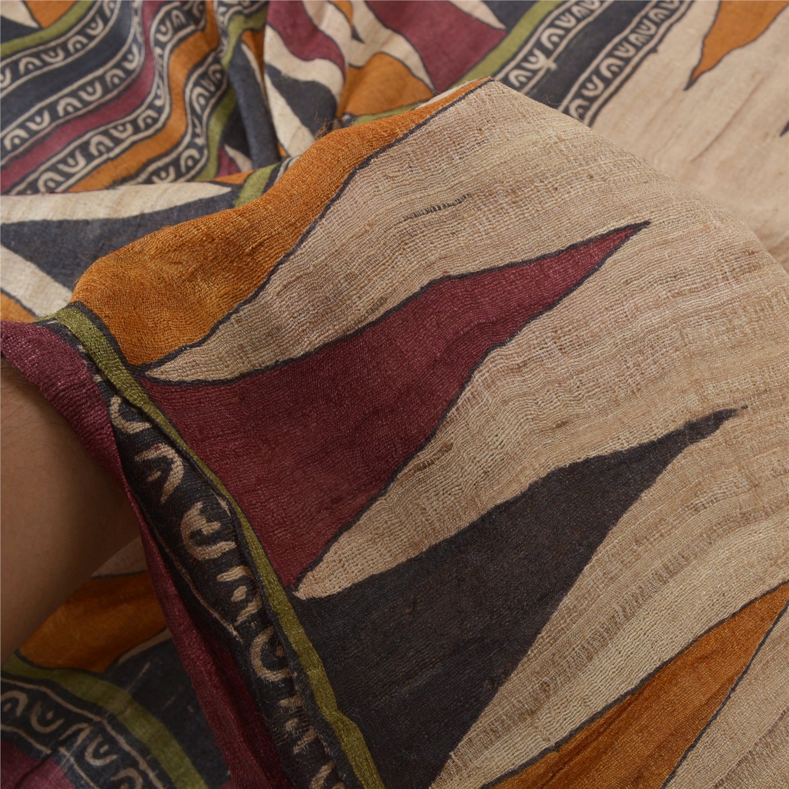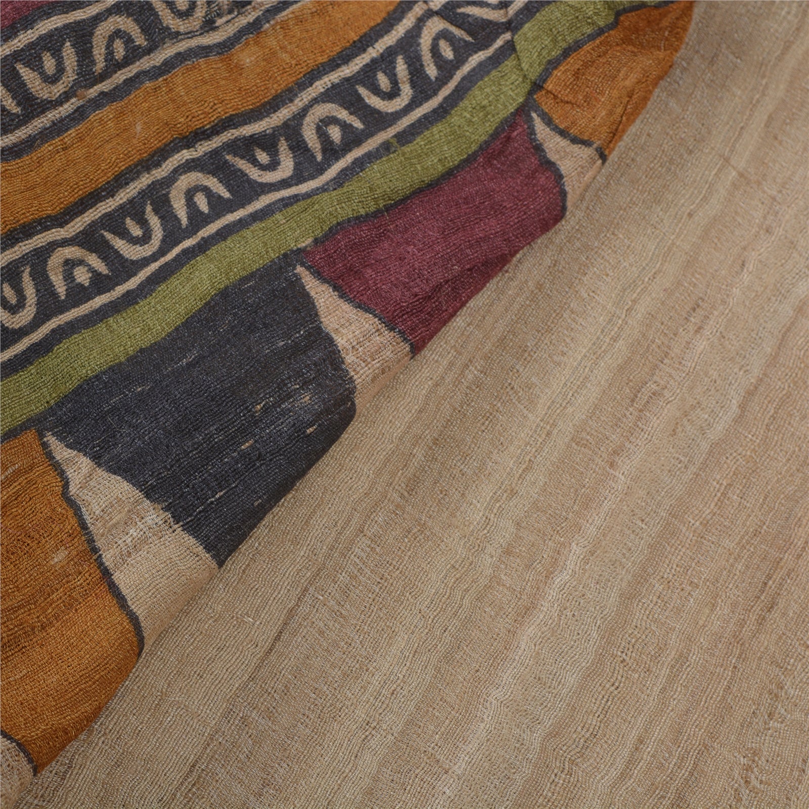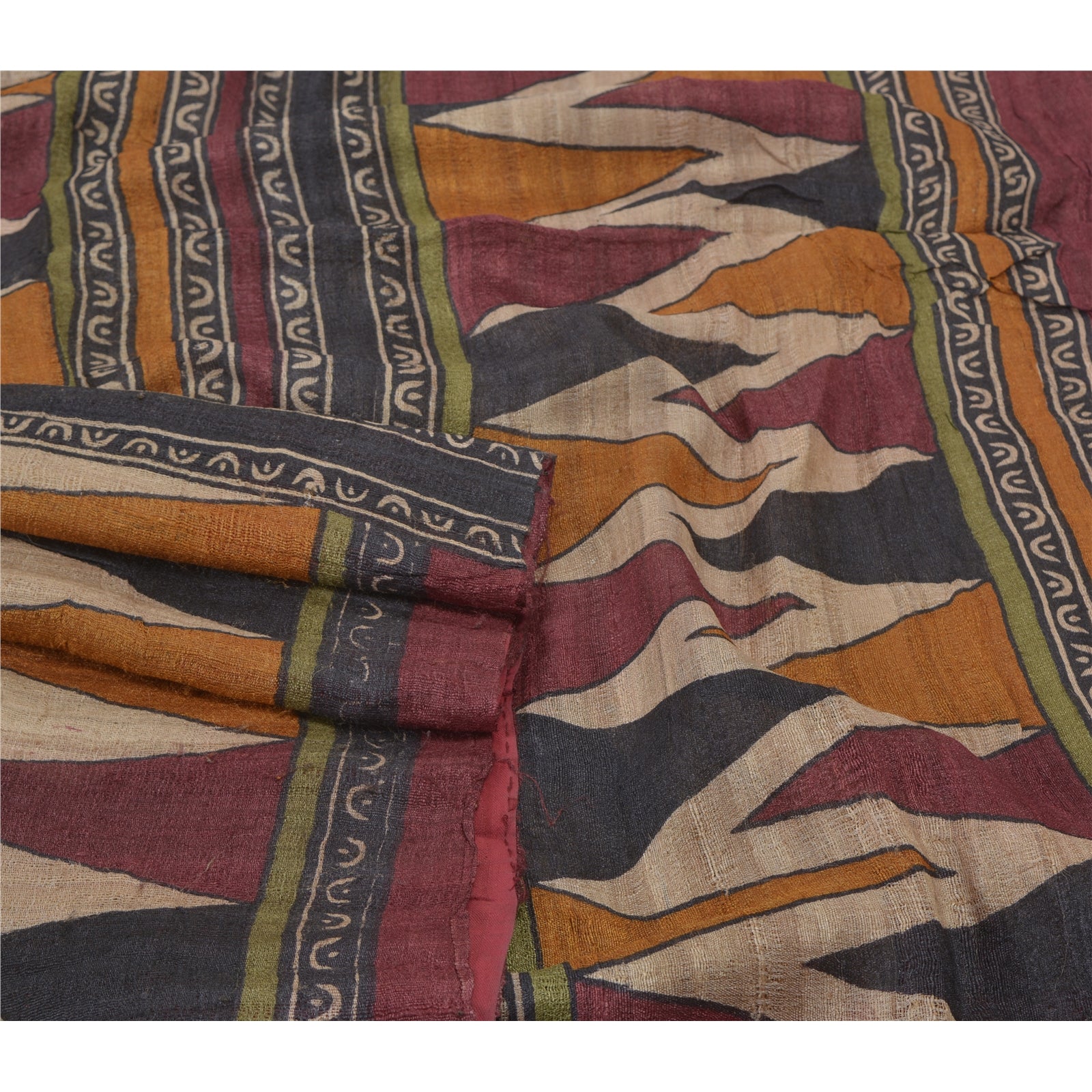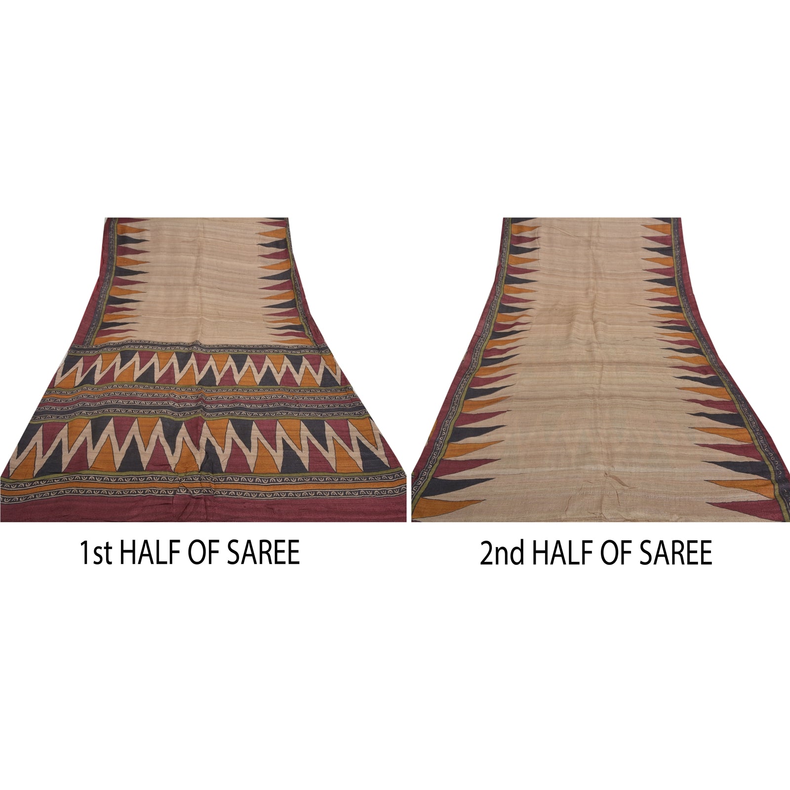 An Awesome heavy Sari In 100% Pure Handloom Silk Brown Colored Woven Printed Sustainable Fabric. Pallu & Border Features Multi Color Print With Zig- Zag & Floral Design. Woven Work In Center Part Of Saree. This heavy saree can be used for various crafting ideas too. Use it for dress designing, as a throw, as window dressing, upholstery, table linen and much more. Let your creative juices flow. A One Of A Kind Unique Saree Must In Your Collection.