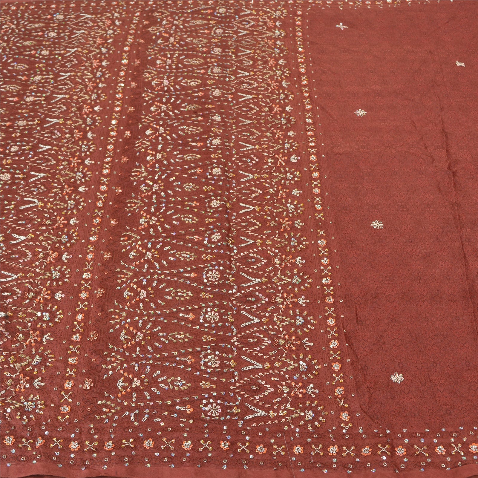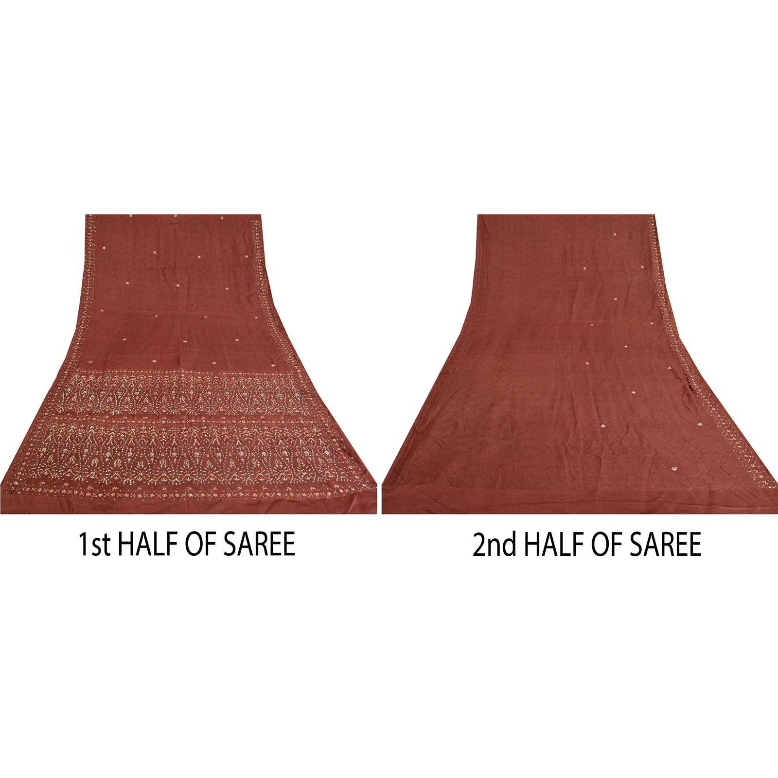 Sanskriti Vintage Brown Heavy Sarees Pure Satin Silk Beaded Woven Sari Sustainable Fabric