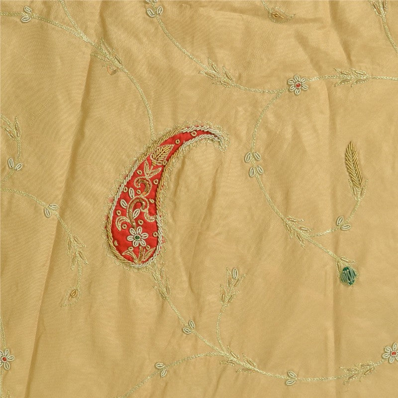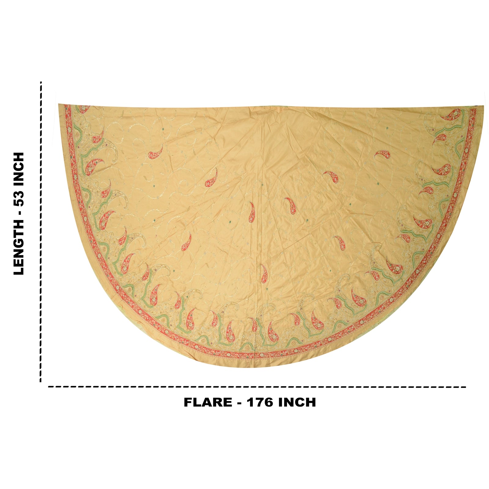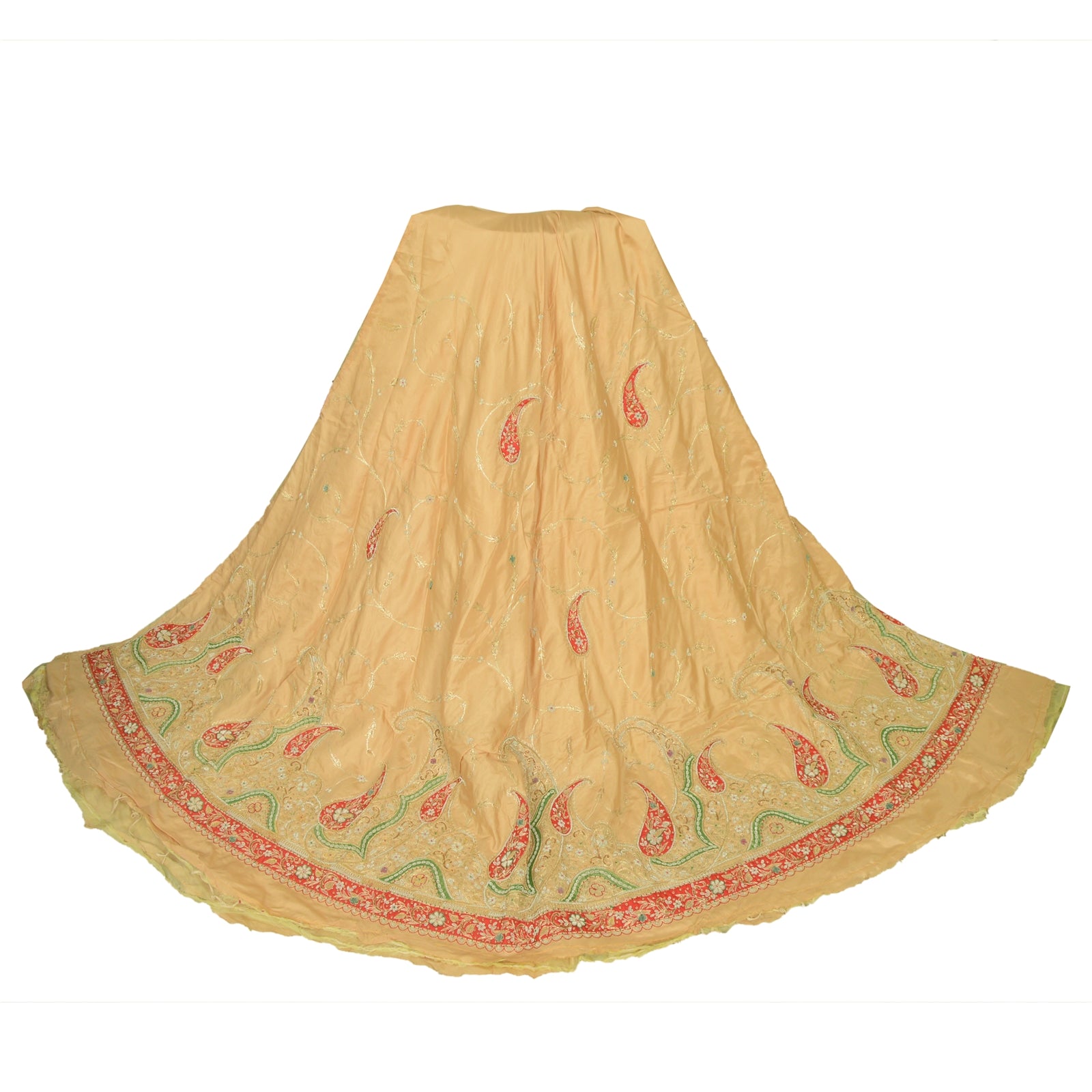 Fabulous cream colored vintage pure silk hand embroidered unstitched lehenga. Bottom of lehenga features floral & paisley design embellished with pure metallic golden zari, zardozi, dabka, & glass beaded work on red green patch. Similar work on allover lehenga. Length-53, Flare-176 inches Flaunt this heavy lehenga with ethnic tops, blouses or kurtis at parties, weddings and other occasions. A one of a kind item hard to find. Awesome craftsmanship. THE ITEM COLOR OR SHADE MAY BE DARKER OR LIGHTER THAN THE PICTURE.' International buyers please note: Import duties, taxes, and charges are not included in the item price or postage cost. Buyer will pay custom duty/tax,VAT, and any applicable charges at the time of delivery. L-816