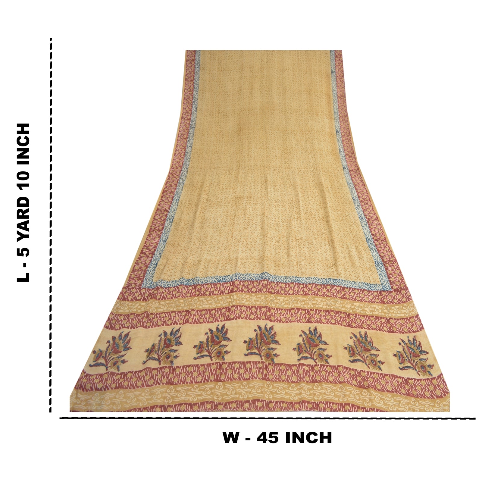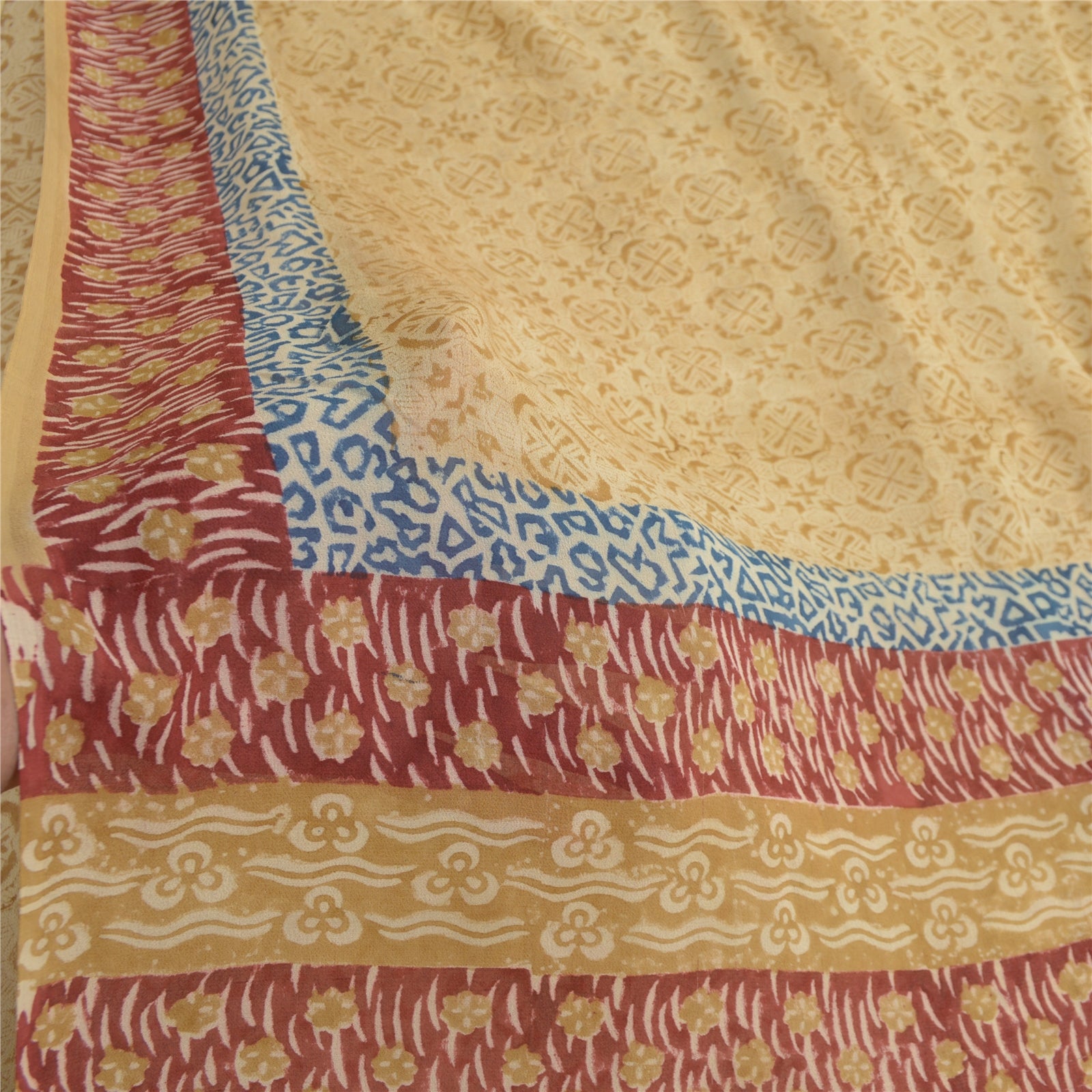 Sanskriti Vintage Cream Sarees 100% Pure Georgette Silk Printed Sari 5 Yd Sustainable Fabric