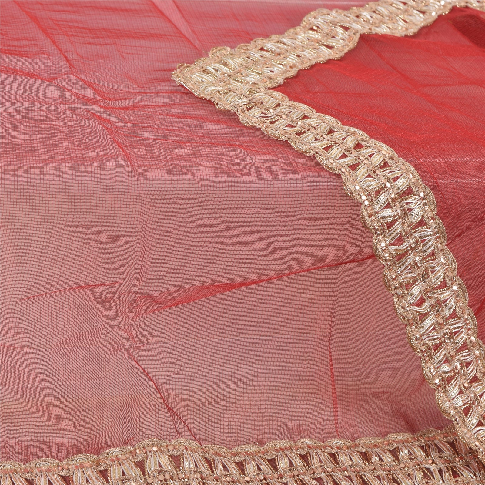 Sanskriti Vintage Dark Red Dupatta Long Stole Net Mesh Hand Beaded Wrap Scarves