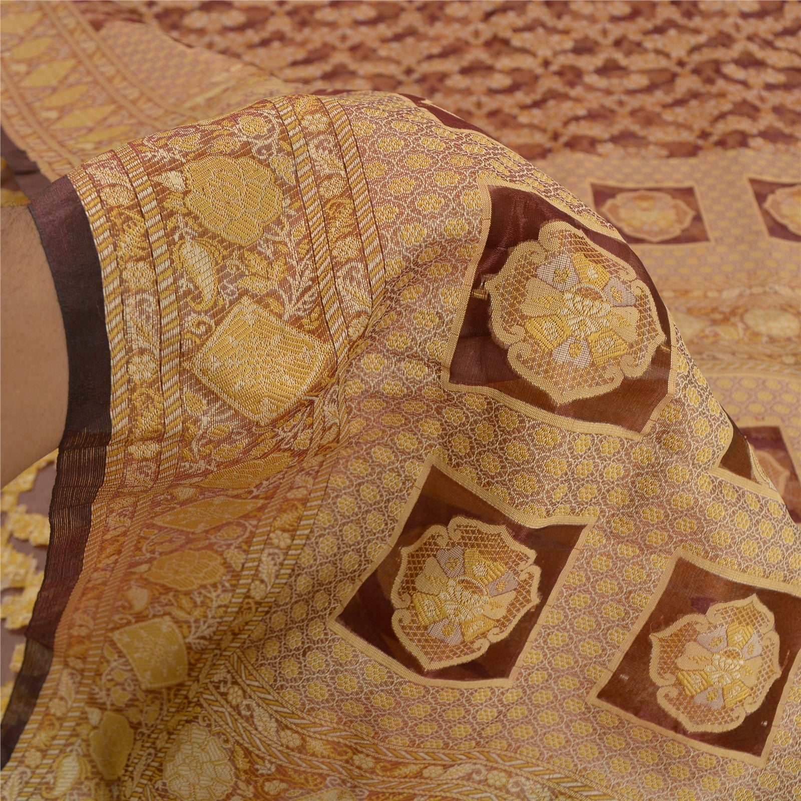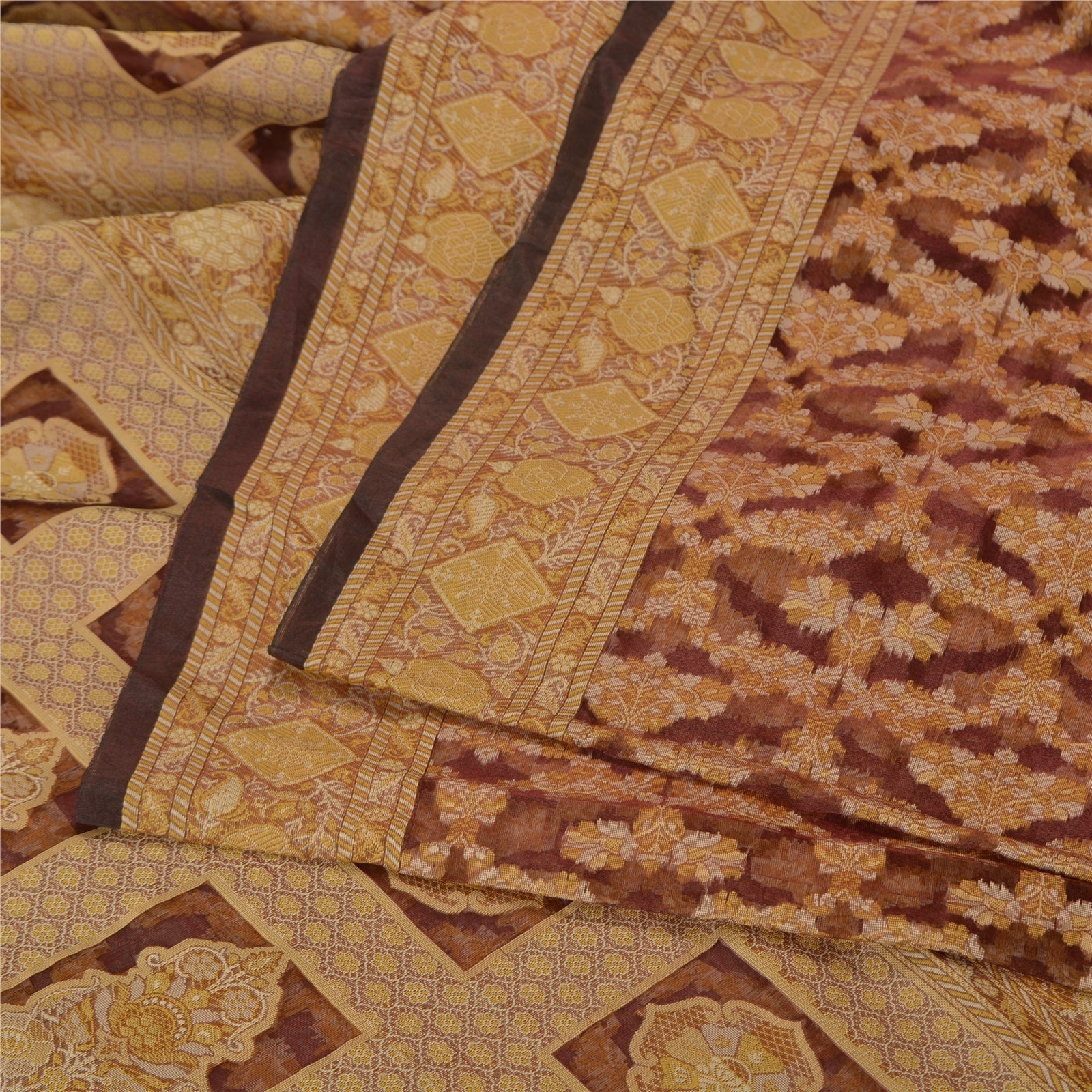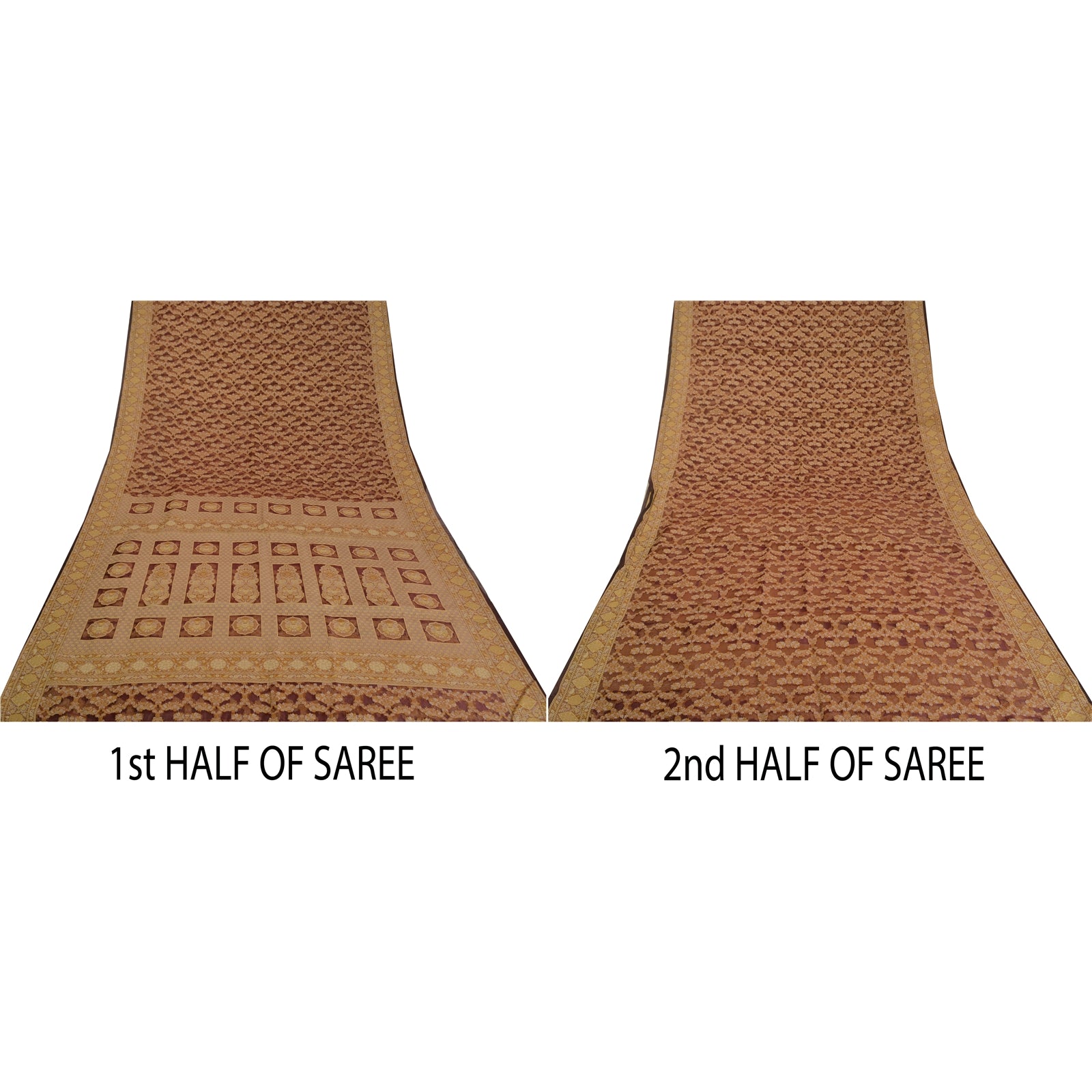 Sanskriti Vintage Dark Red Indian Sarees Pure Organza Silk Woven Sari Sustainable Fabric