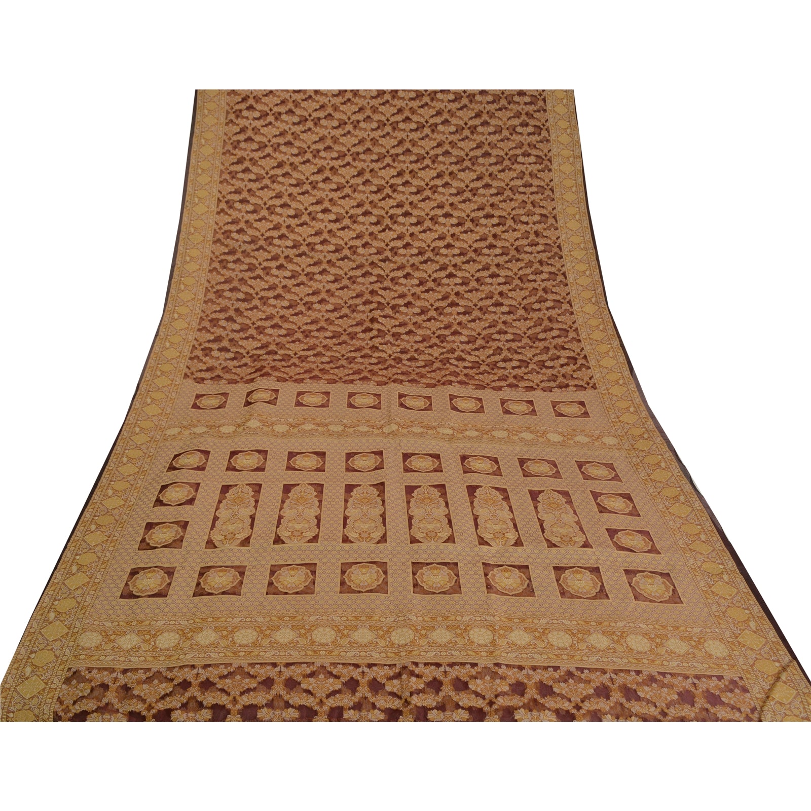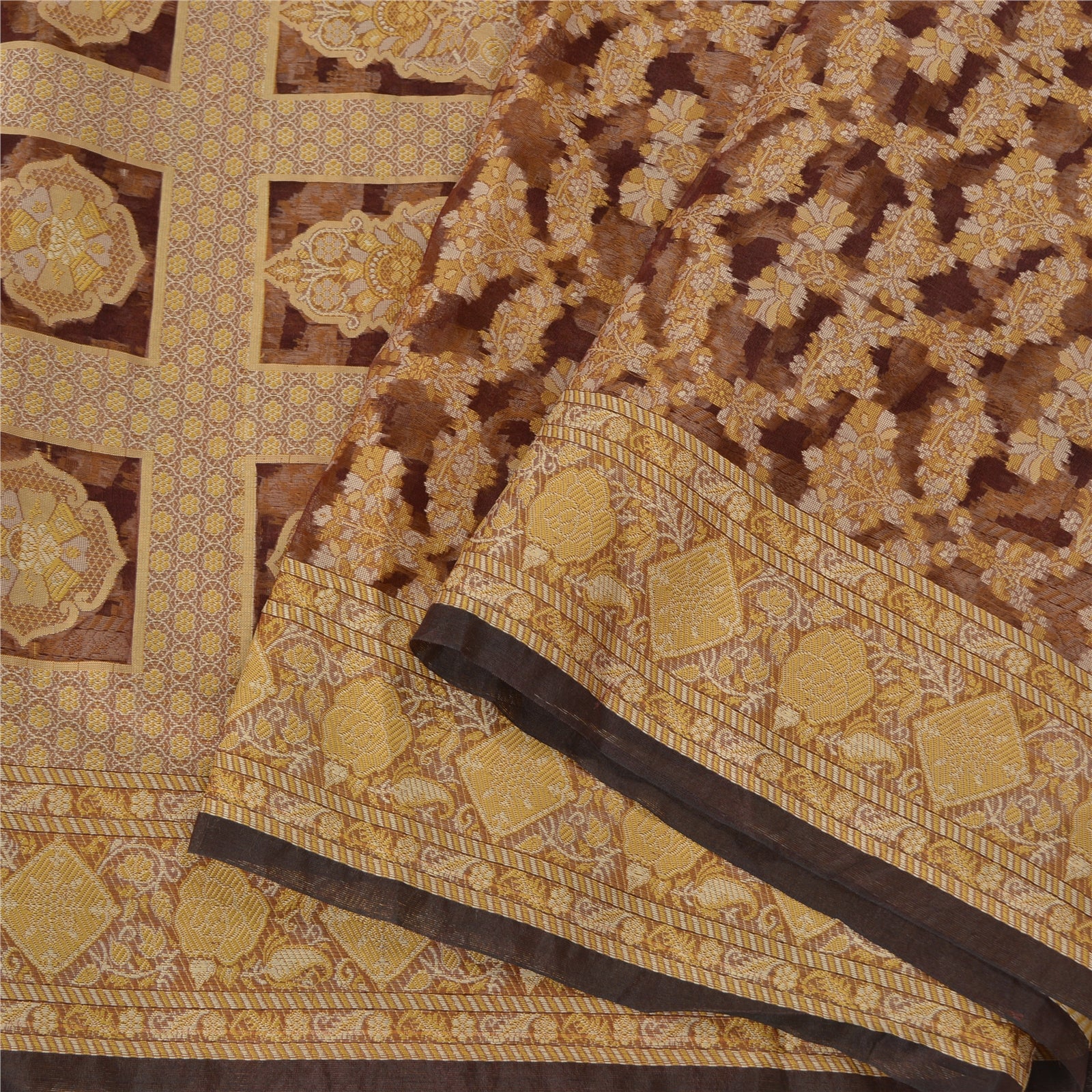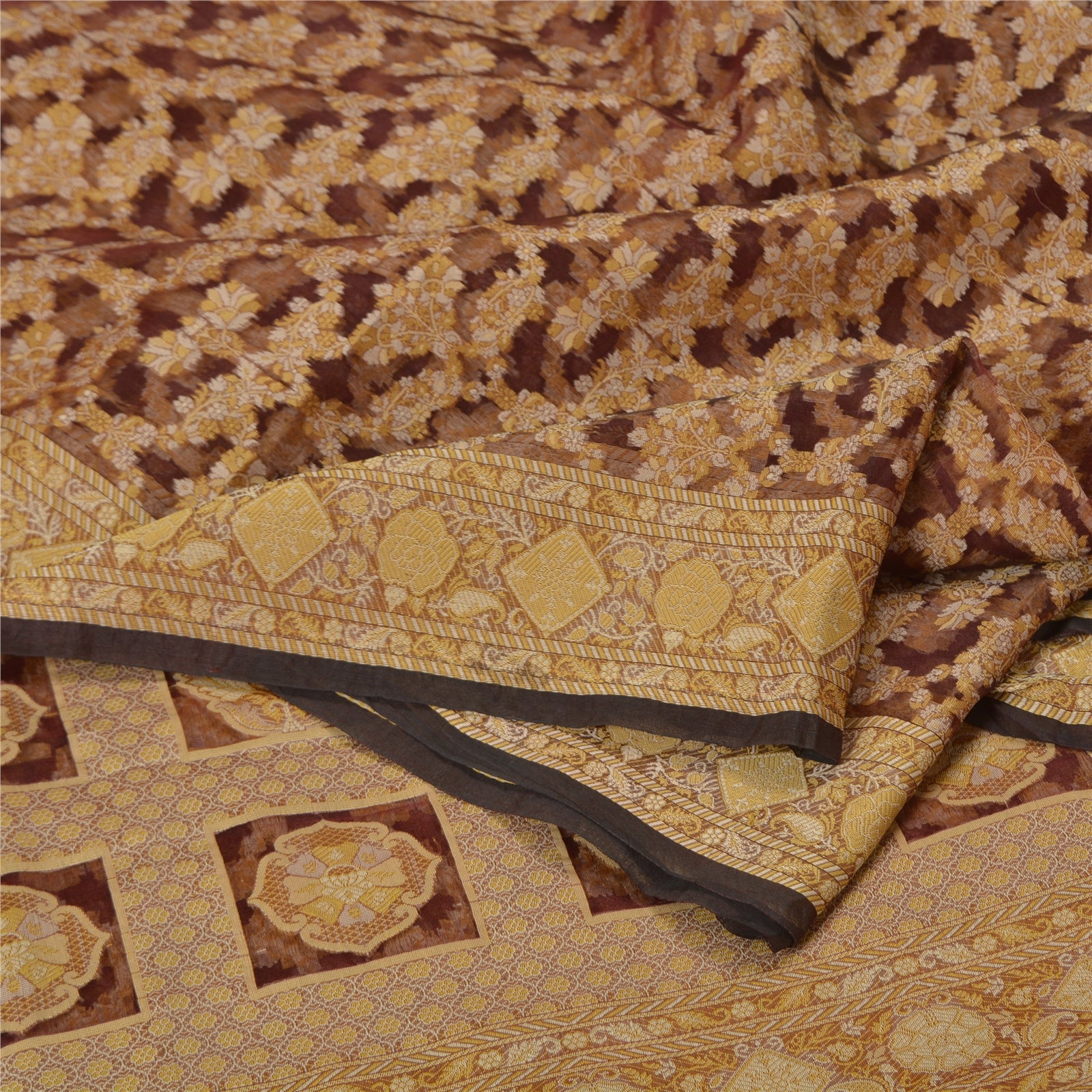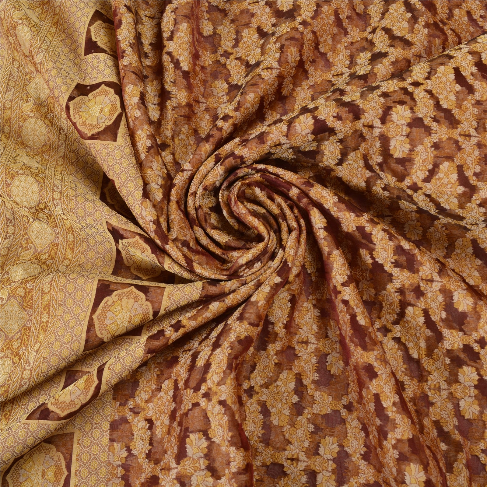 Sanskriti Vintage Dark Red Indian Sarees Pure Organza Silk Woven Sari Sustainable Fabric
