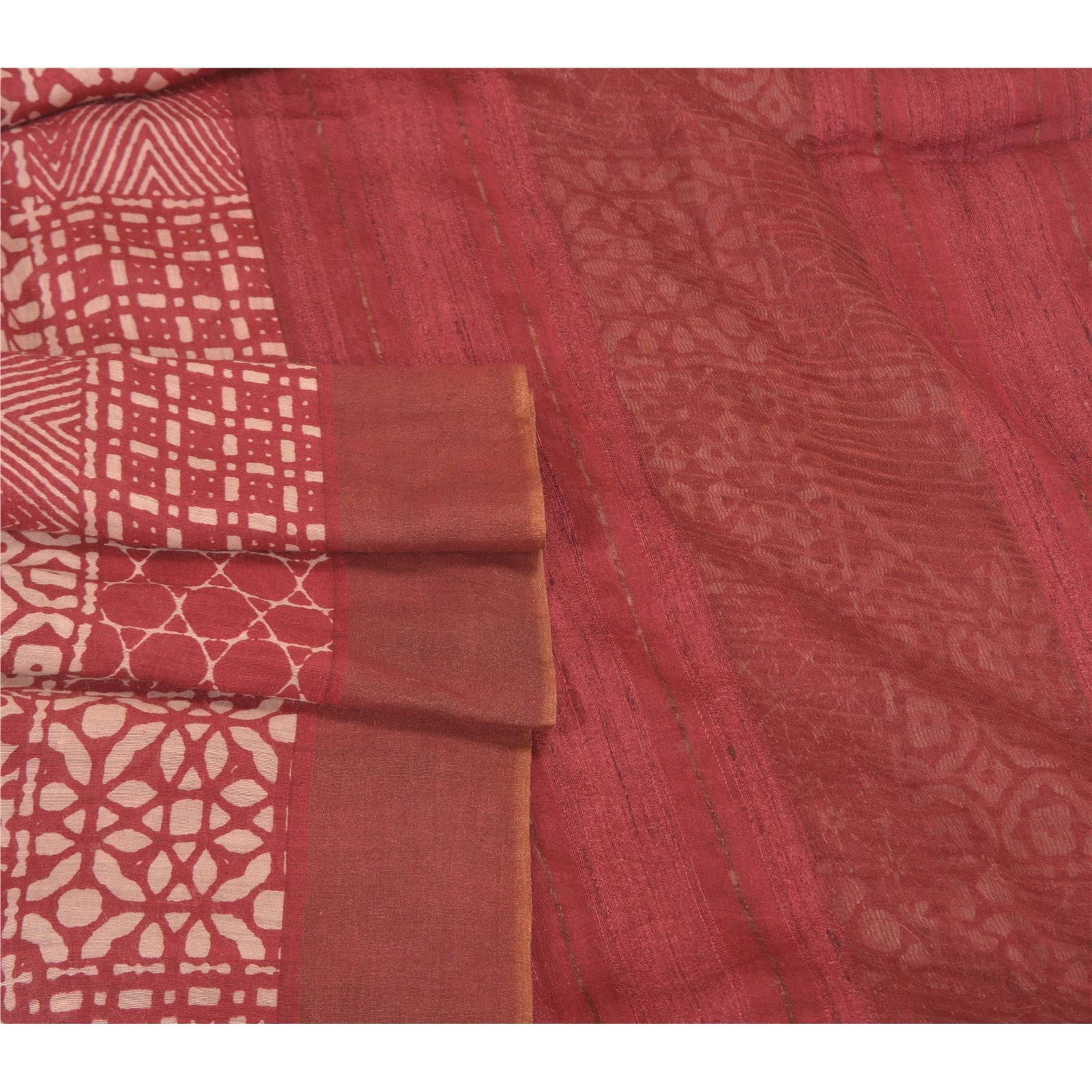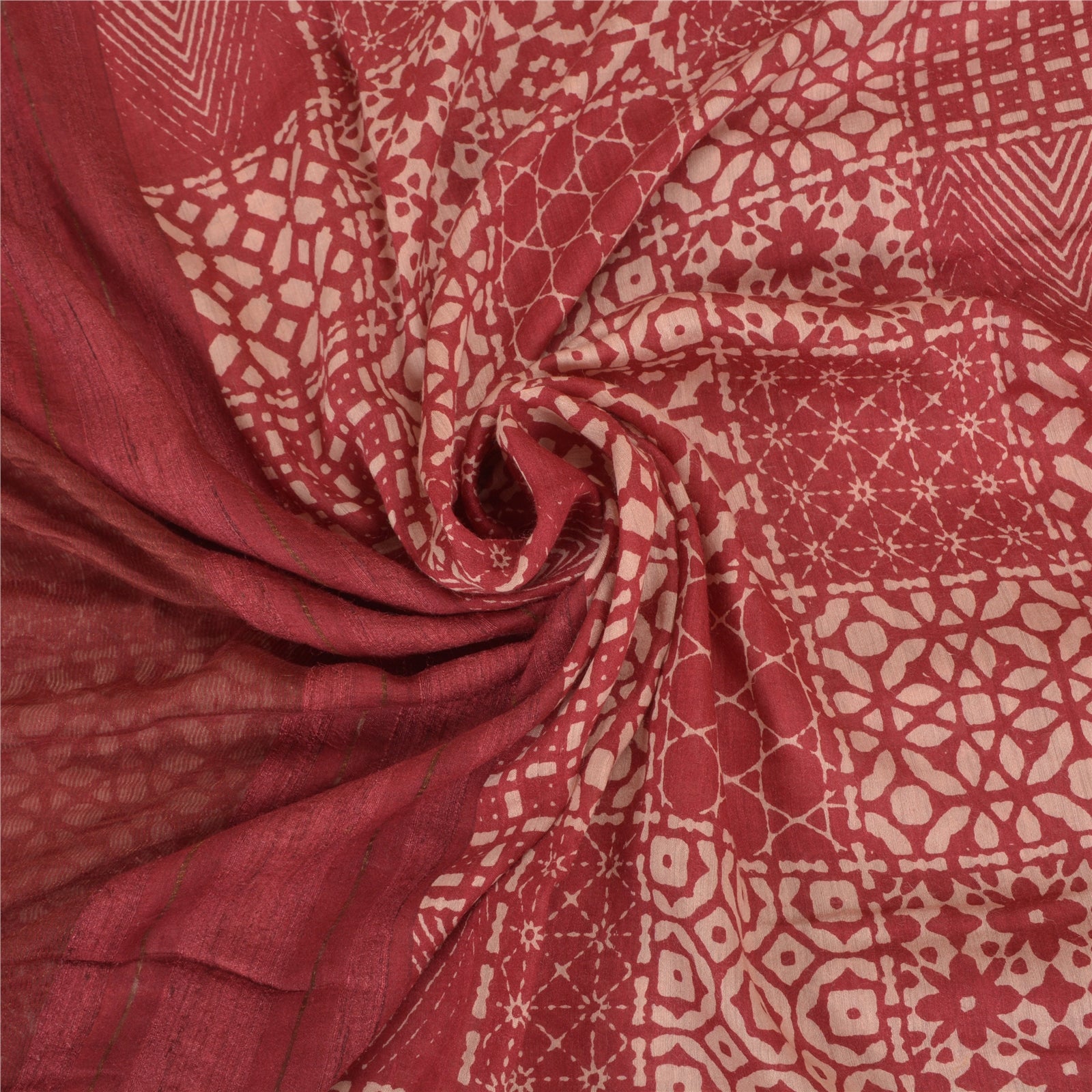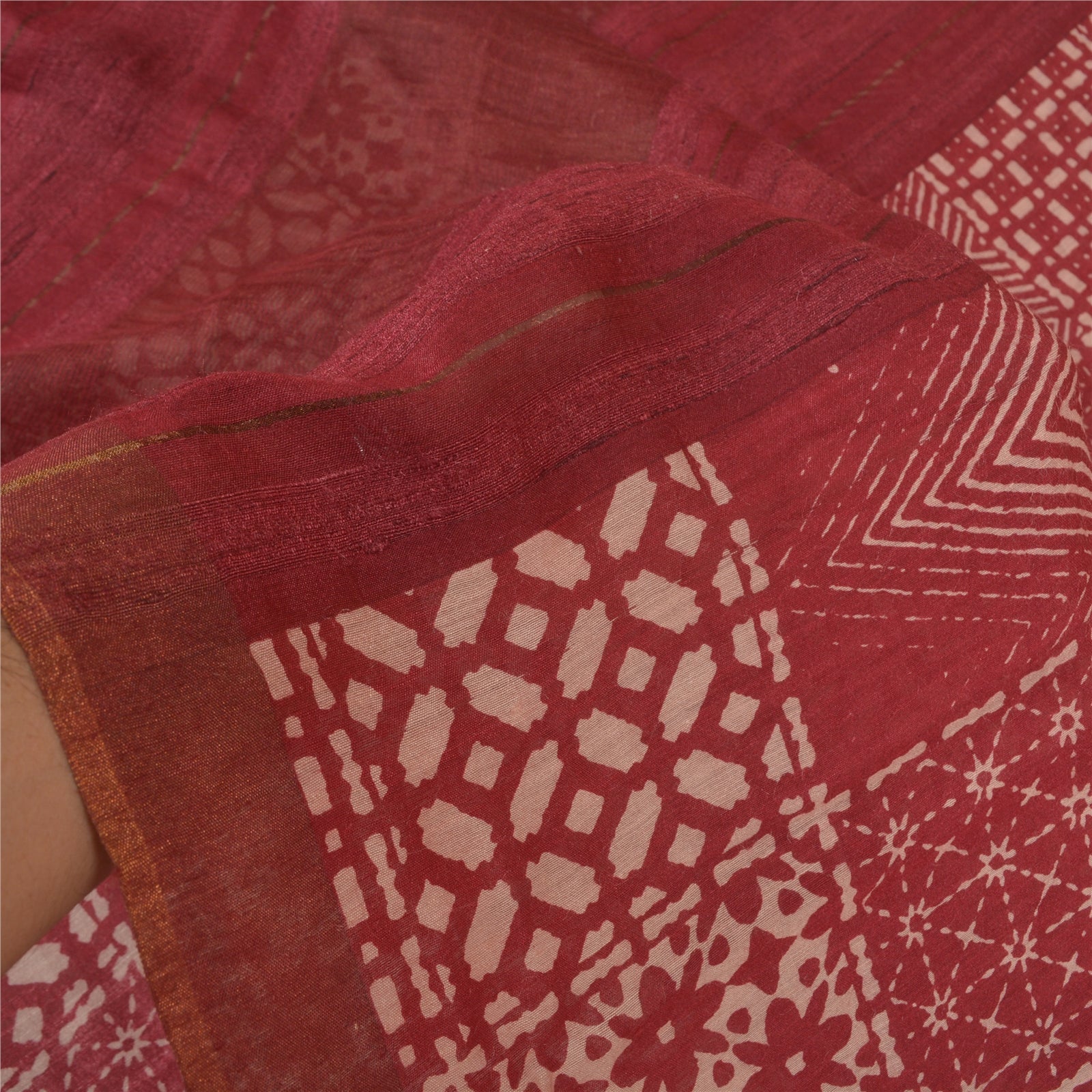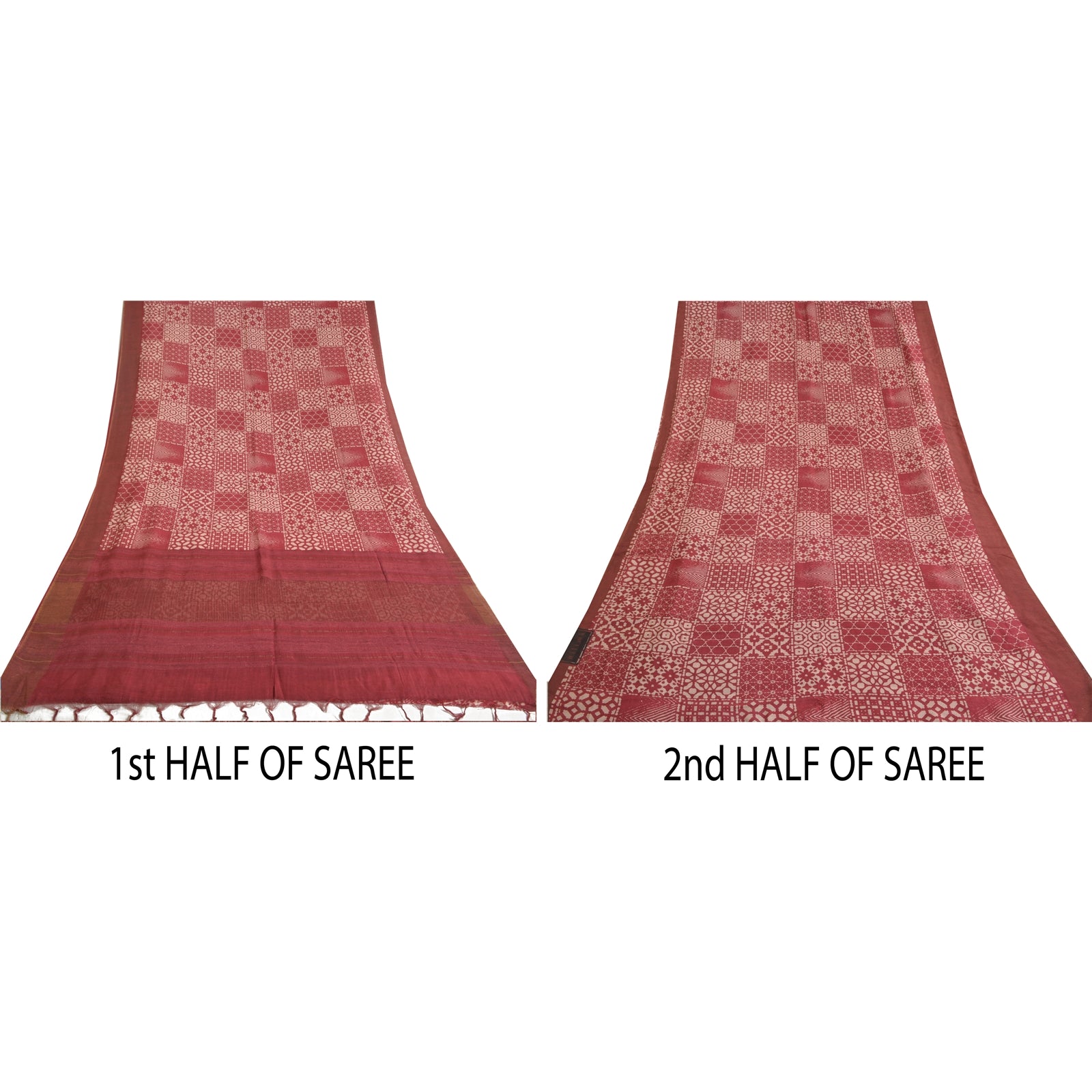 Sanskriti Vintage Dark Red Sarees 100% Pure Silk Printed Sari Craft Sustainable Fabric