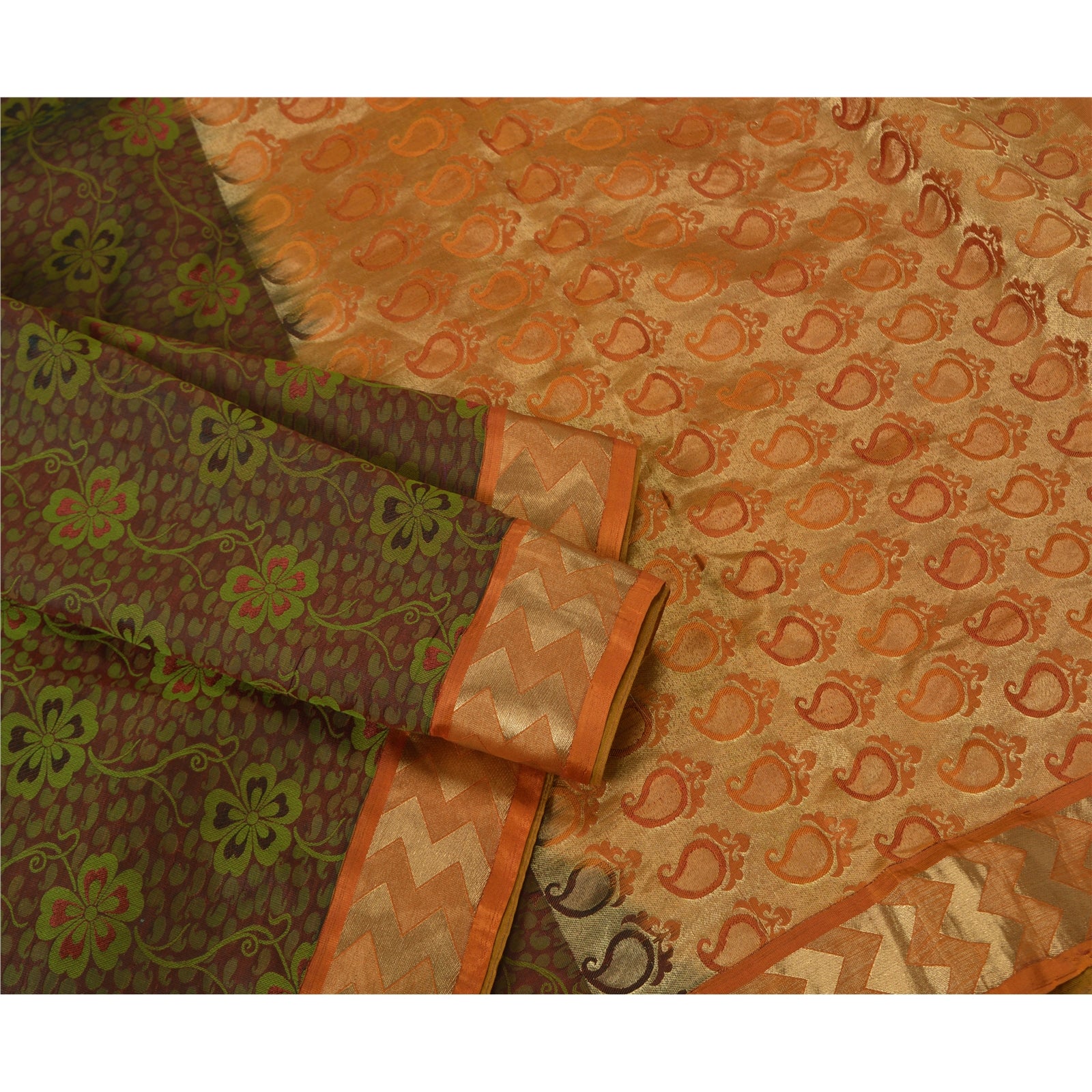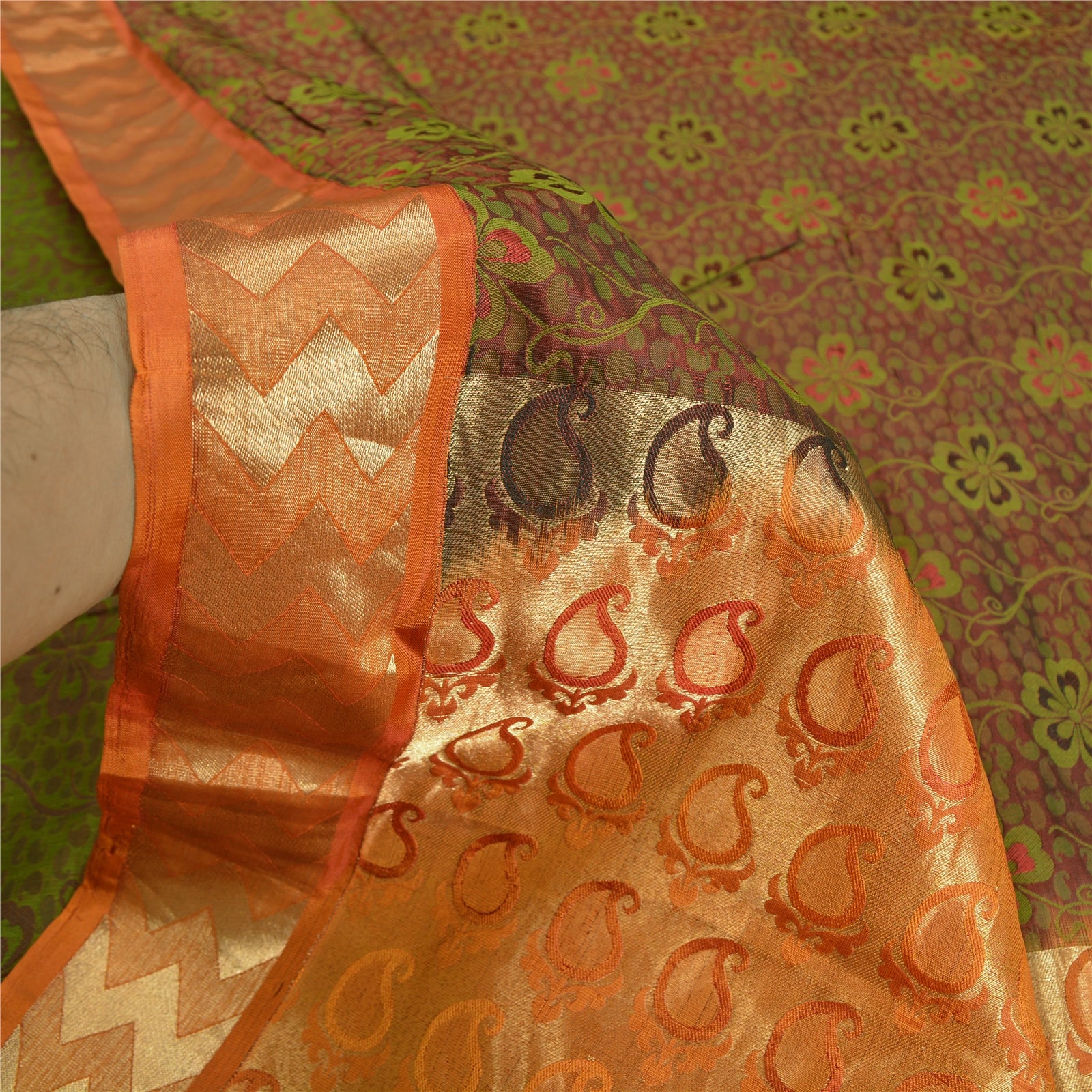 'THE ITEM COLOR OR SHADE MAY BE DARKER OR LIGHTER THAN THE PICTURE.' Beautiful orange & dark red colored pure silk woven sari. Pallu has orange/red woven paisley design with golden zari work. The center of the saree has green woven thread work with paisley design. This saree can be used for various crafting ideas too. Use it for dress designing, as a throw, as window dressing, upholstery, table linen and much more. Let your creative juices flow. 'International buyers please note: Import duties, taxes, and charges are not included in the item price or postage cost. These charges are the buyer's responsibility. Please check with your country's customs office to determine what these additional costs will be prior to bidding or buying. Buyer will pay custom duty/tax. It is calculated and charged differently by every country. As a seller I do not have any control over it. VAT or sales tax is calculated by the platform at the time of checkout. Customs charge is payable at the time of delivery.'