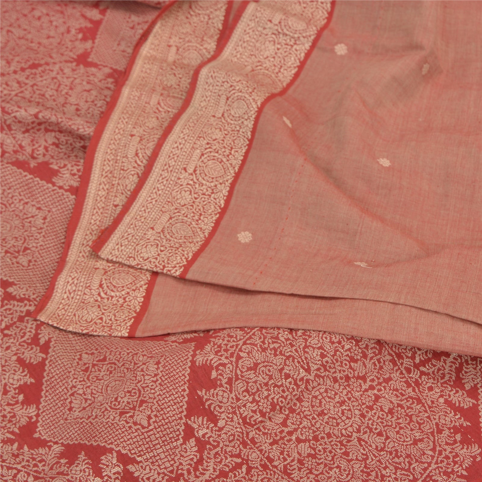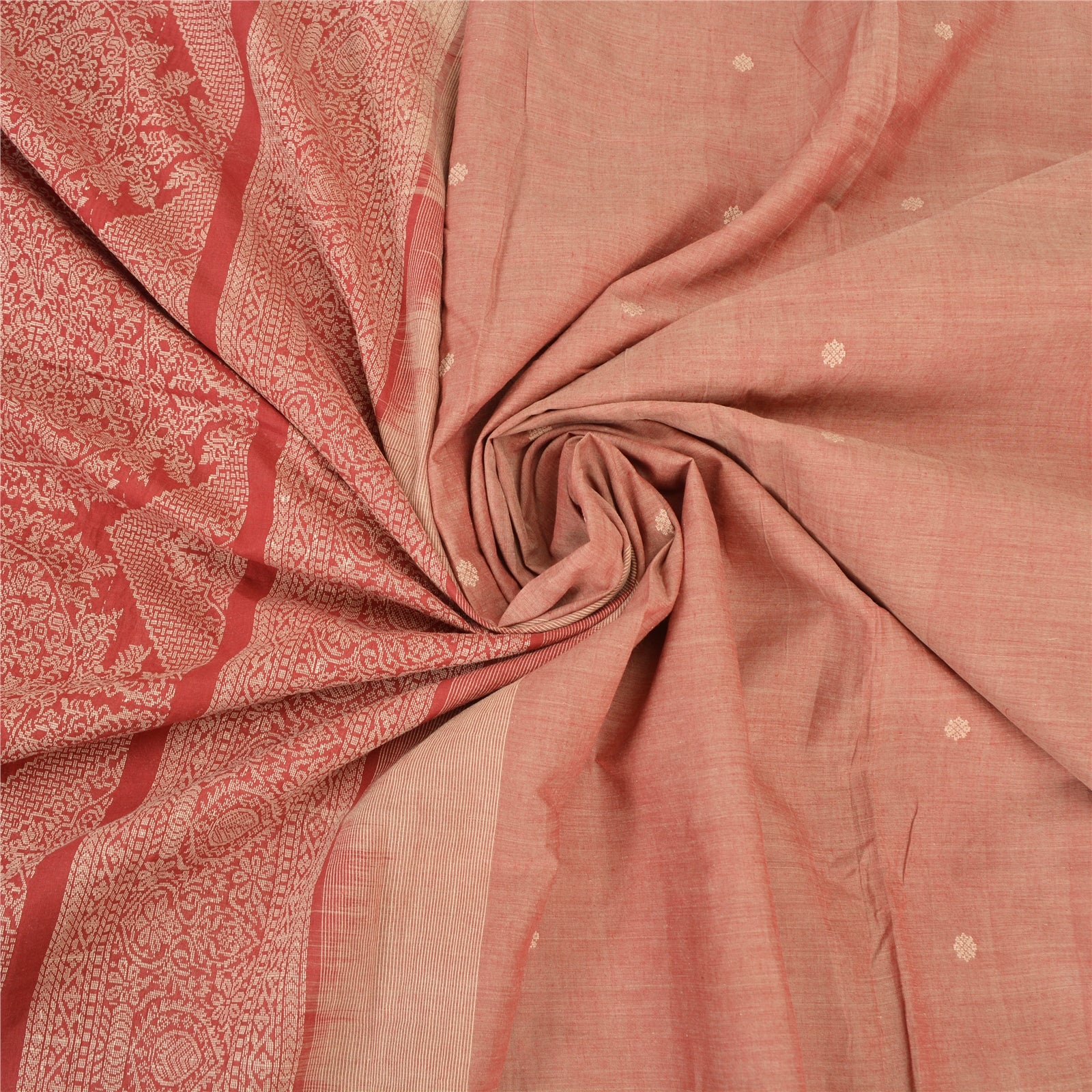 Sanskriti Vintage Dark Red Sarees Blend Cotton Woven Premium Sari Craft Sustainable Fabric