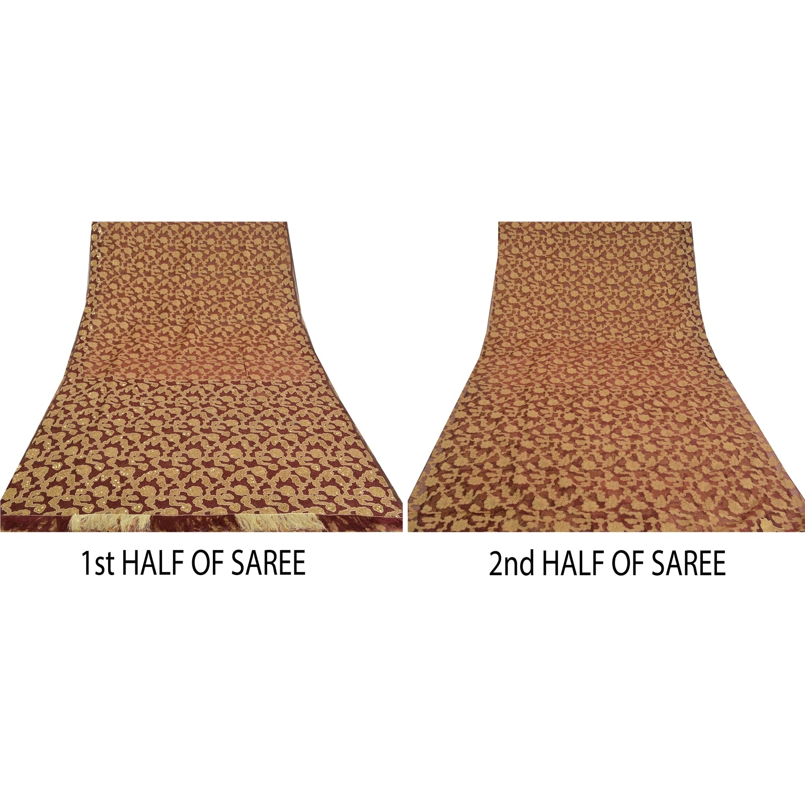 Sanskriti Vintage Dark Red Sarees Pure Organza Silk Handmade Woven Sari Sustainable Fabric