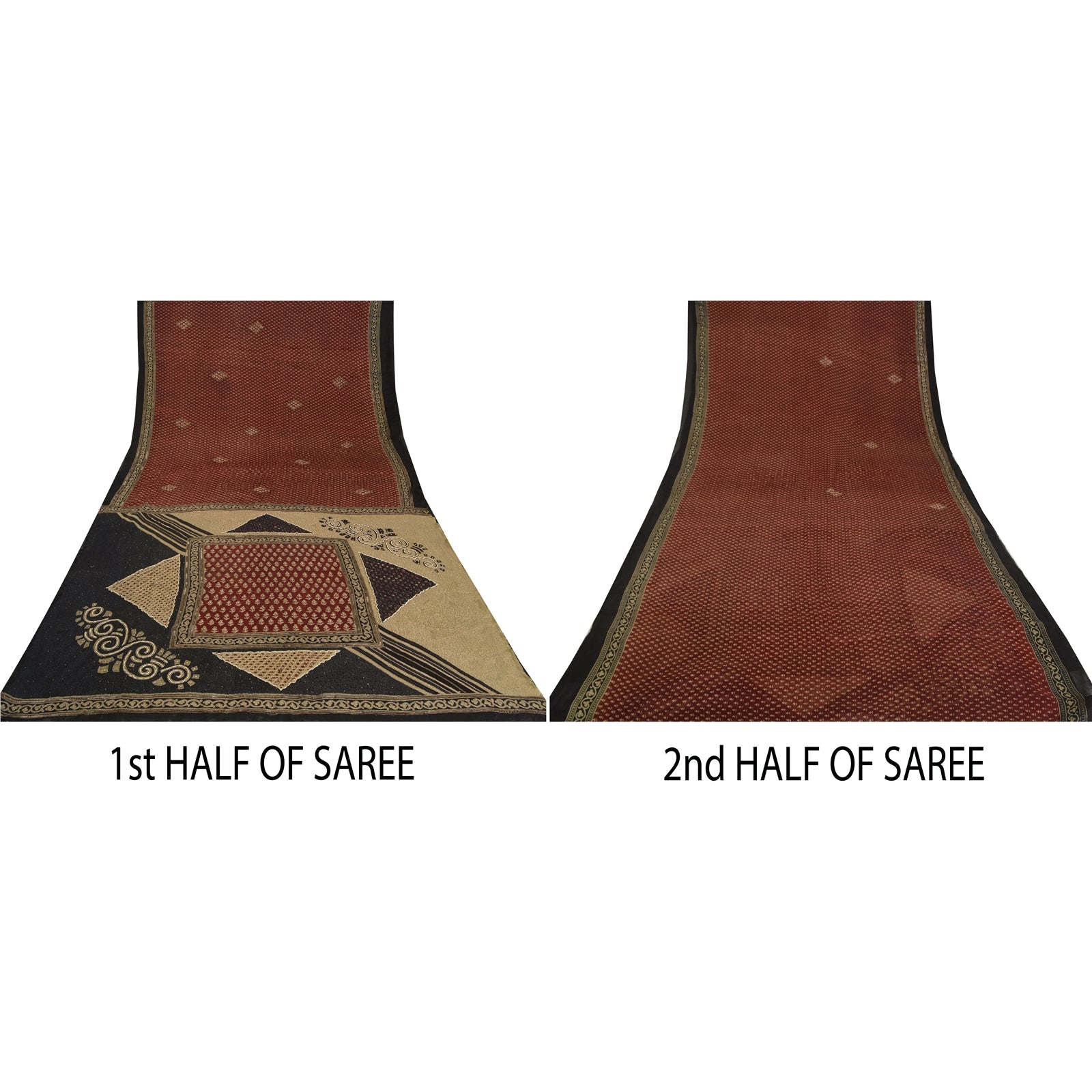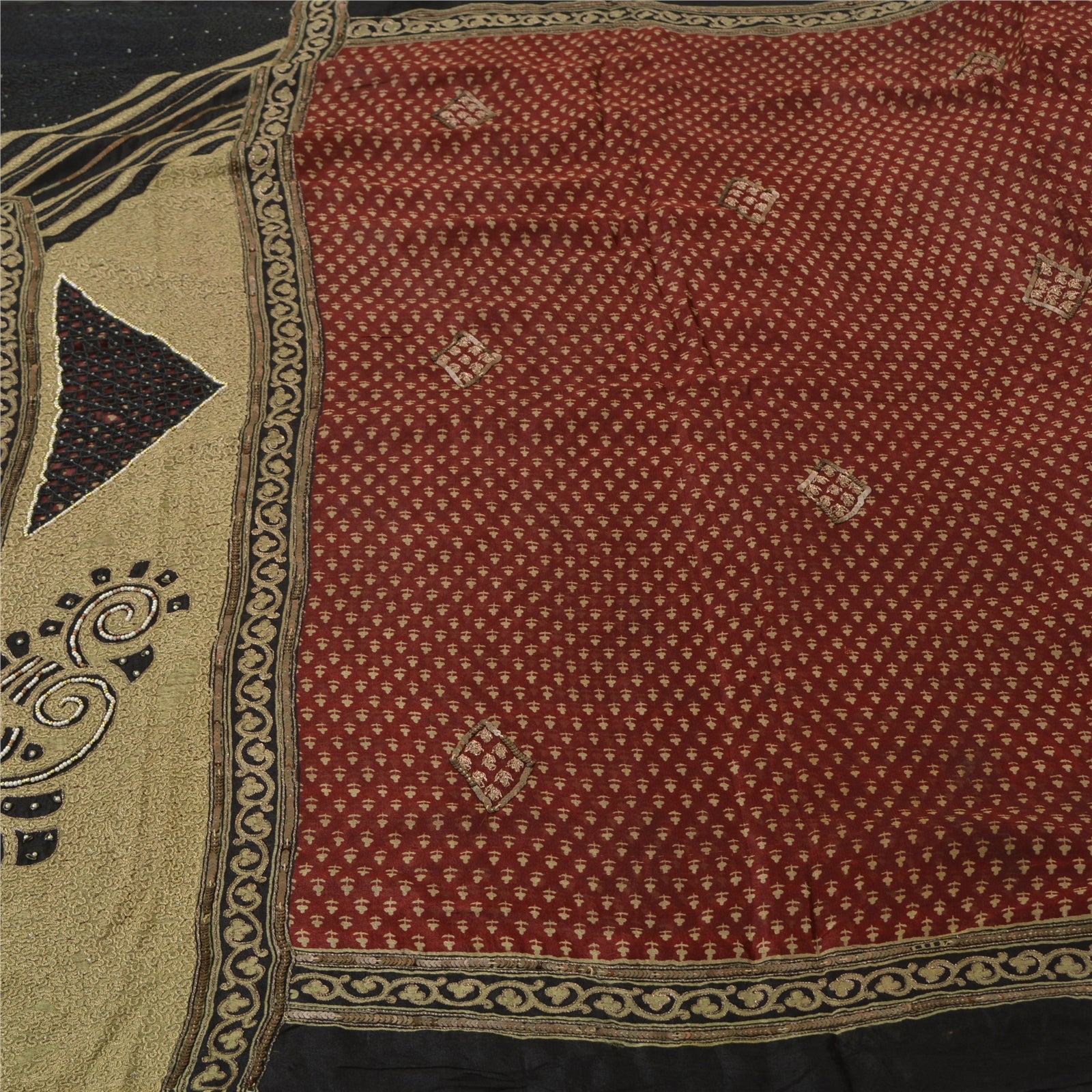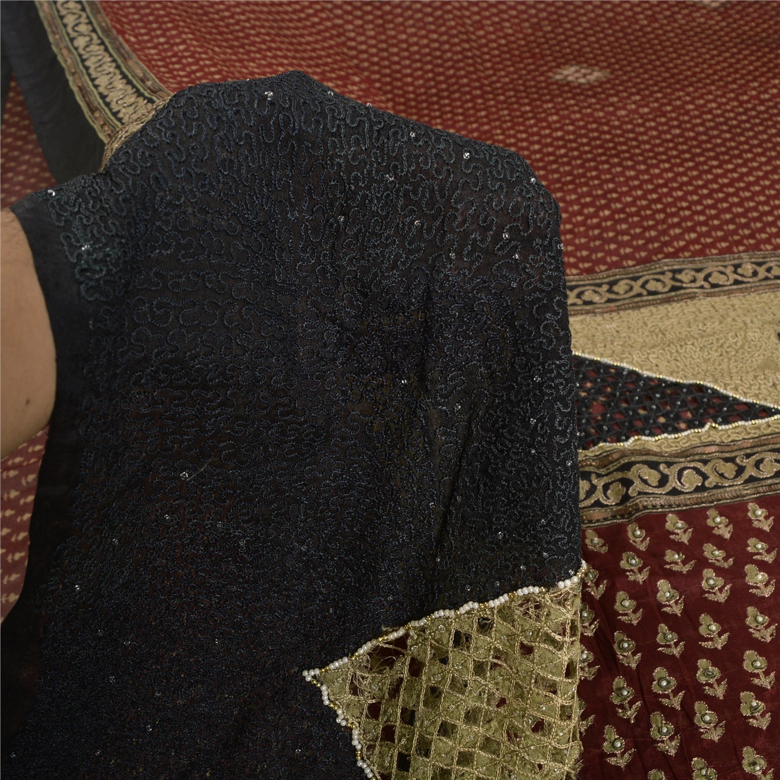 'THE ITEM COLOR OR SHADE MAY BE DARKER OR LIGHTER THAN THE PICTURE.' Beautiful dark red & black colored pure silk hand embroidered printed sari/Sustainable Fabric. Pallu & border has floral pattern embroidered with thread work which is embellished with golden beads, cream pearl like beads, golden zari & sequins with cut work.. The center of the saree has printed floral design with sequins work. This saree can be used for various crafting ideas too. Use it for dress designing, as a throw, as window dressing, upholstery, table linen and much more. Let your creative juices flow. 'International buyers please note: Import duties, taxes, and charges are not included in the item price or postage cost. These charges are the buyer's responsibility. Please check with your country's customs office to determine what these additional costs will be prior to bidding or buying. Buyer will pay custom duty/tax. It is calculated and charged differently by every country. As a seller I do not have any control over it. VAT or sales tax is calculated by the platform at the time of checkout. Customs charge is payable at the time of delivery.'