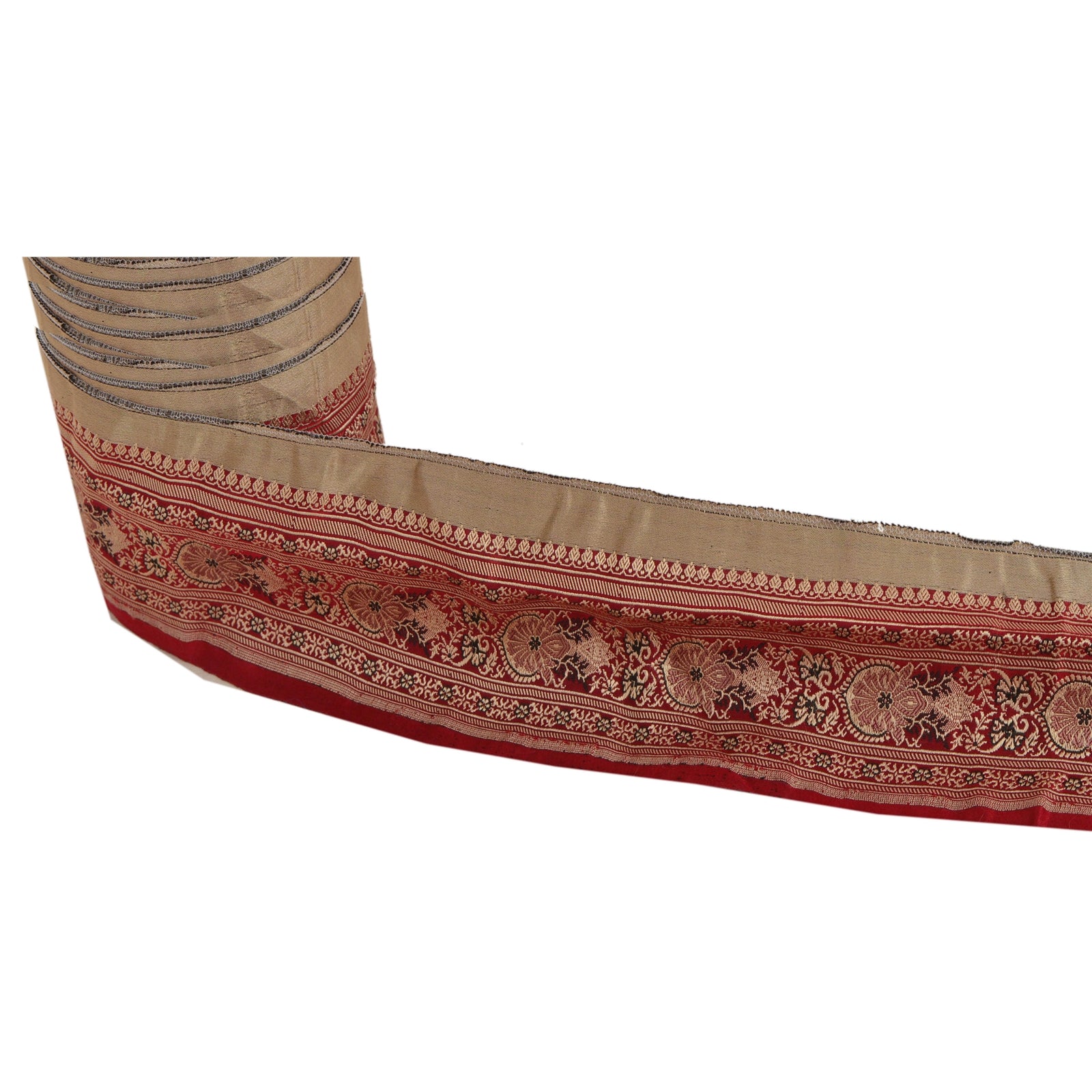 Attractive pure silk woven brocade sari border in dark red & cream color highlighting zari work. Border has beautiful floral & paisley patterns painstakingly cream, black weaving work. WOW!! an awesome one of a kind versatile border. 1 quantity = 1 yard