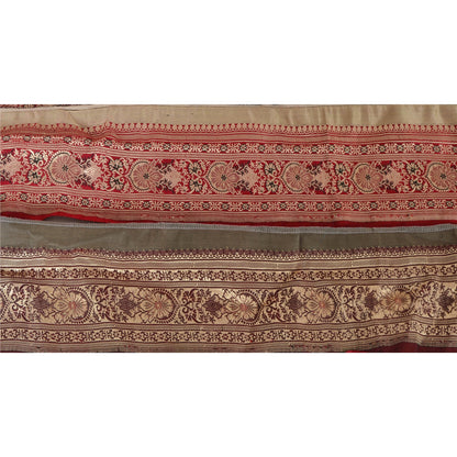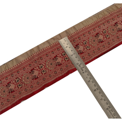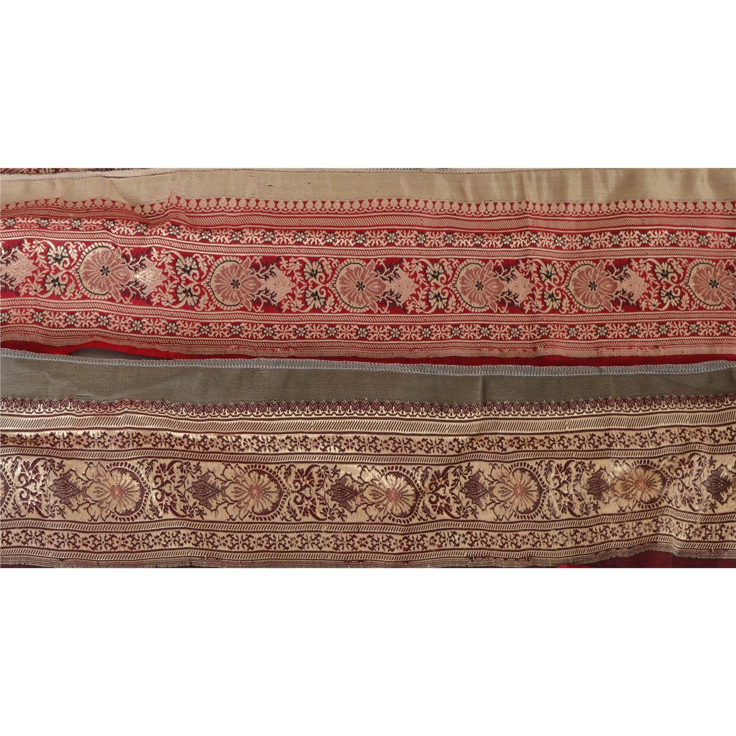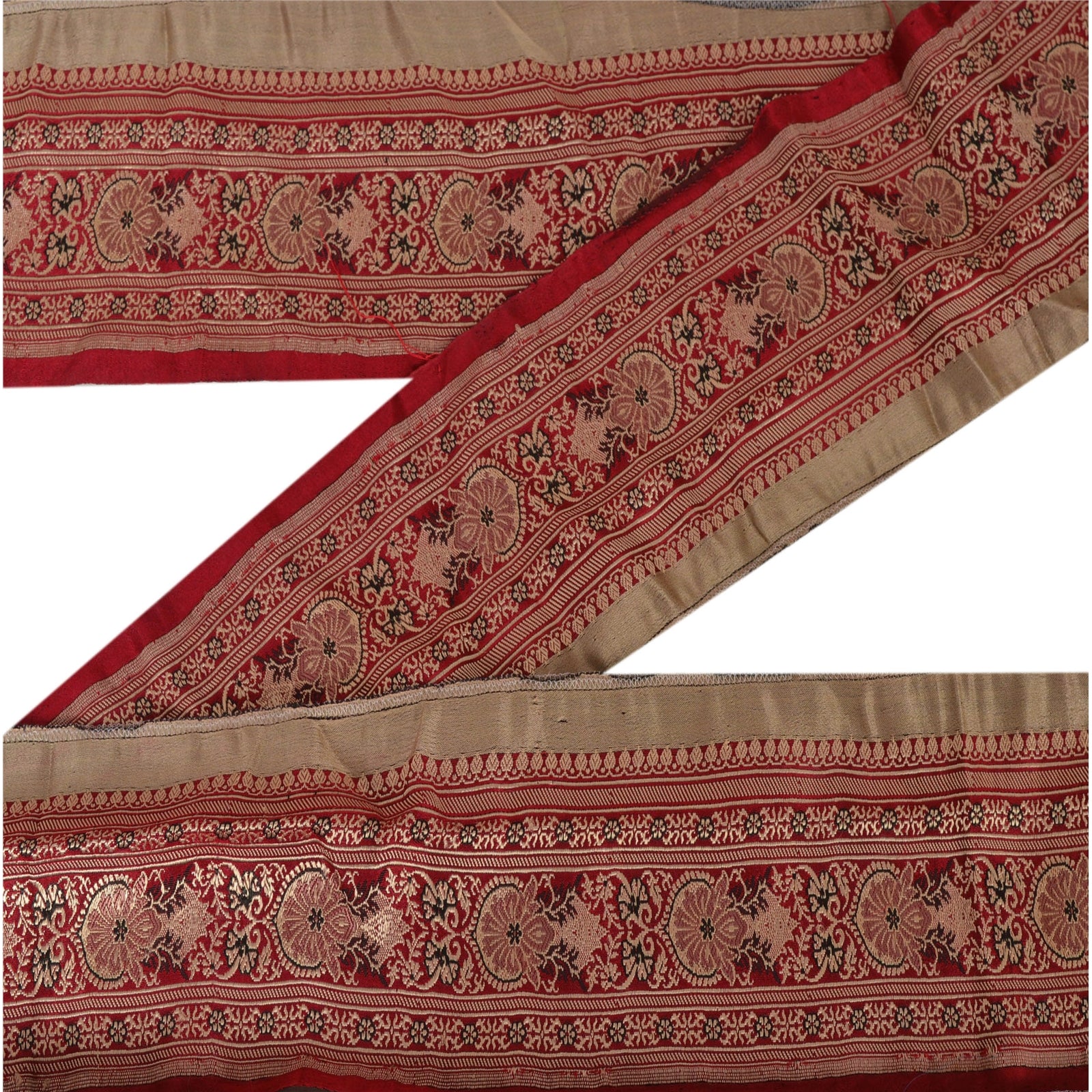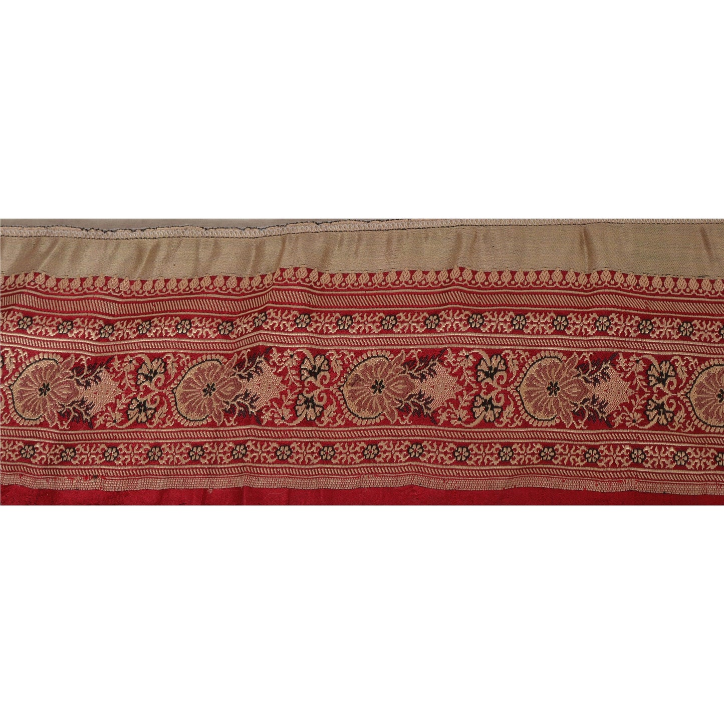 Sanskriti Vintage Dark Red Sari Border Woven Indian Craft Trim Sewing 1 Yd Lace